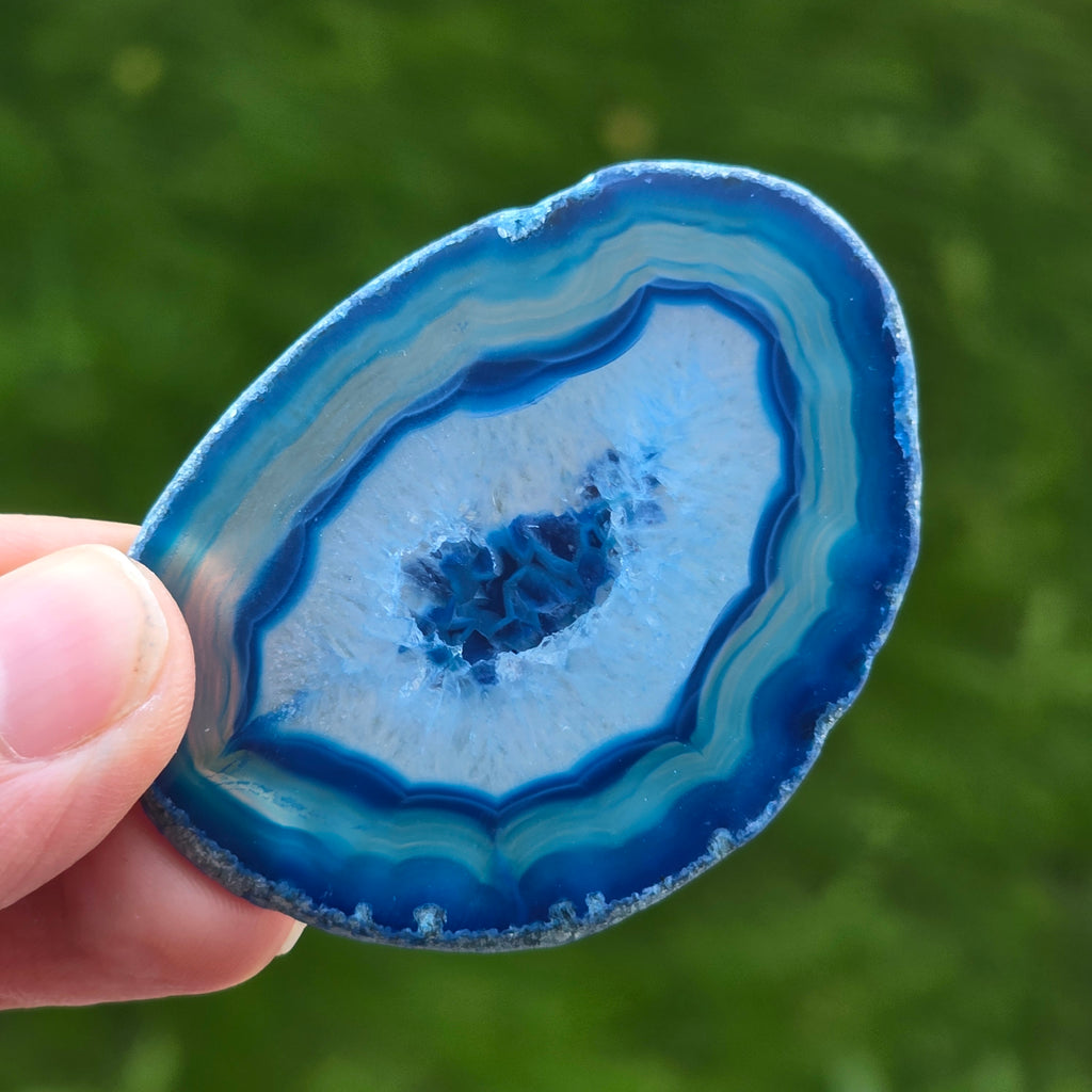 Perfect for Gifts and decorative objects, blue agate adds a touch of sophistication and calm to any space. Whether used in jewelry or as part of décor, this stone is prized for its aesthetic beauty and its positive impact on the energy field.