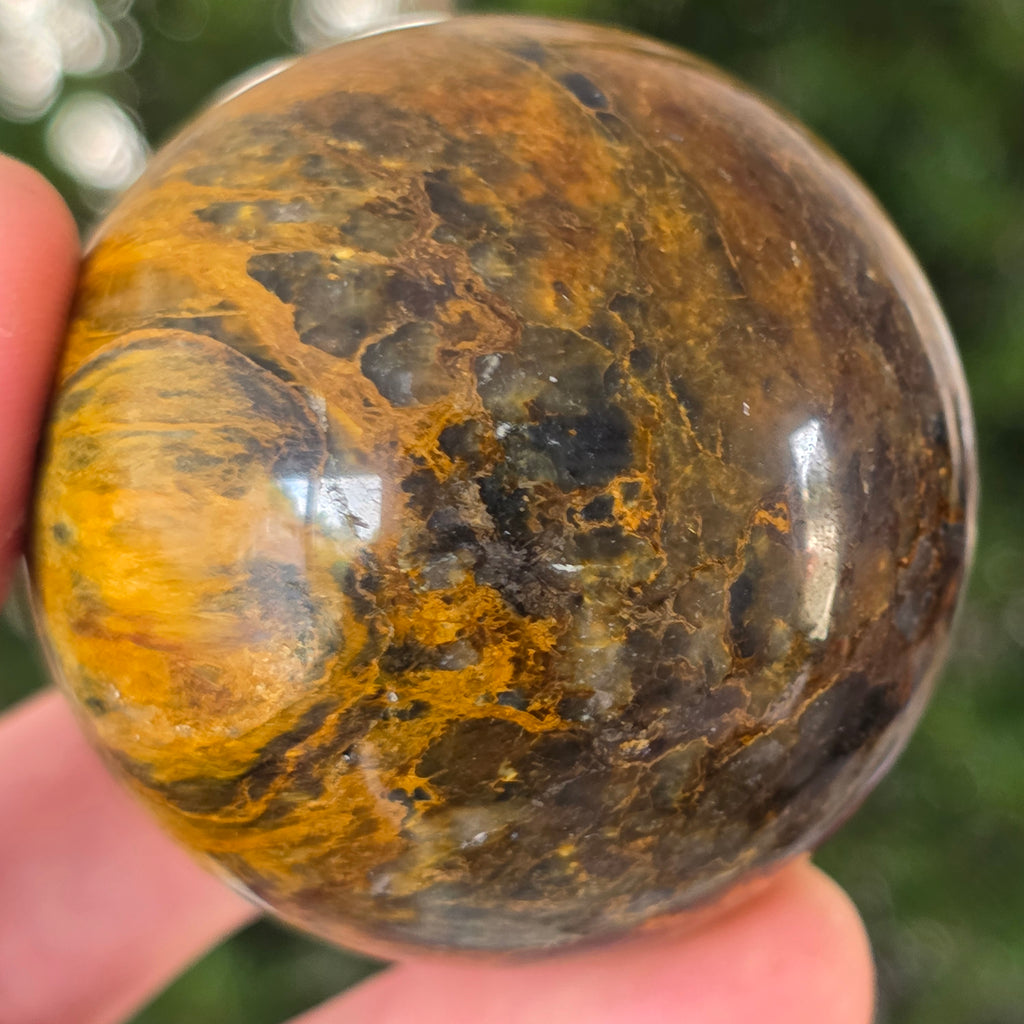 • Obsidian: Glossy black obsidian, as well as its rainbow and lightning variants, form spheres that reflect an enigmatic beauty.