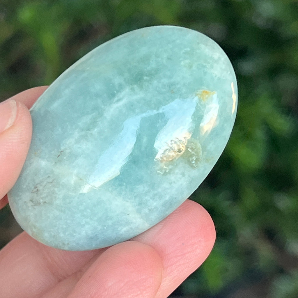 Description - Acvamarin unicat rulat , palmstone | Model 4