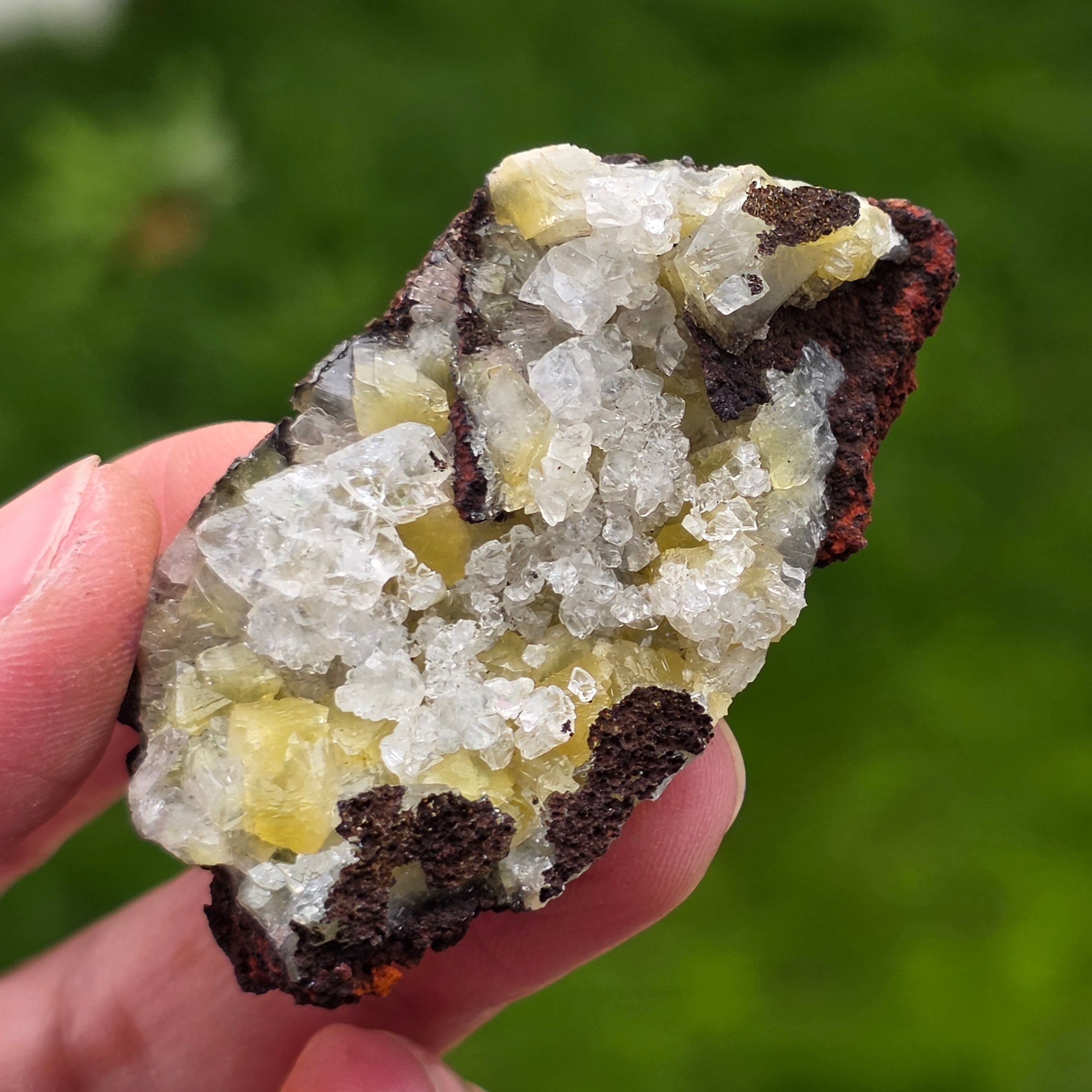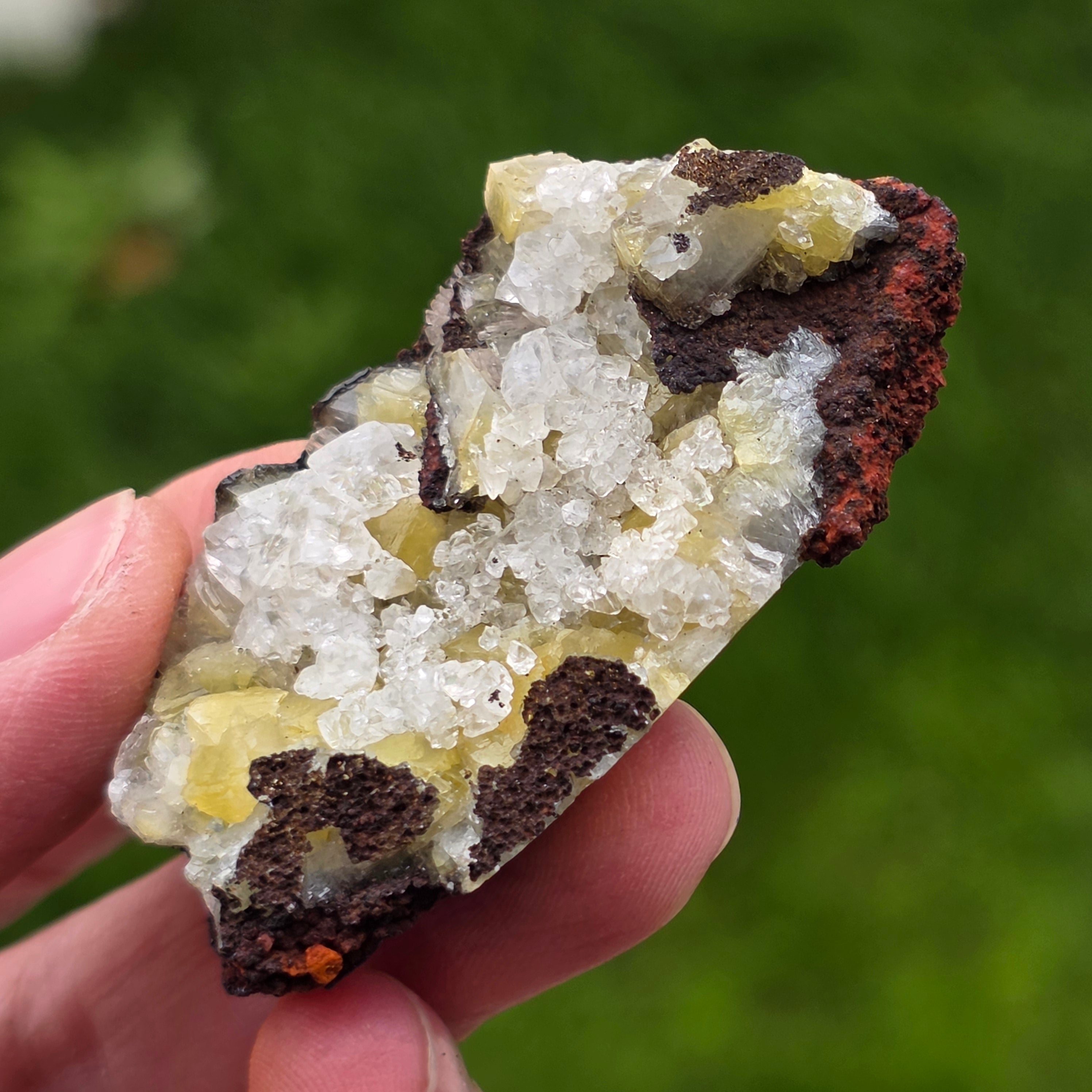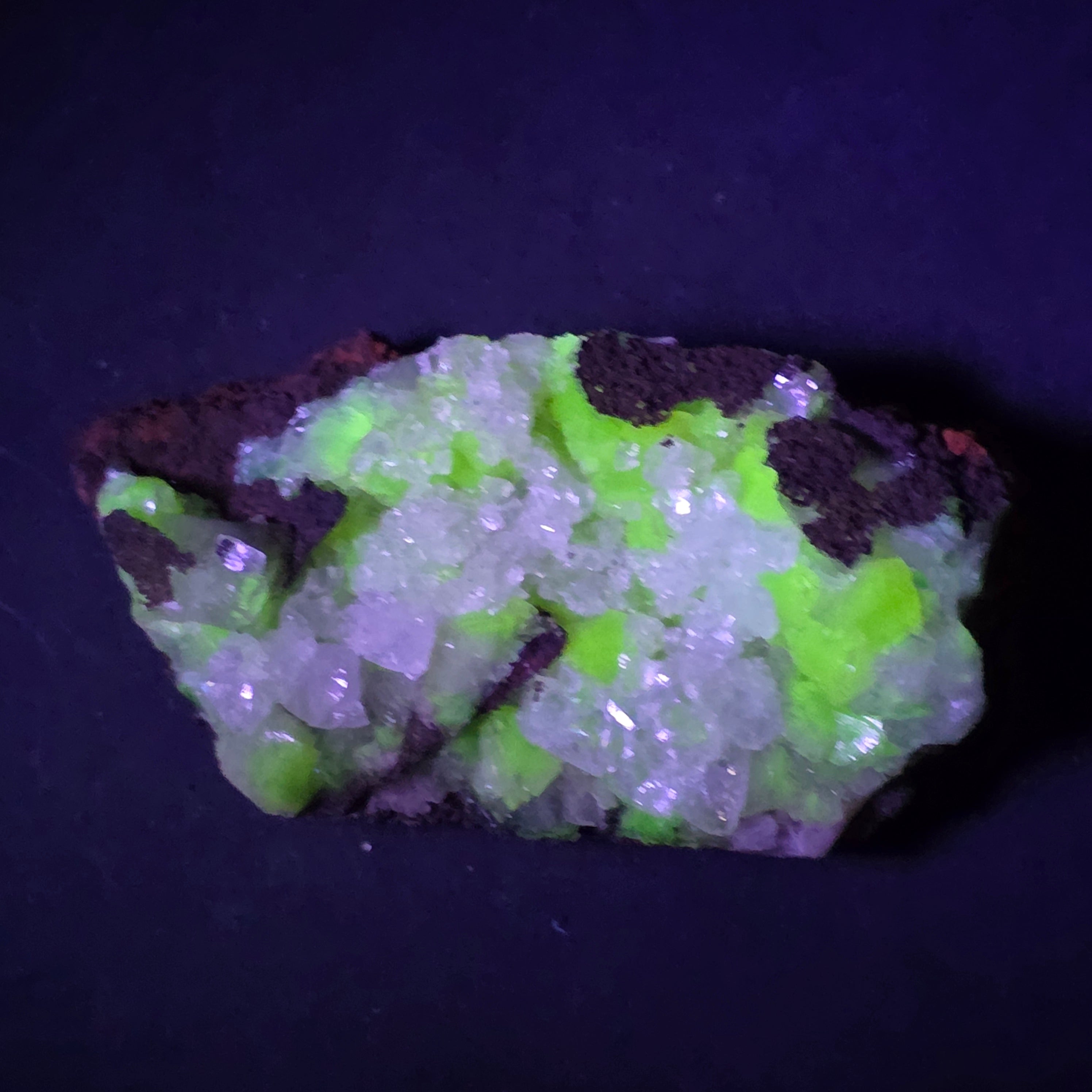 Acest specimen de adamit din Mexic, provenit din faimoasa Mina Ojuela, Mapimí – Durango, este o piesă mineralogică de colecție, extrem de apreciată pentru culoarea sa intensă, verde-gălbuie, și pentru fluorescența spectaculoasă sub lumină UV. Mina Ojuela este considerată una dintre cele mai importante localități clasice din lume pentru adamit, piesele de aici fiind de referință pentru acest mineral.