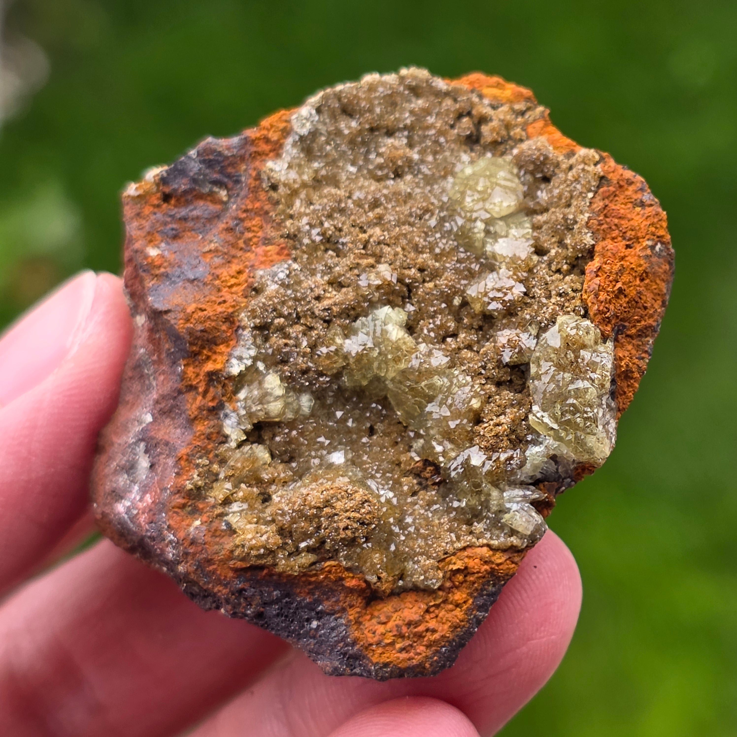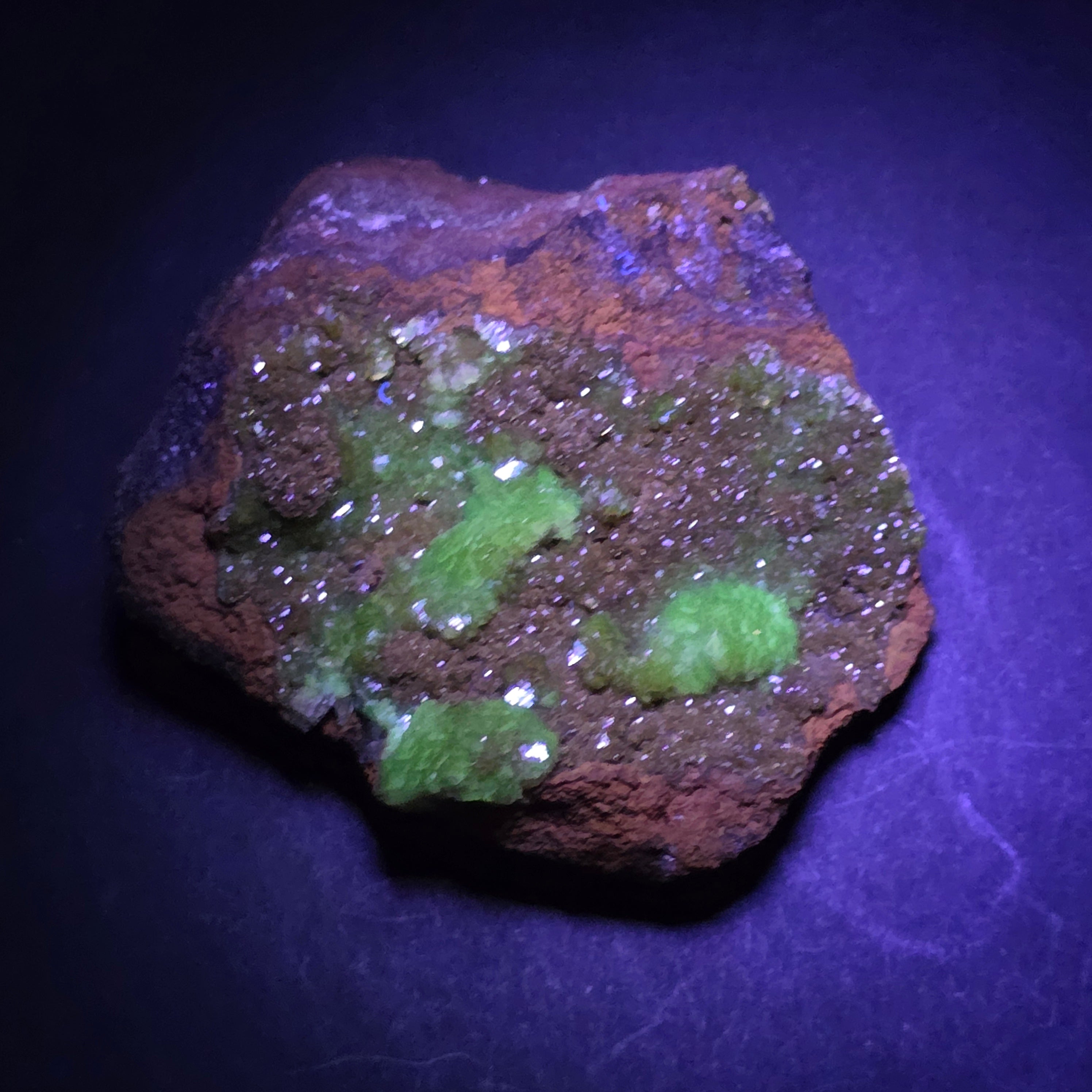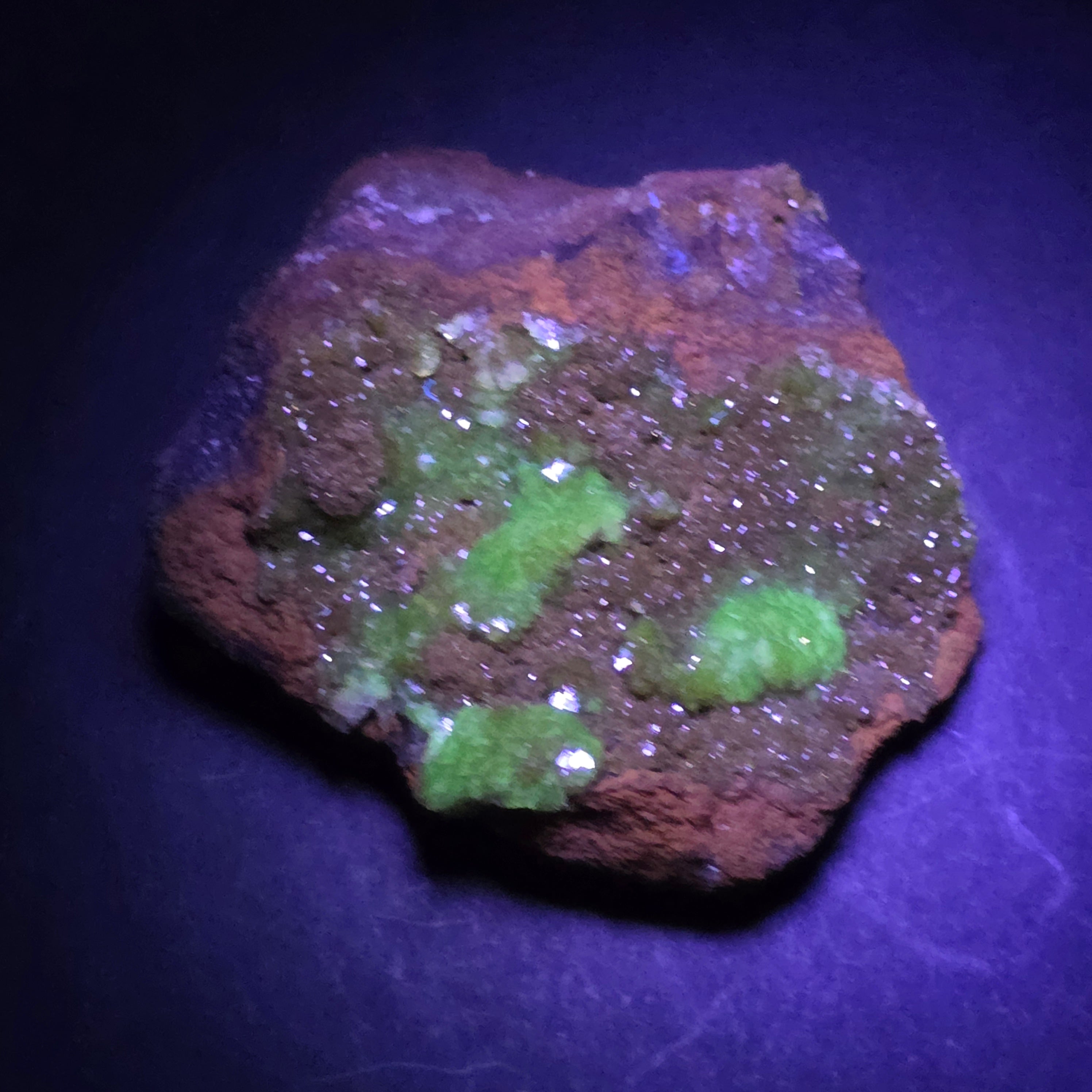 Acest specimen de adamit din Mexic, provenit din faimoasa Mina Ojuela, Mapimí – Durango, este o piesă mineralogică de colecție, extrem de apreciată pentru culoarea sa intensă, verde-gălbuie, și pentru fluorescența spectaculoasă sub lumină UV. Mina Ojuela este considerată una dintre cele mai importante localități clasice din lume pentru adamit, piesele de aici fiind de referință pentru acest mineral.