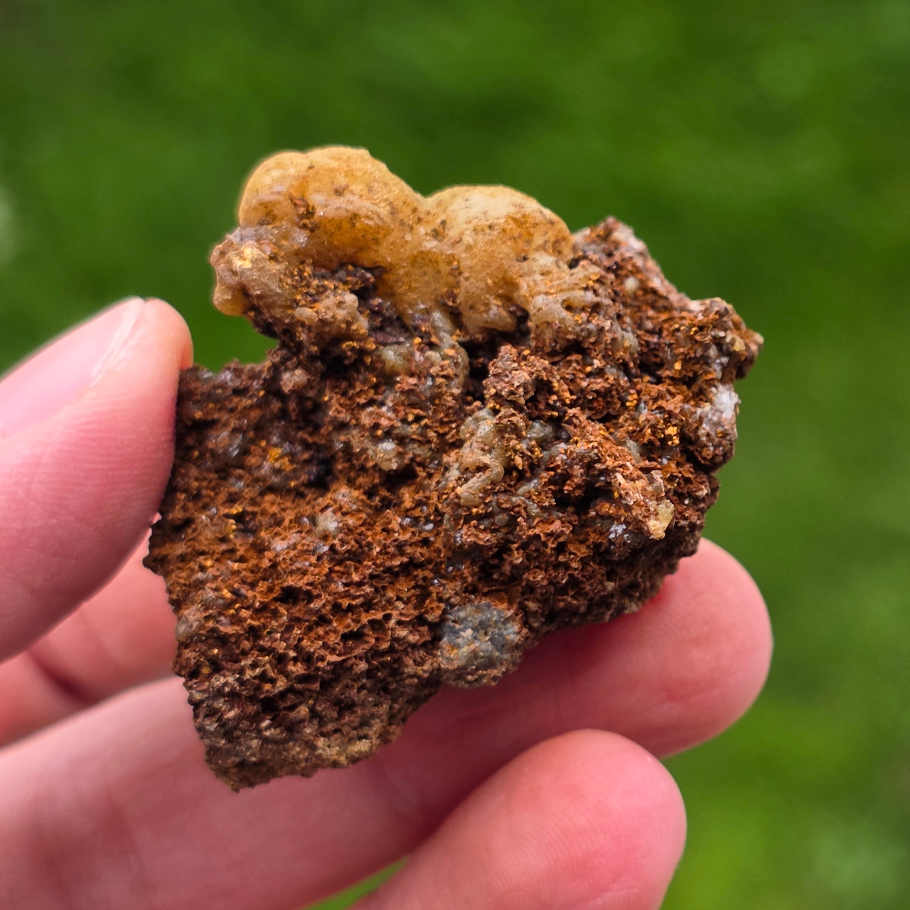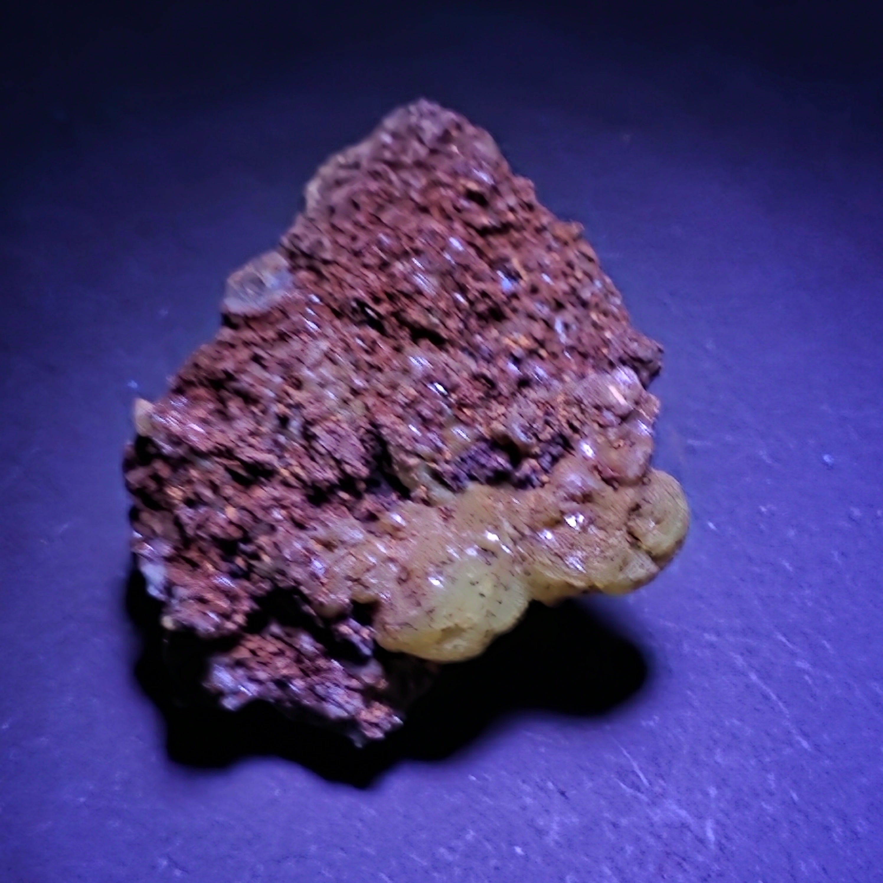 Acest specimen de adamit din Mexic, provenit din faimoasa Mina Ojuela, Mapimí – Durango, este o piesă mineralogică de colecție, extrem de apreciată pentru culoarea sa intensă, verde-gălbuie, și pentru fluorescența spectaculoasă sub lumină UV. Mina Ojuela este considerată una dintre cele mai importante localități clasice din lume pentru adamit, piesele de aici fiind de referință pentru acest mineral.