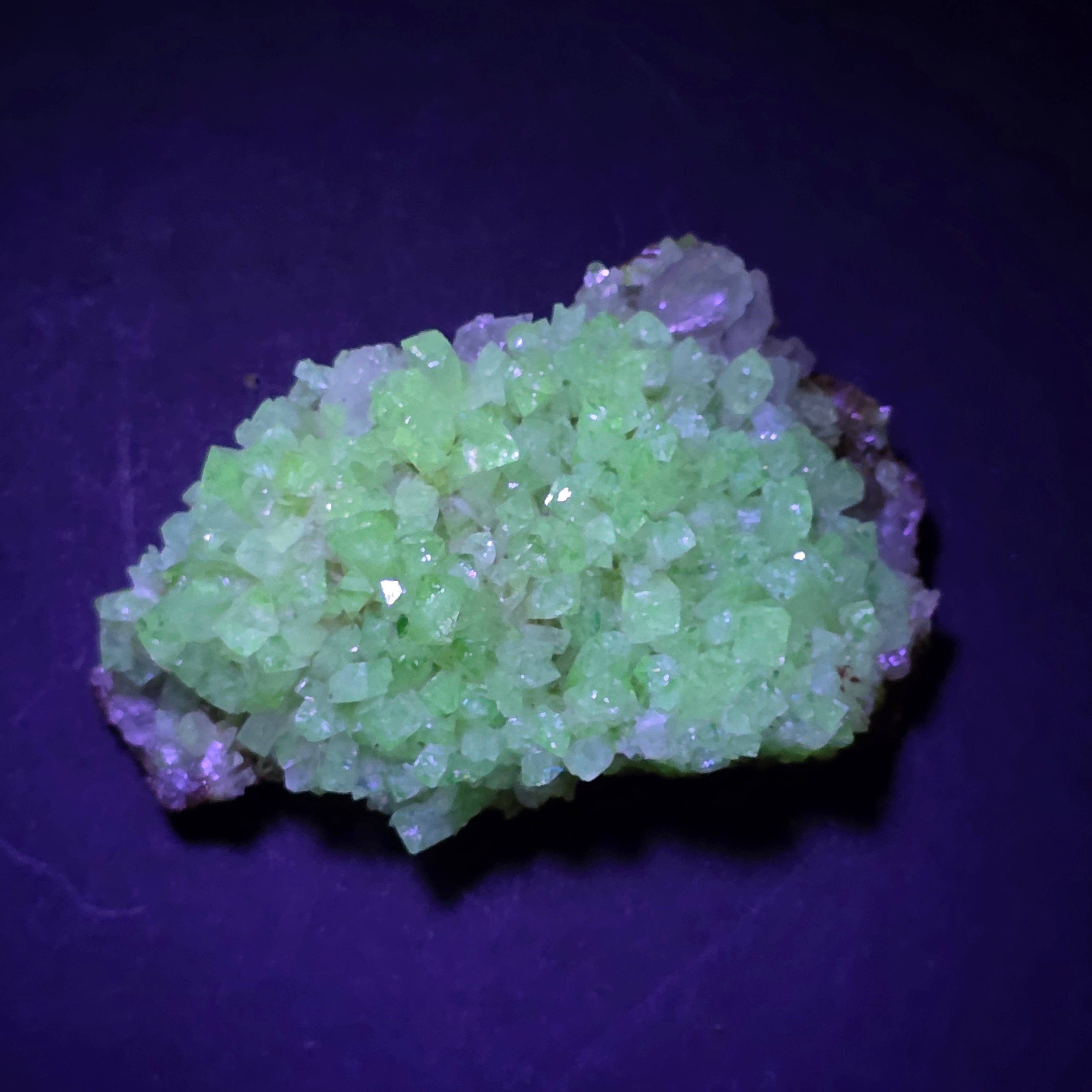 Acest specimen de adamit din Mexic, provenit din faimoasa Mina Ojuela, Mapimí – Durango, este o piesă mineralogică de colecție, extrem de apreciată pentru culoarea sa intensă, verde-gălbuie, și pentru fluorescența spectaculoasă sub lumină UV. Mina Ojuela este considerată una dintre cele mai importante localități clasice din lume pentru adamit, piesele de aici fiind de referință pentru acest mineral.