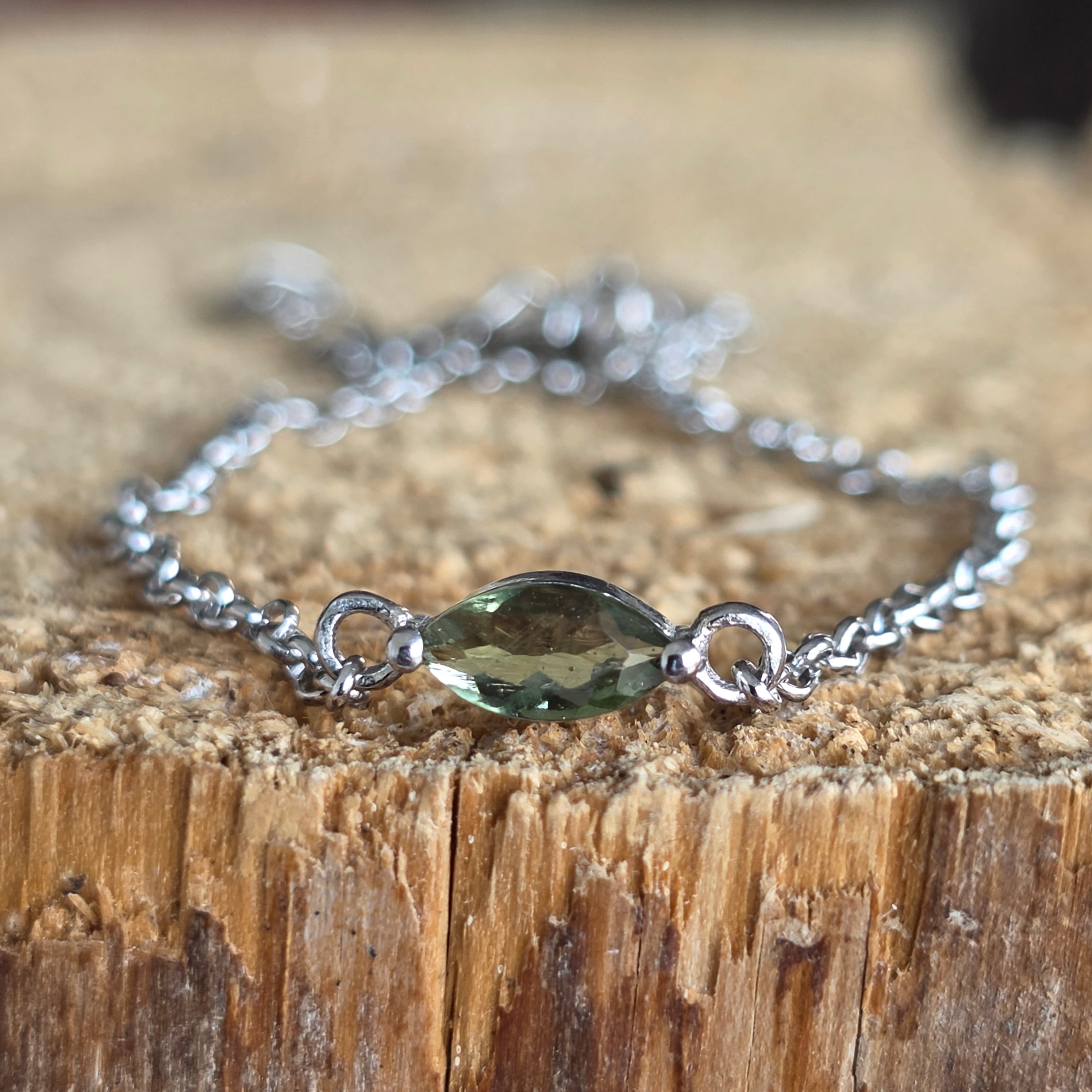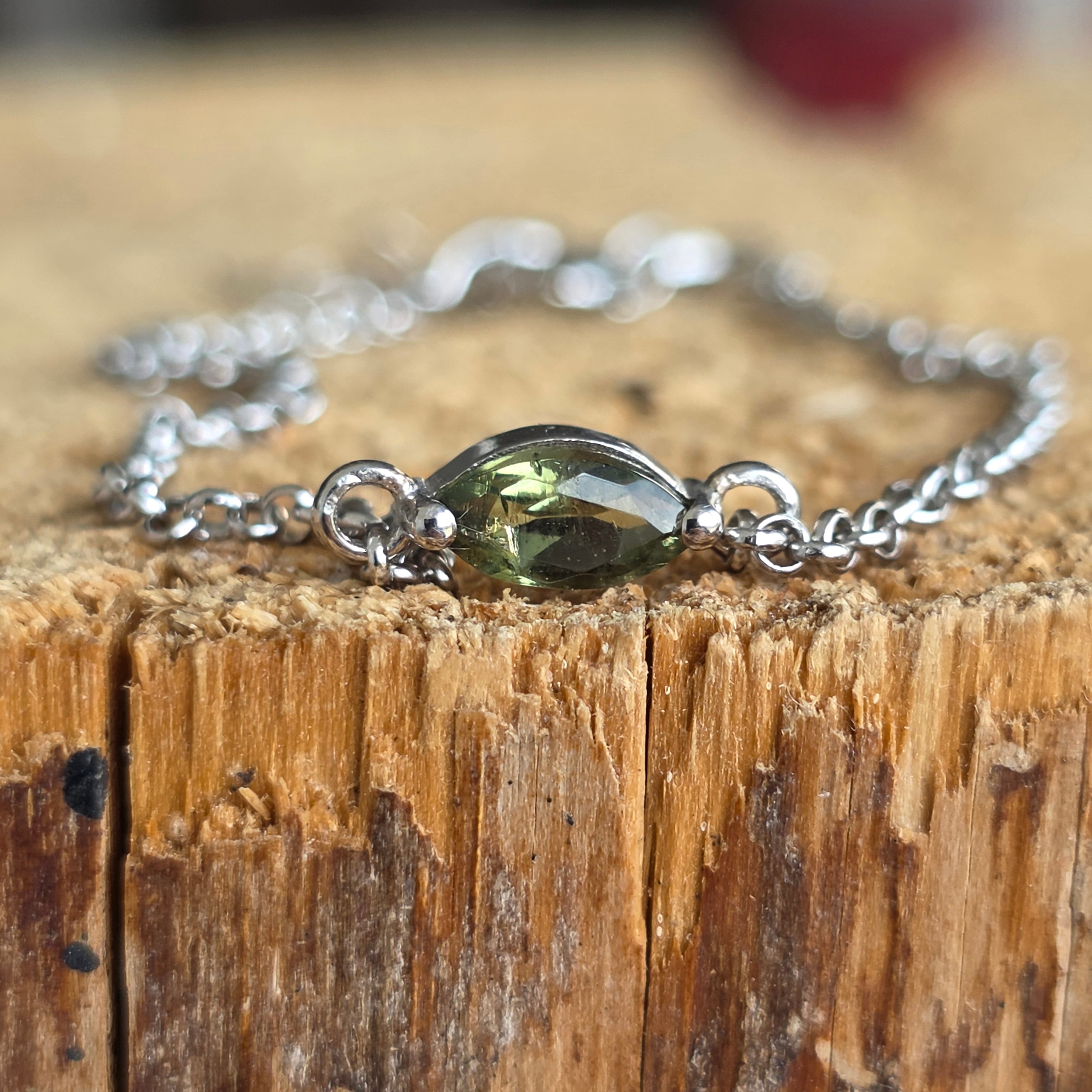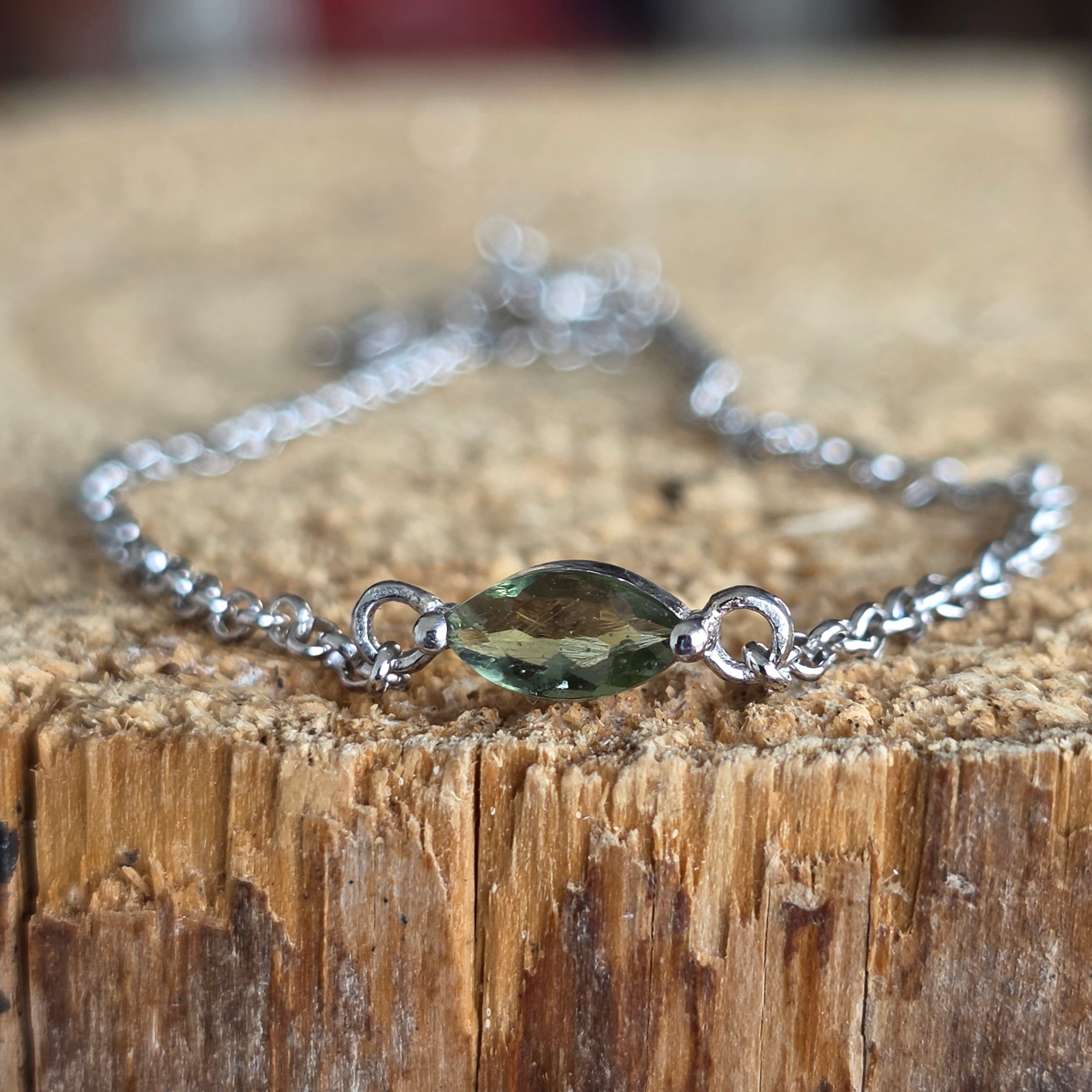 There are pieces of jewelry that are not just accessories, but experiences. This fine silver bracelet, complemented by the deep mystery of moldavite, is one of those rare pieces that combine elegance with a story millions of years old.