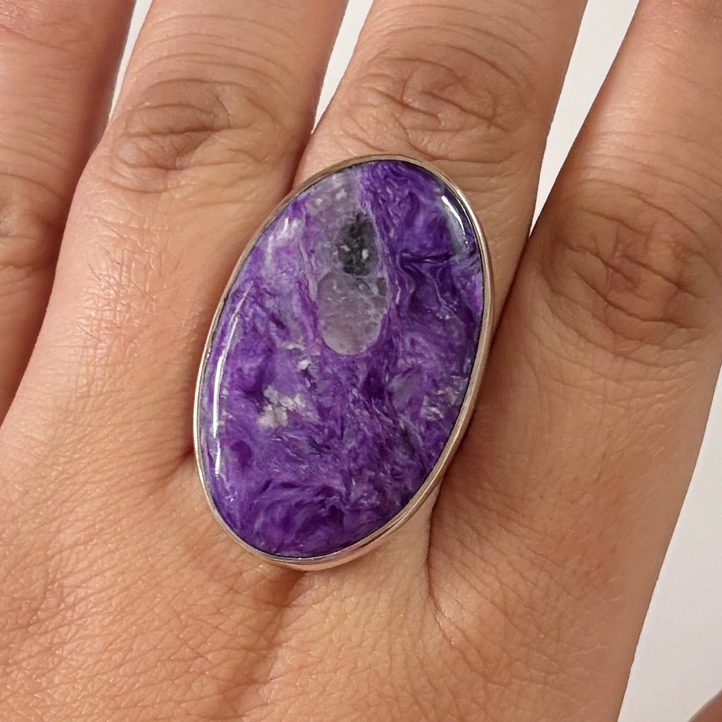 ✔ Minimalist mount in 925 silver highlights the intense beauty of the charoit, leaving it to be the center of attention.