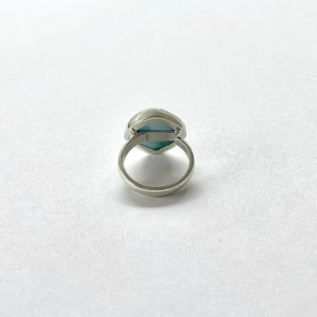 A unique ring of natural larimis, known as the stone of the sky and the ocean. Its shades of aquatic blue, with white reflections like the waves of the sea, bring inner peace and a feeling of infinite freedom.