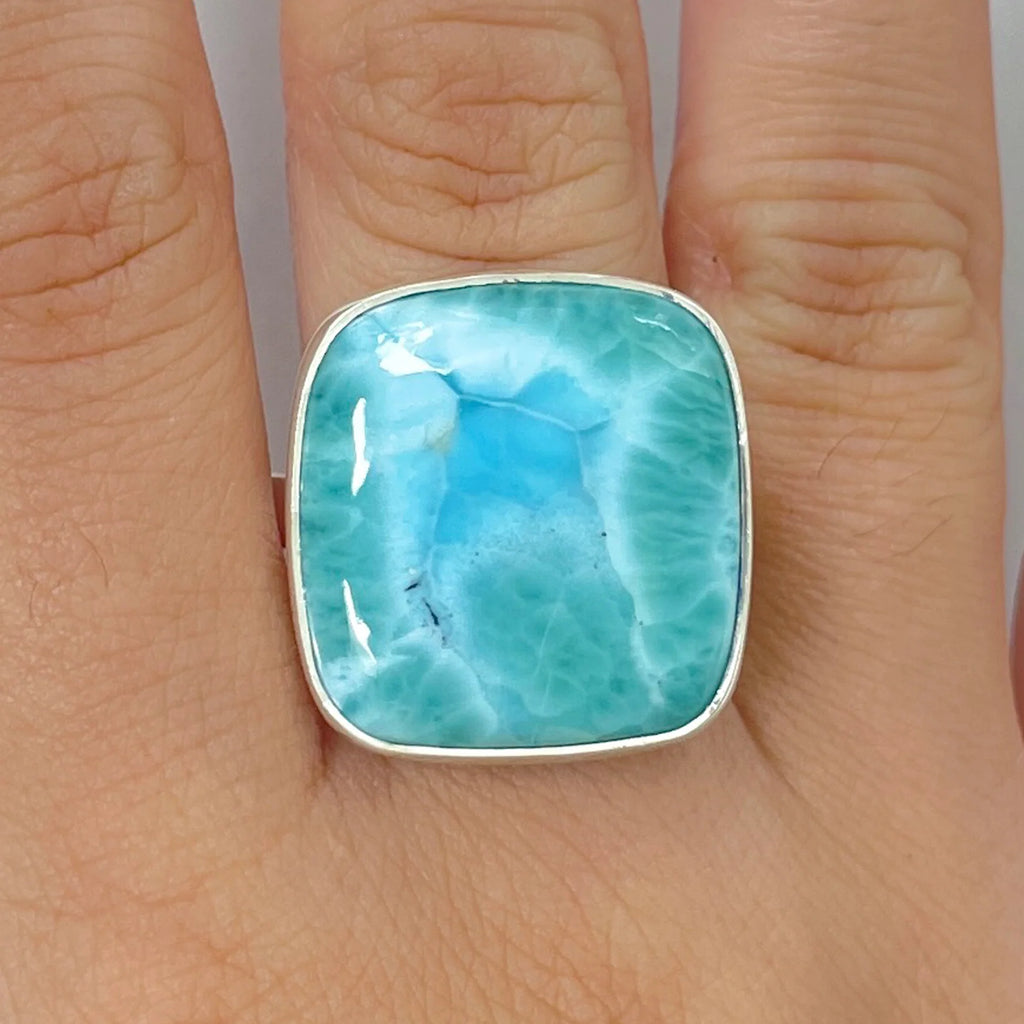 Larimar is a rare and beautiful gemstone, known for its distinctive blue and blue-green colors, reminiscent of the crystal clear waters of the ocean. When used in jewelry, the larimar adds a touch of freshness and elegance, giving the pieces a unique and eye-catching look. Larimar is often associated with a state of calm, mental clarity, and inner peace, making it a popular choice for those looking for jewelry with a deeper meaning.