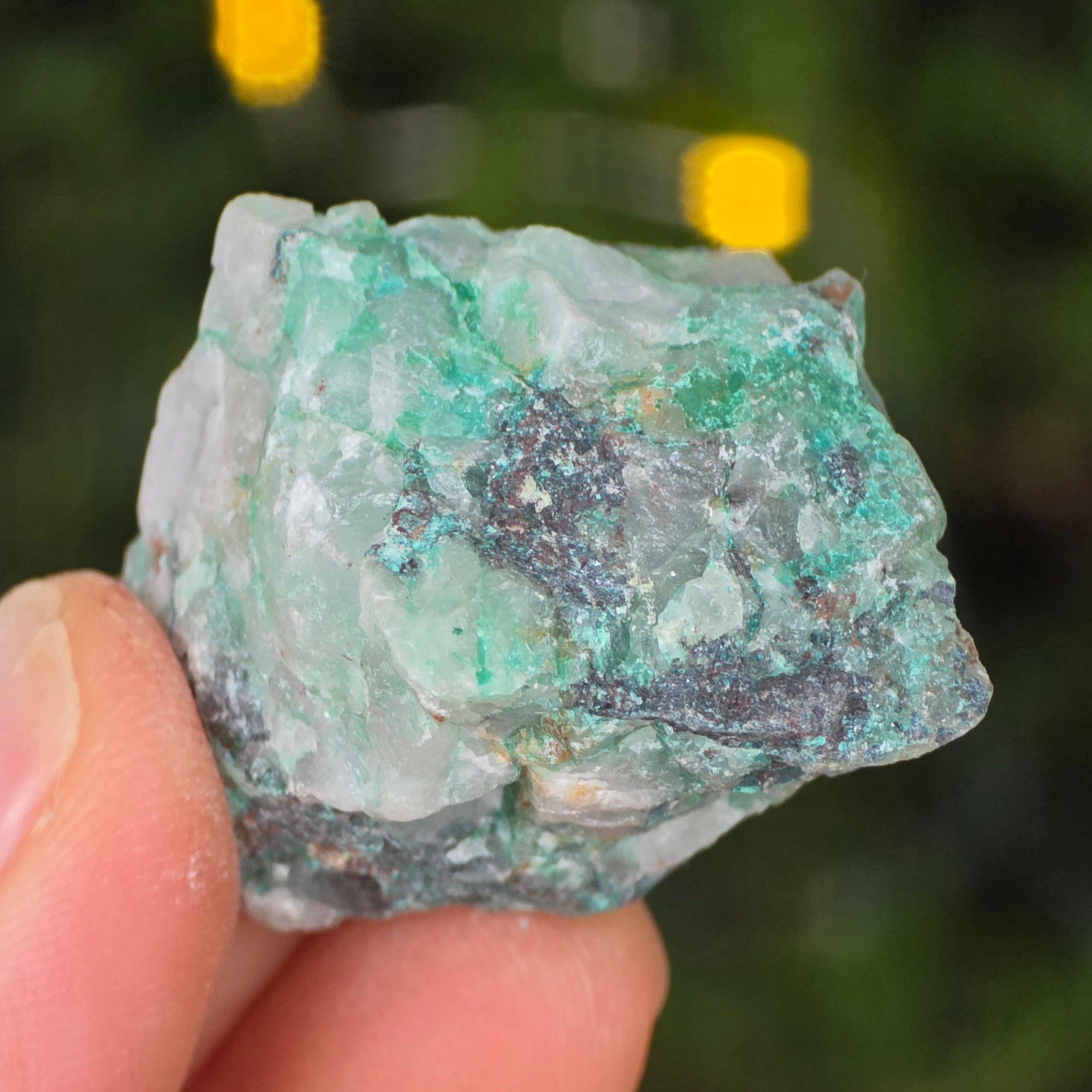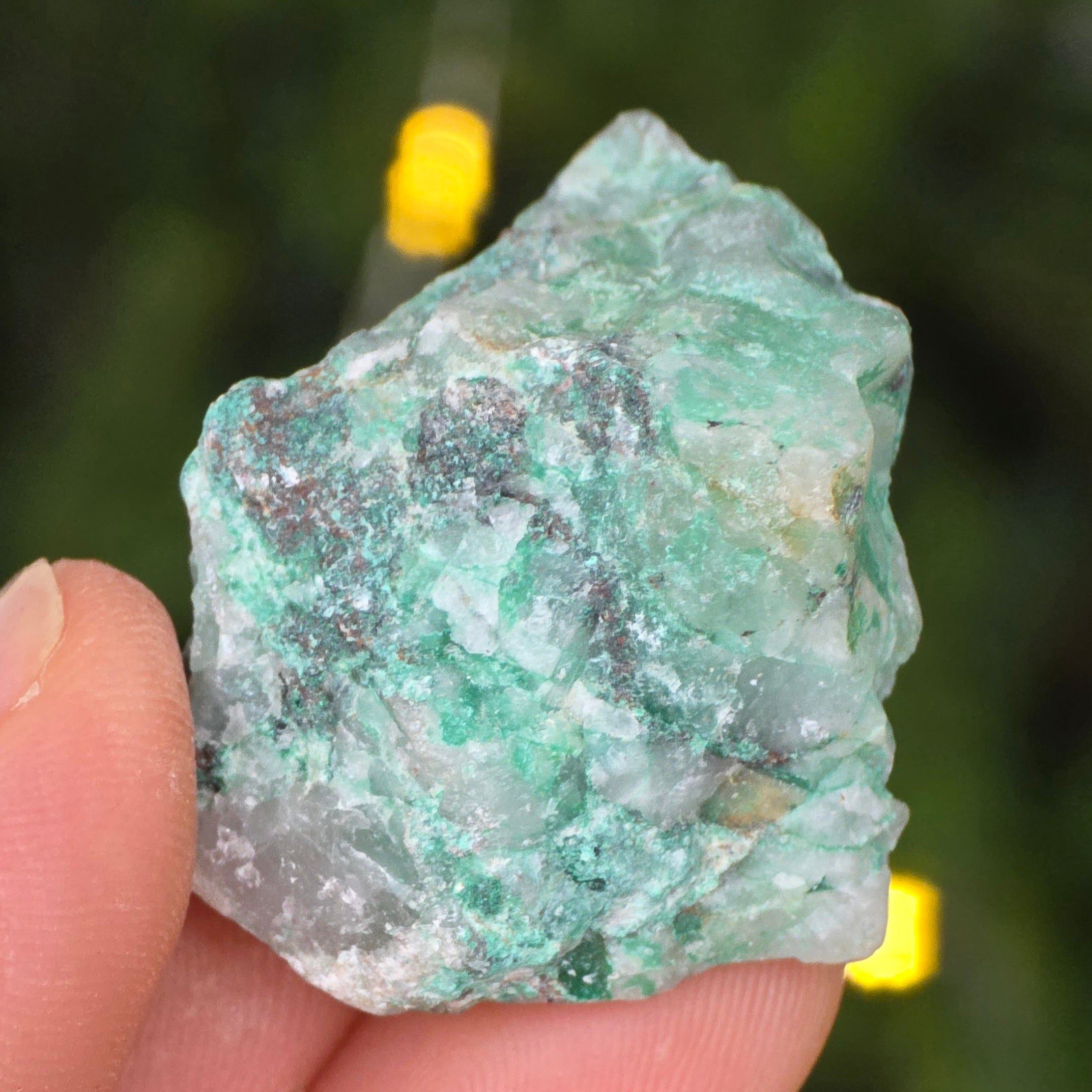 Ajoitul is a rare stone that is made up of sodium silicate and copper with an intense green color.