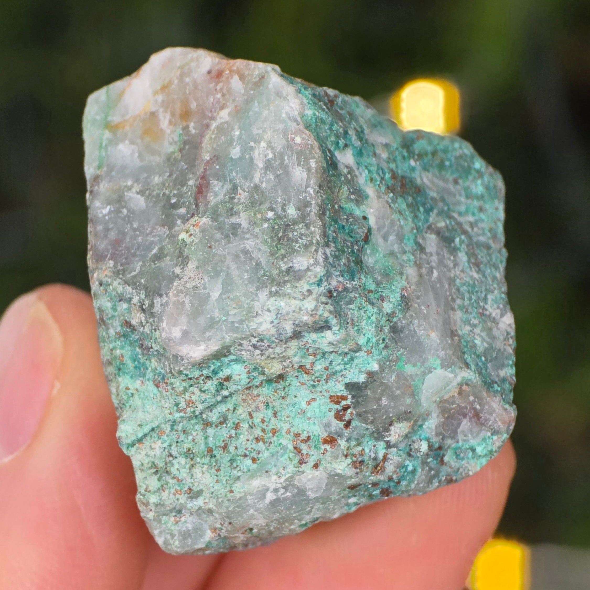 Ajoitul is a rare stone that is made up of sodium silicate and copper with an intense green color.