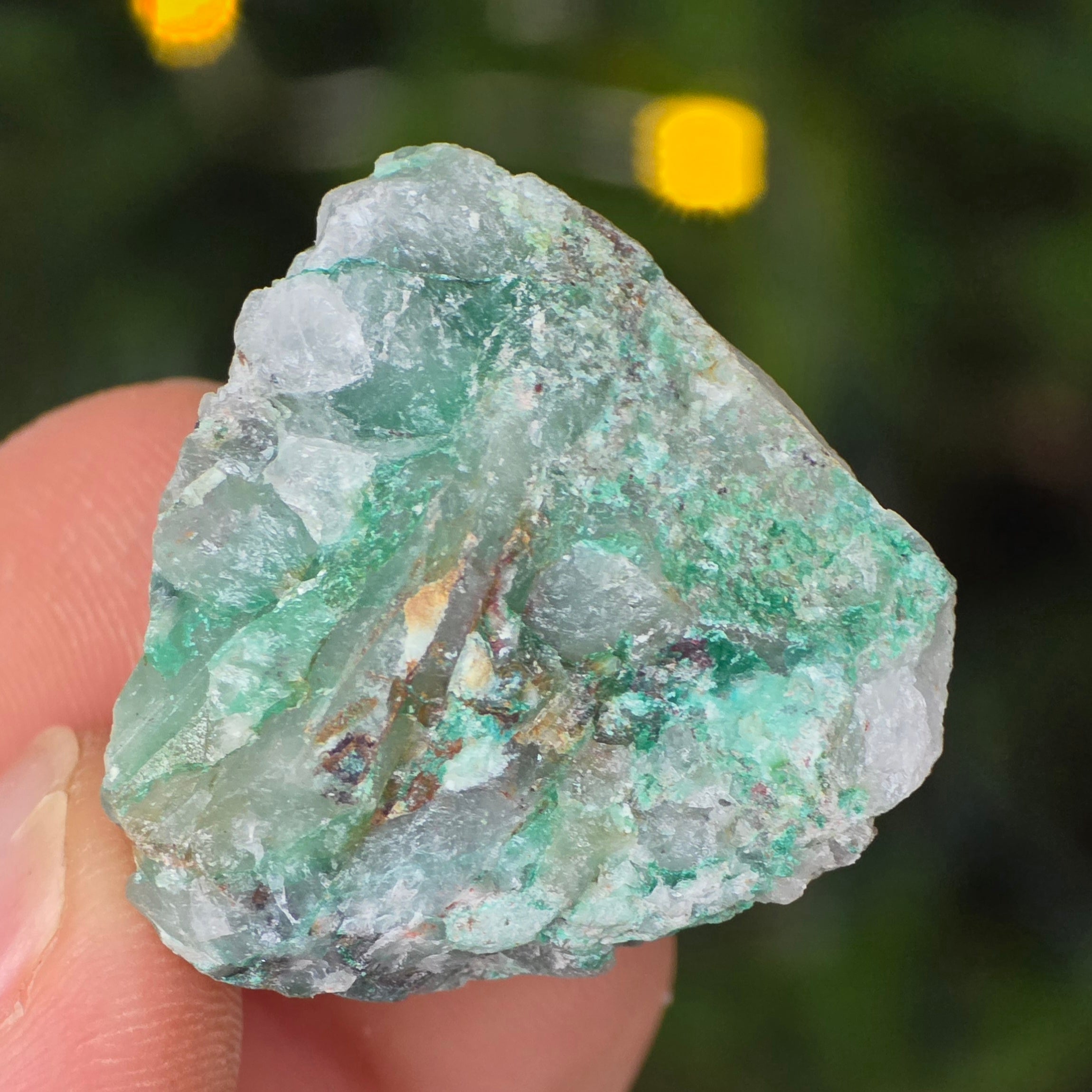 Ajoitul is a rare stone that is made up of sodium silicate and copper with an intense green color.