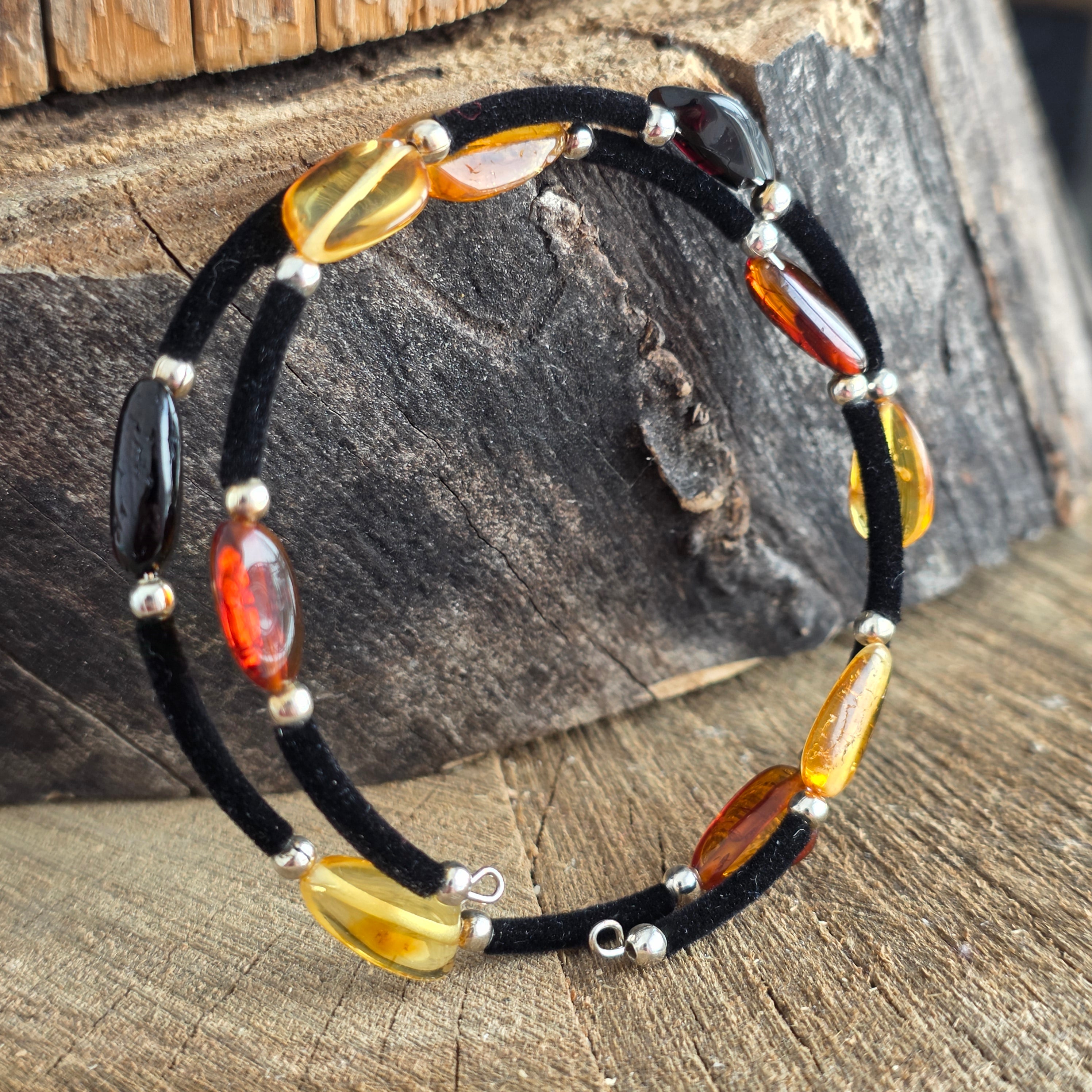 • Stone: natural amber – pebble-type beads, free form 8–14 mm