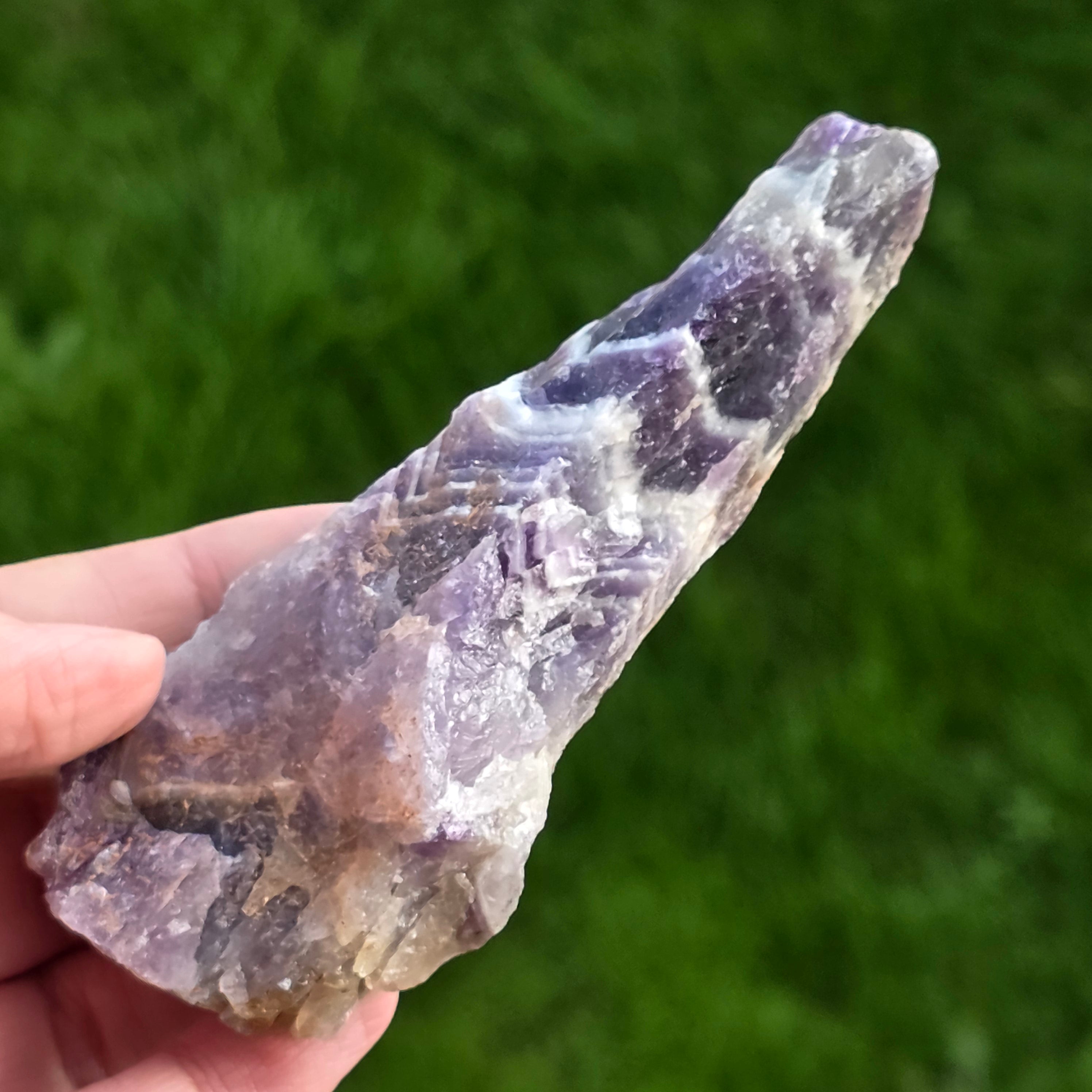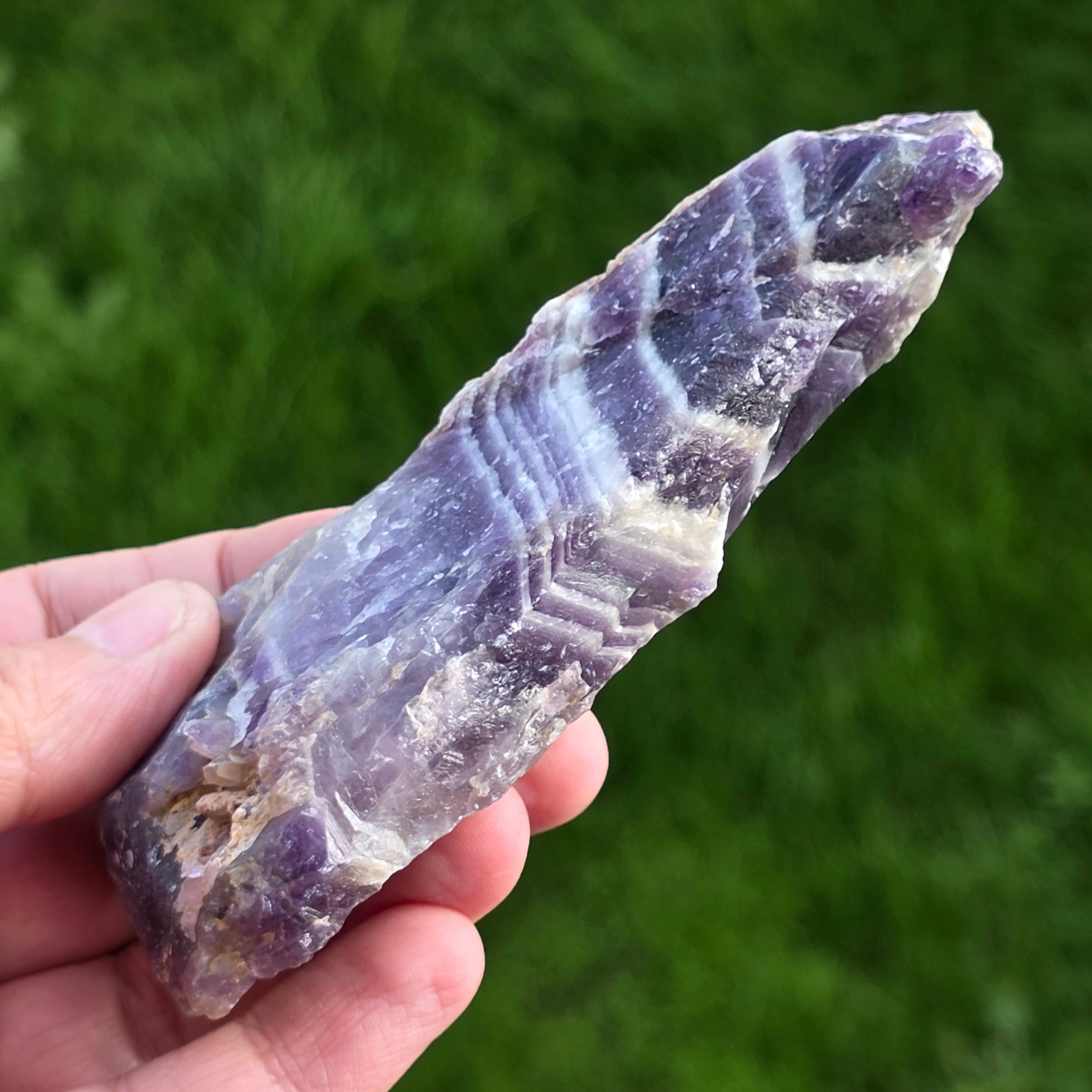 Description - Amethyst chevron rough stone/ tip m11