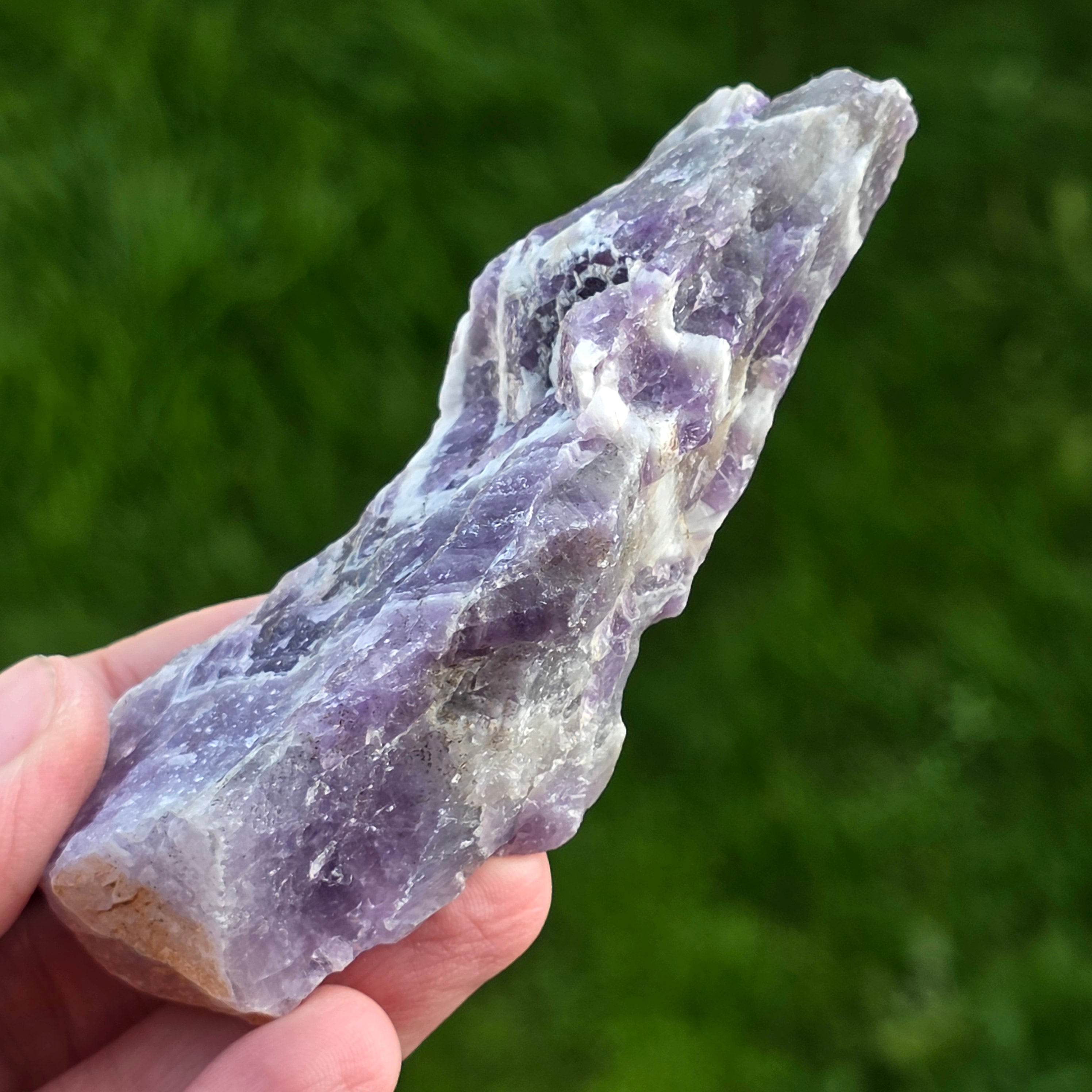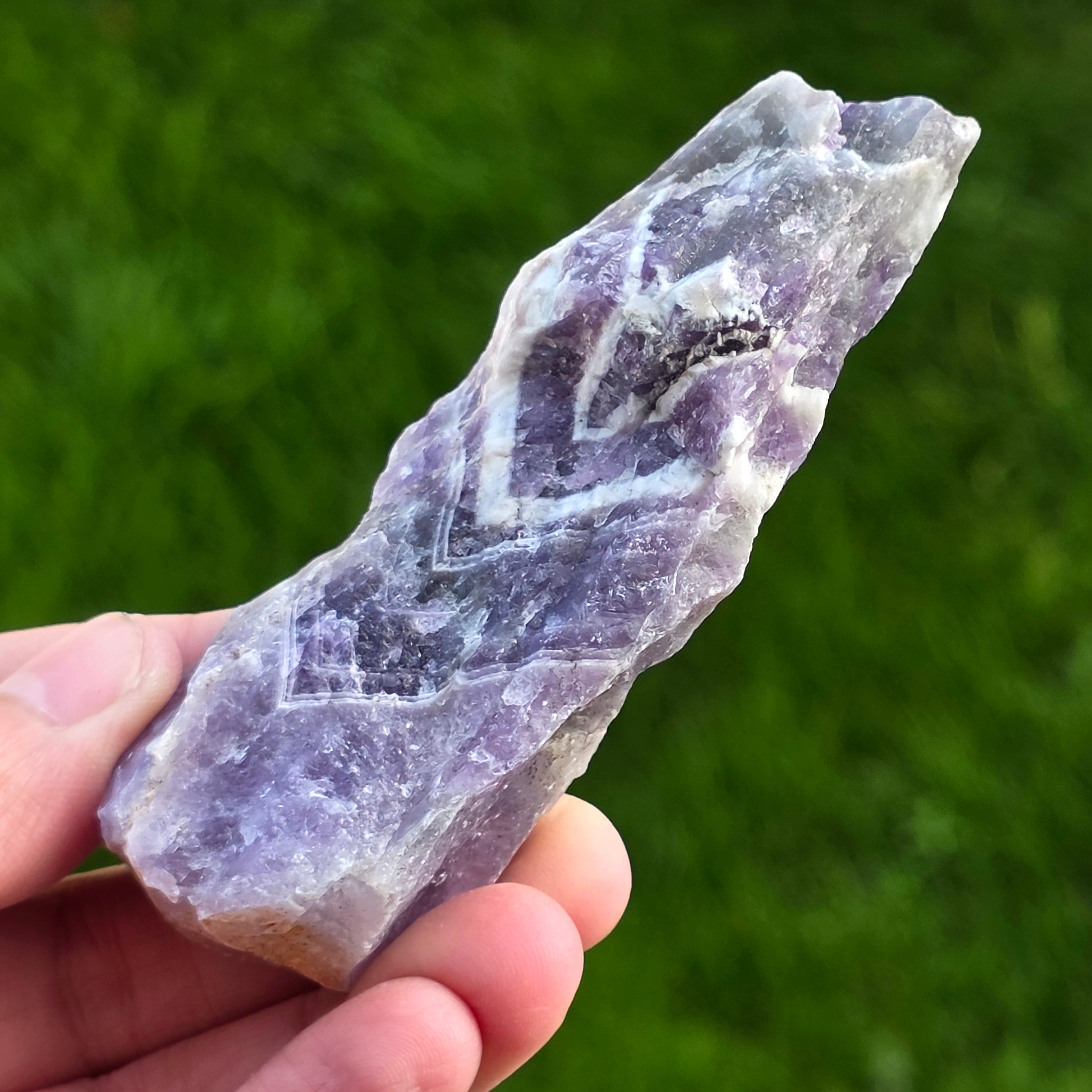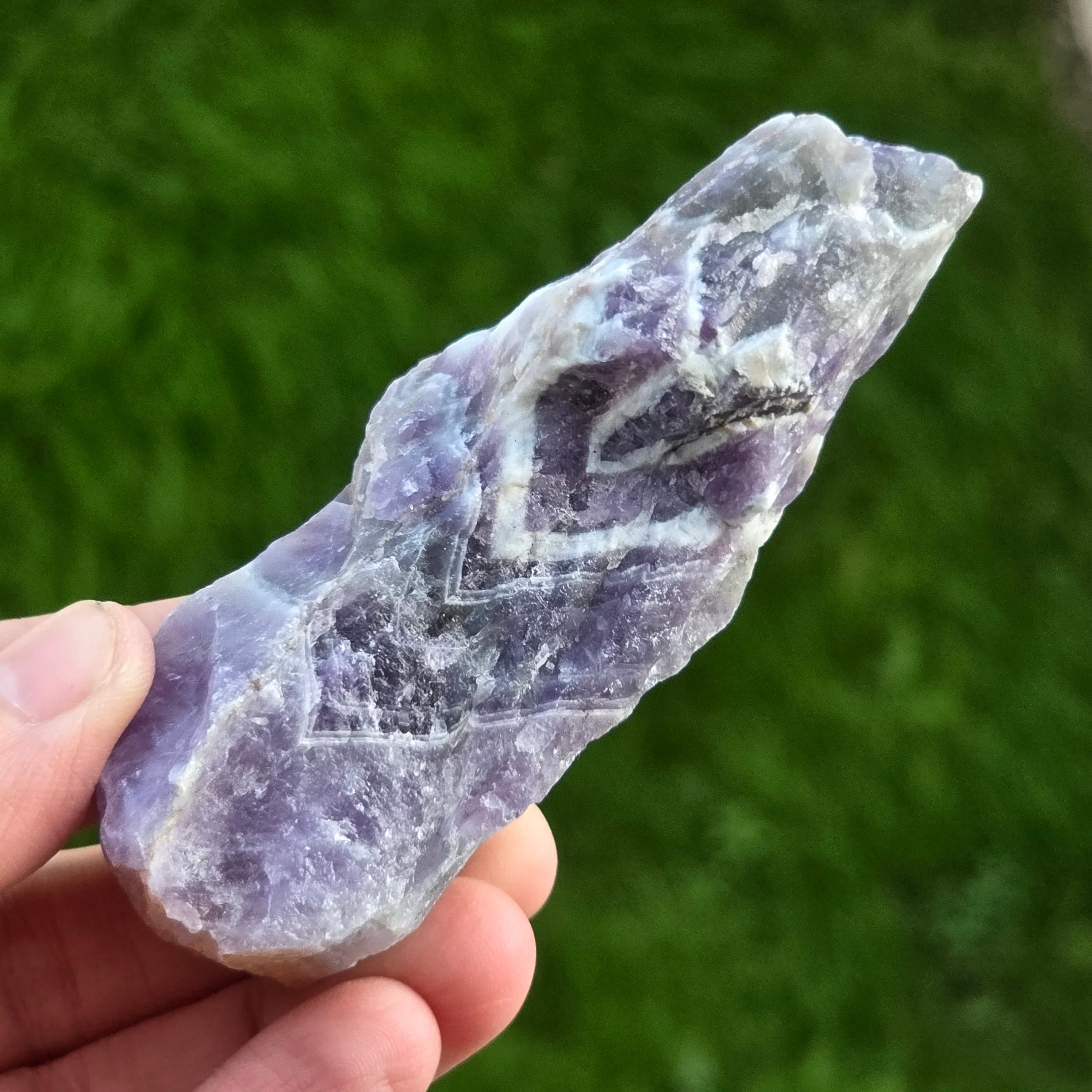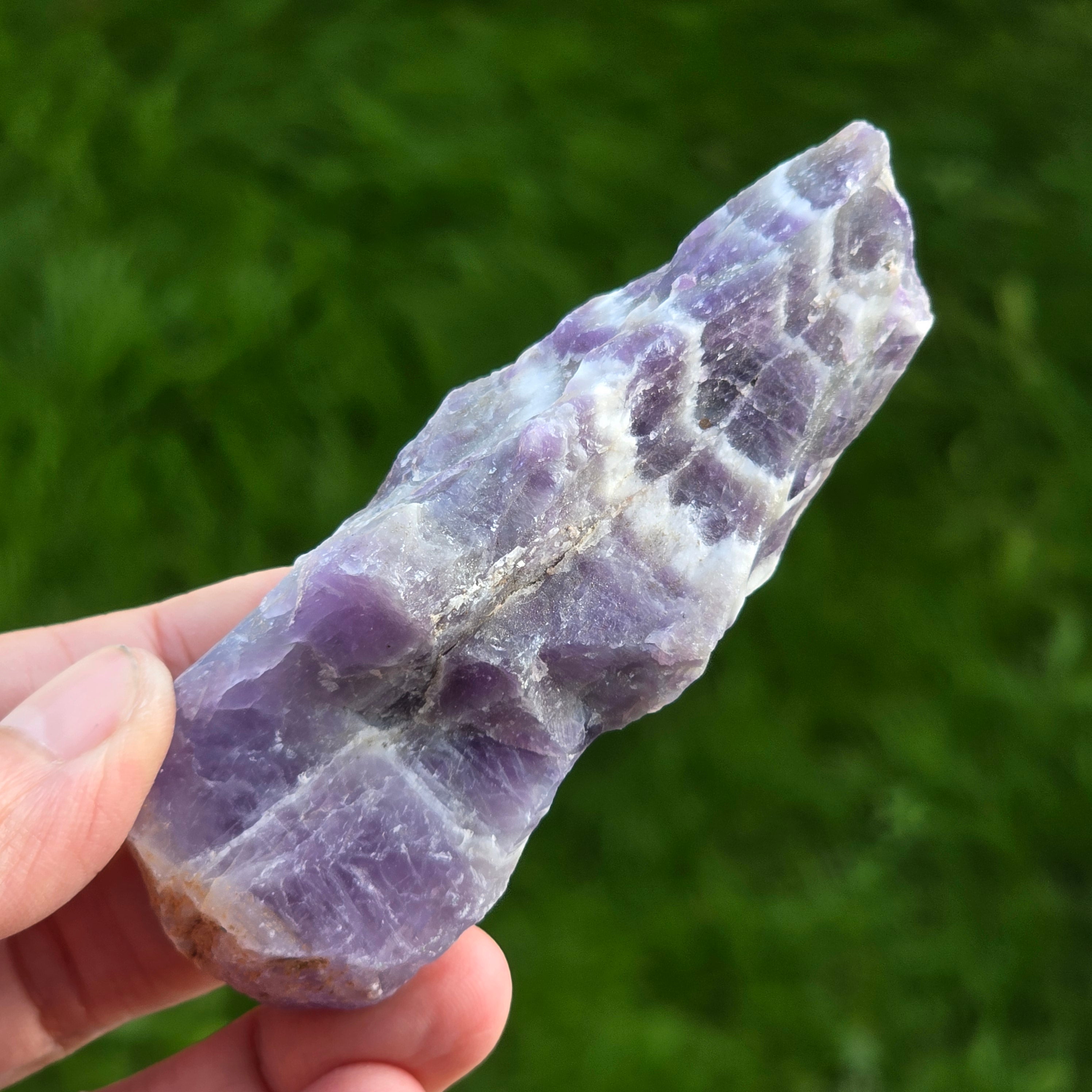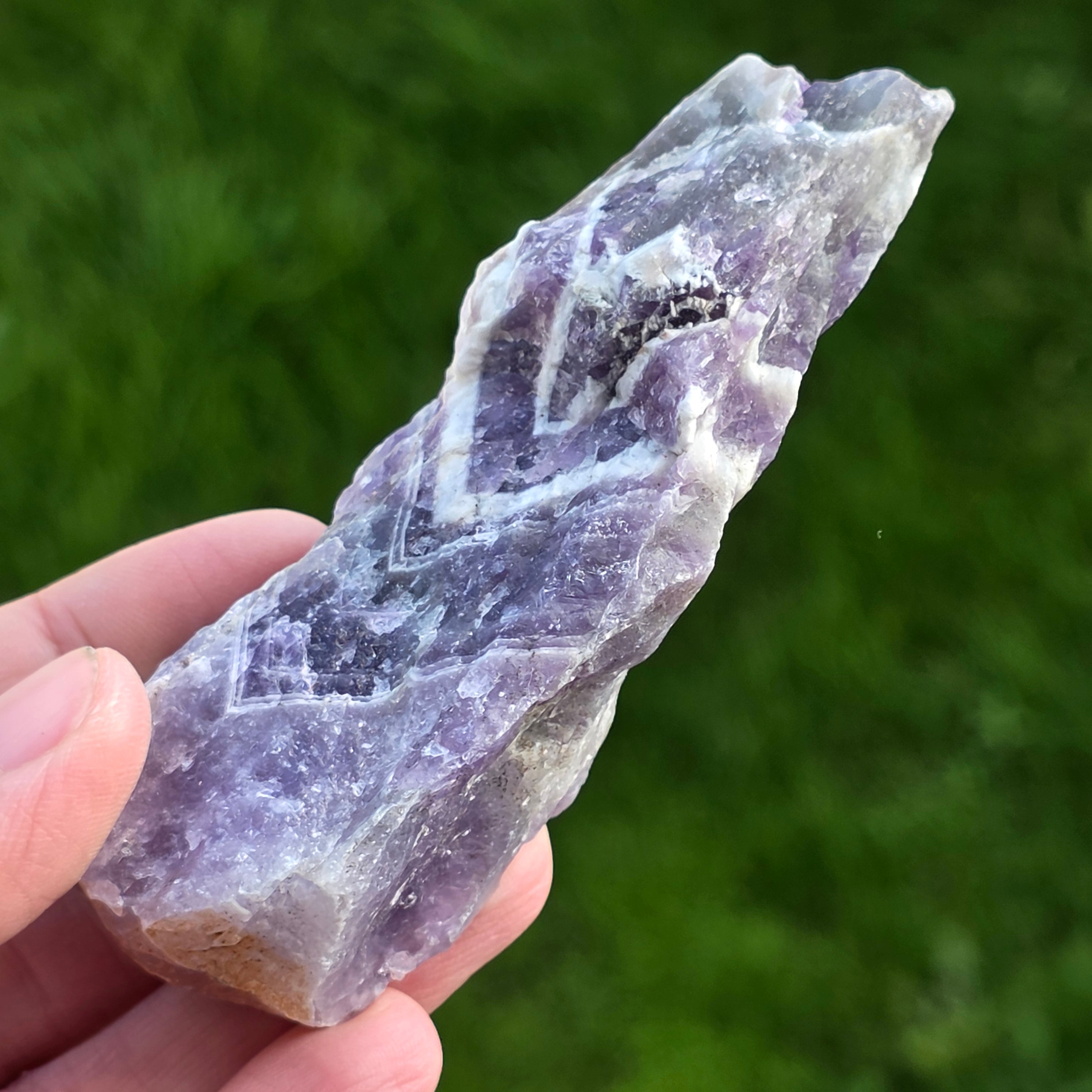 Description - Amethyst chevron rough stone/ tip m13