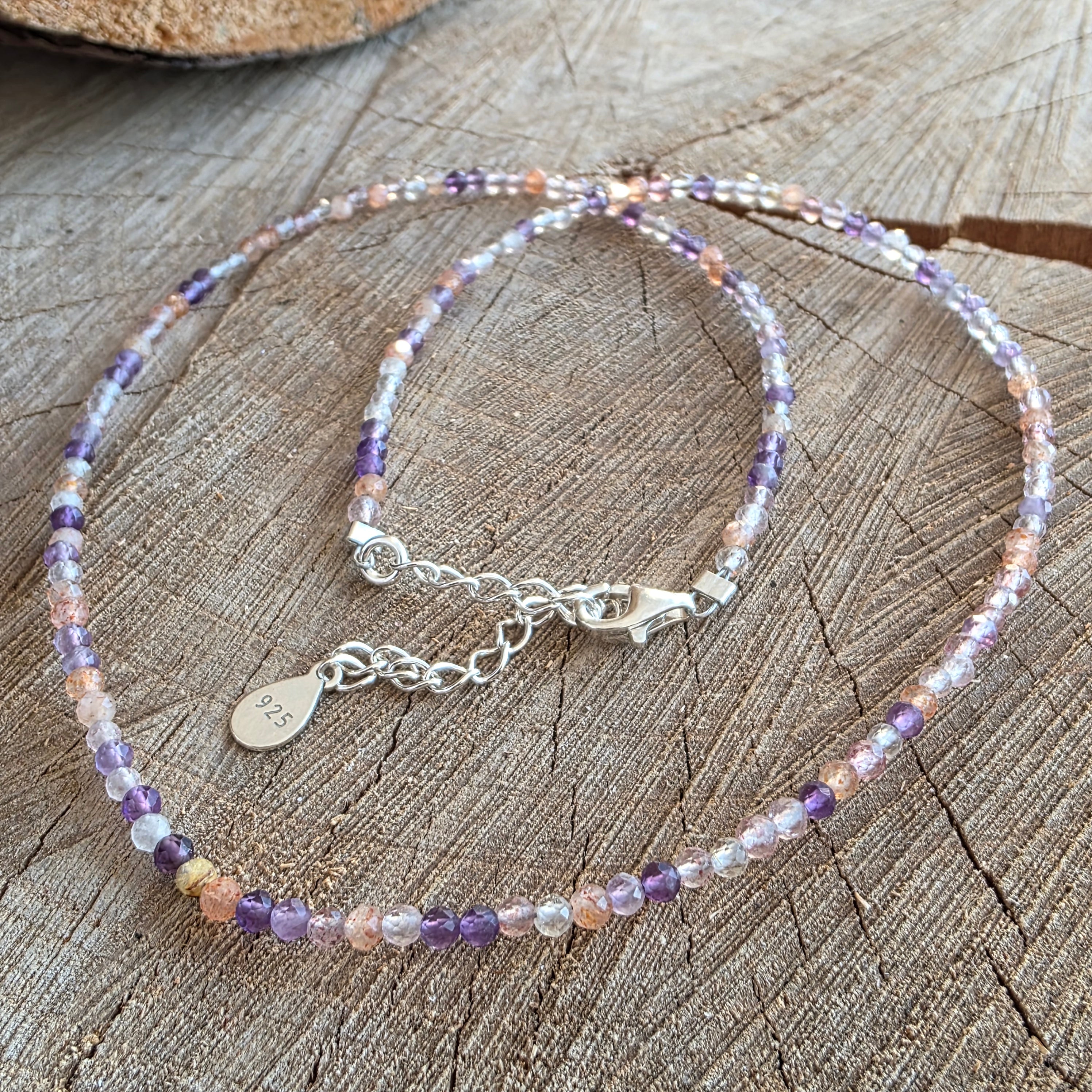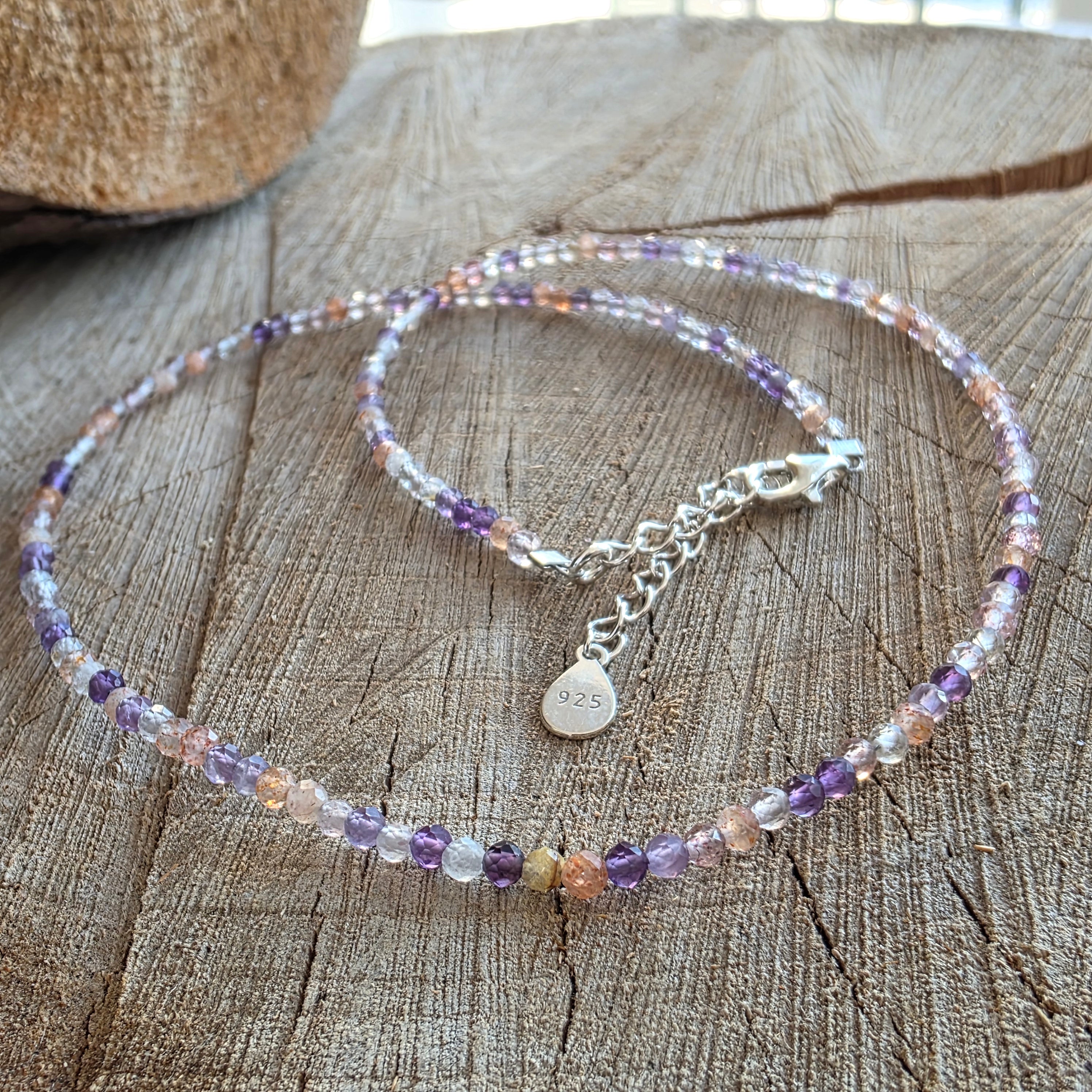 Amethyst necklace, pink quartz, citrus and colorless quartz Crystal Harmony #83