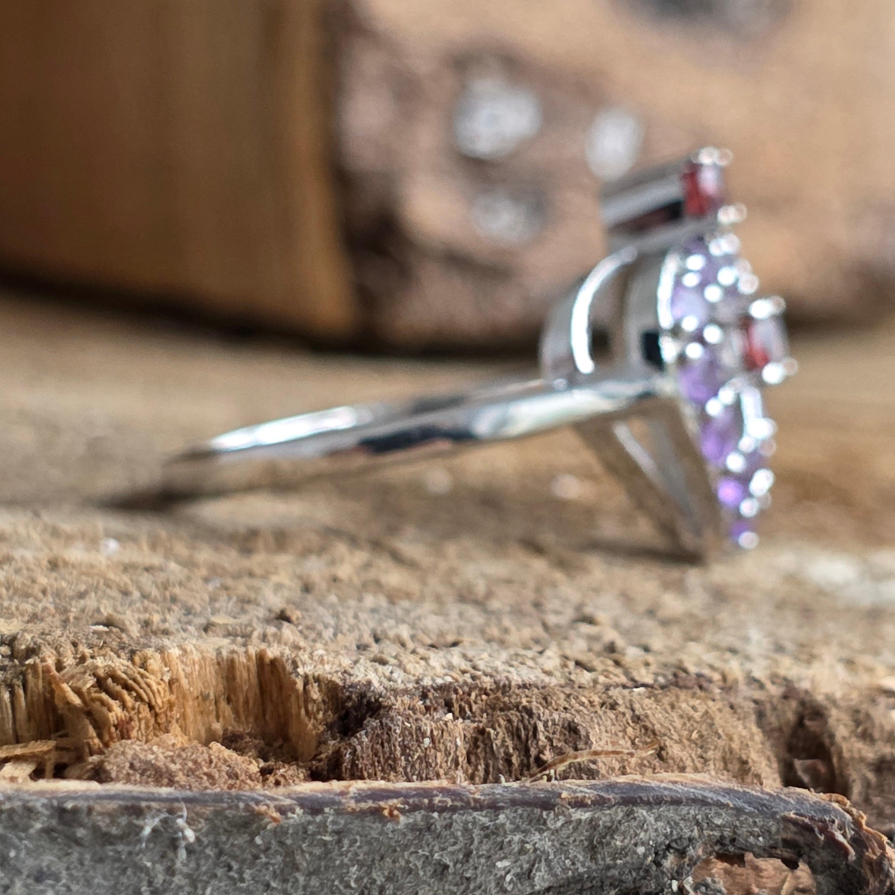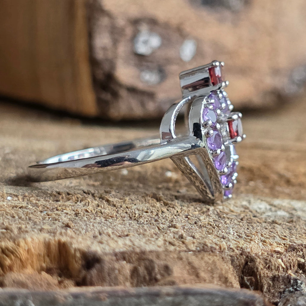 Amethyst silver ring, garnet | DUO