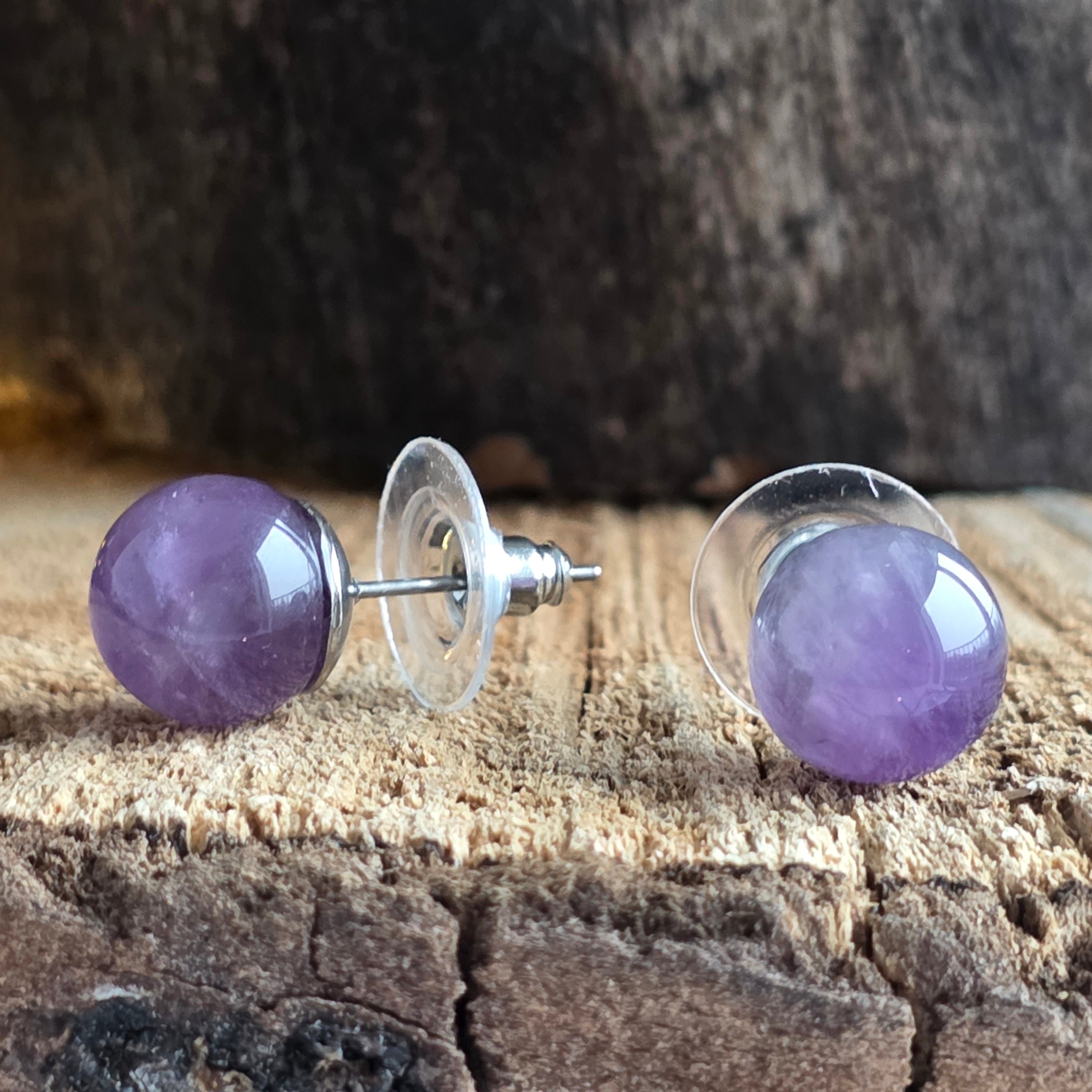 Description - Amethyst Sphere Stud Earrings 10 mm