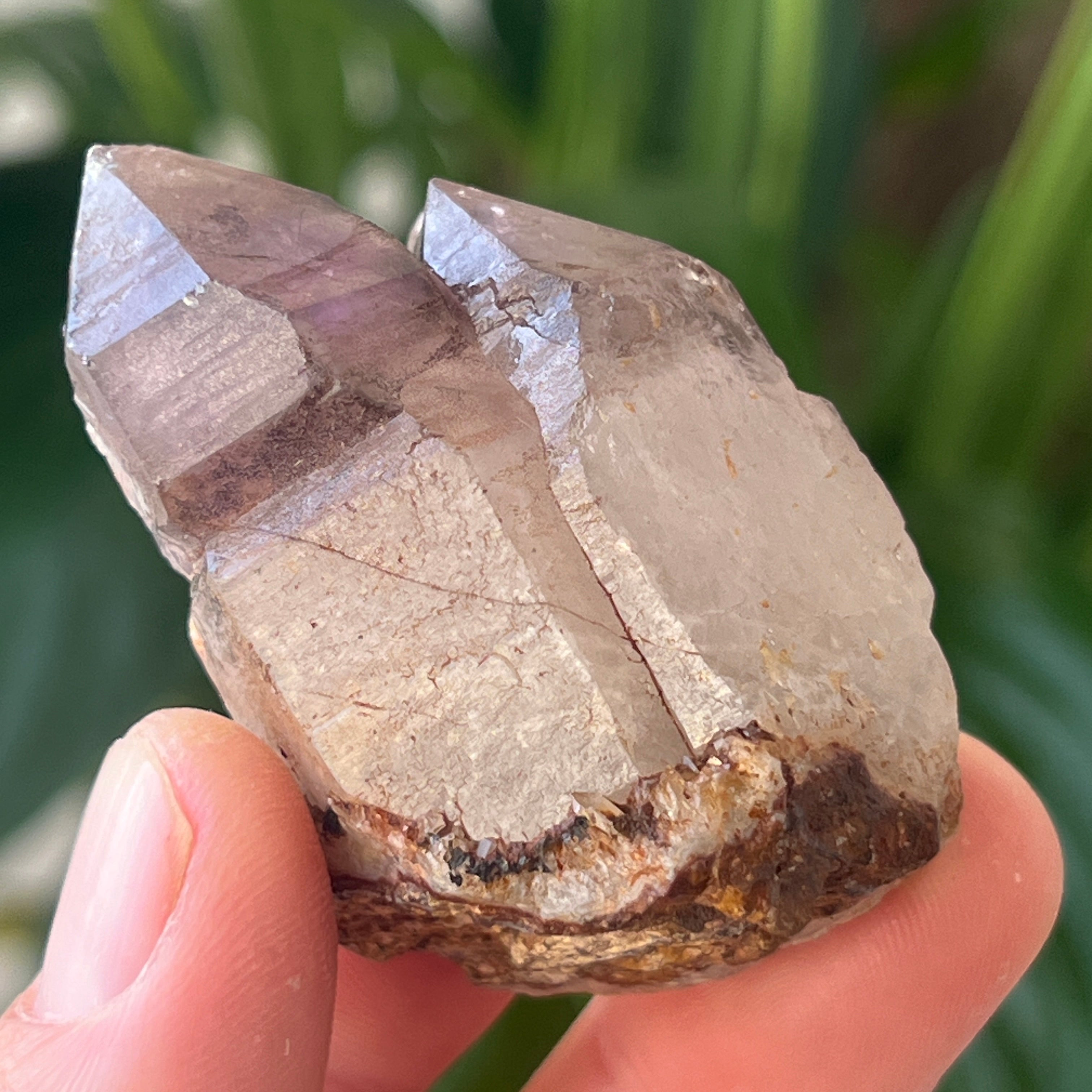 Cristalizând în sistem trigonal, acest specimen de SiO₂ (dioxid de siliciu) se remarcă prin transparența sa excelentă și formele sale naturale, hexagonale. Unele piese includ „fantome” – contururi interne care reflectă etape anterioare de creștere – sau prezintă bule mobile de lichid hidrotermal, hematit ori goethit, toate capturate în interiorul cristalului în urmă cu milioane de ani.