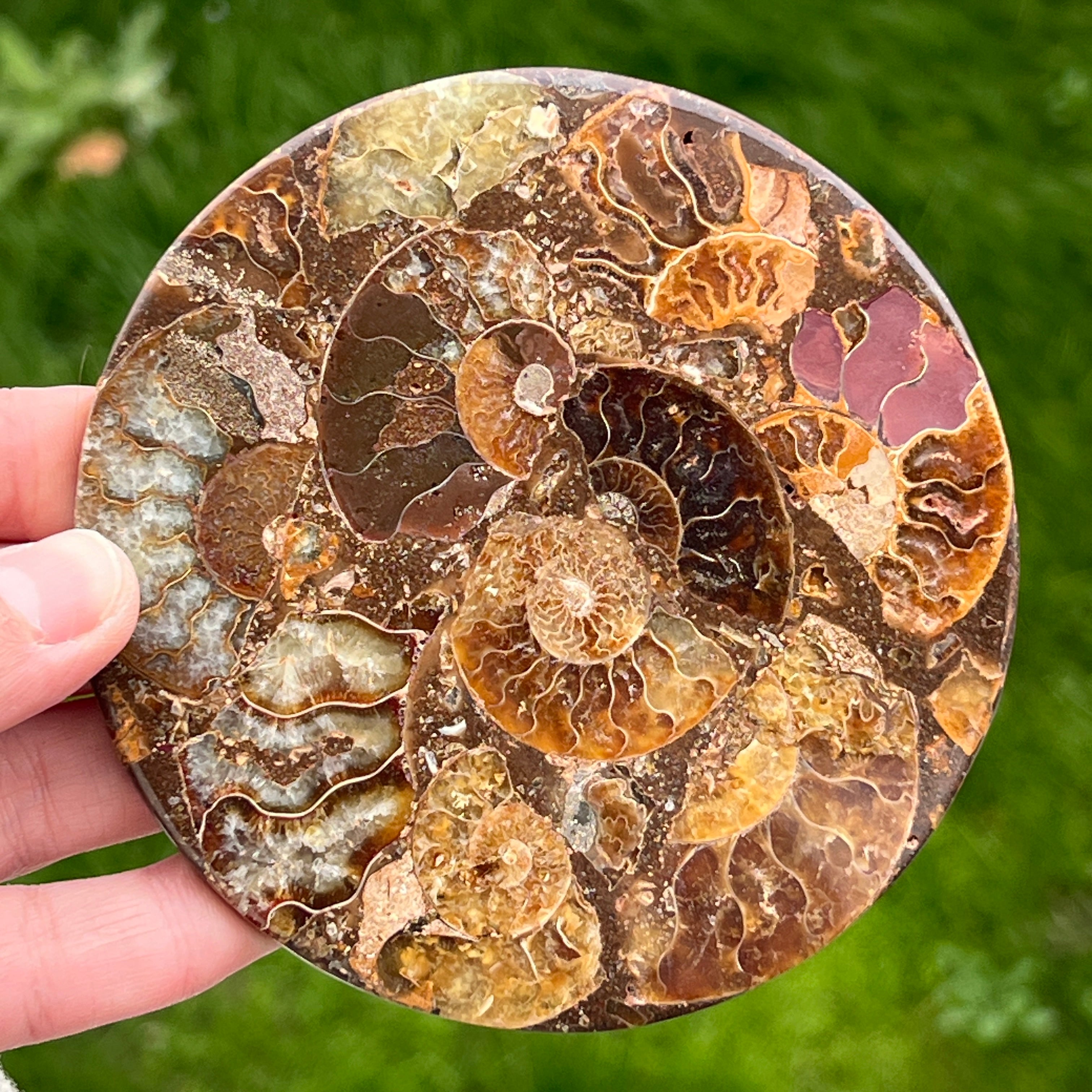 Ammonite fossil crystals are made from authentic ammonite fossils. These fossils can vary in size and decoration, depending on the species and the geological period in which they lived.