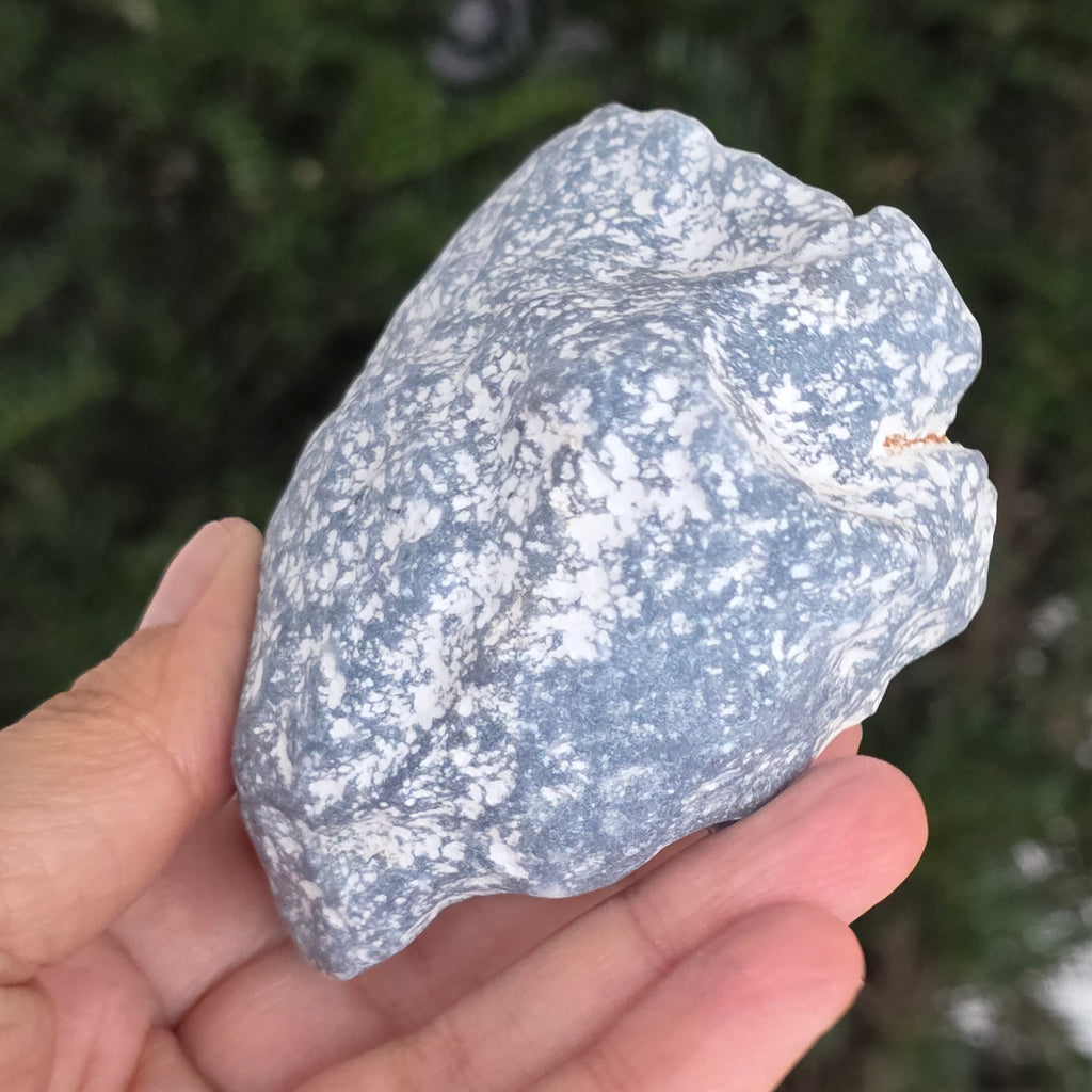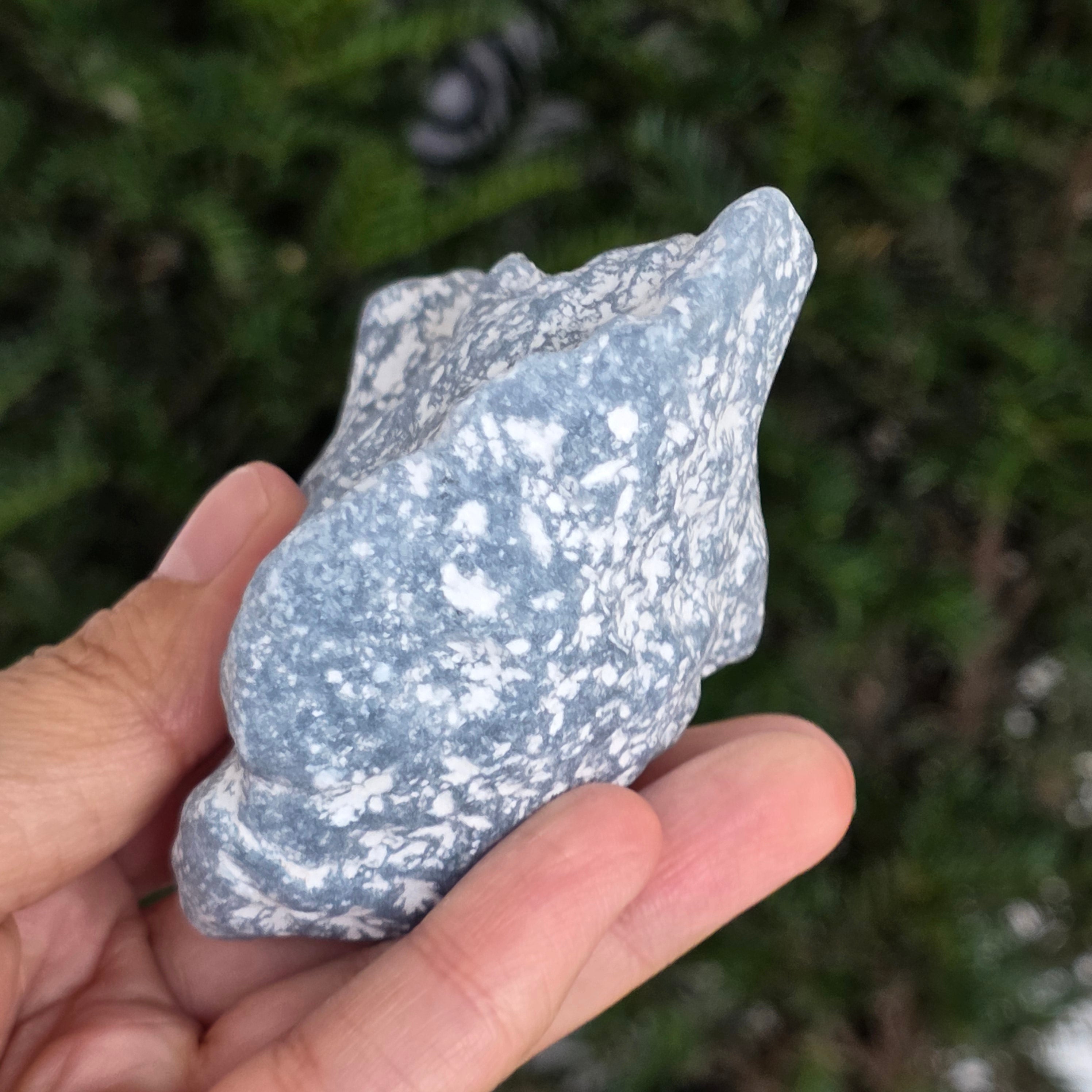 O piatră ce pare desprinsă dintr-un colț de cer. Această piatră brută de angelit natural păstrează forma și textura sa autentică, cu tonuri de albastru deschis, gri sidefat și reflexe subtile de alb. Suprafața mată, catifelată la atingere, emană o energie blândă și calmă, asemenea unui val de liniște care îmbrățișează spațiul.