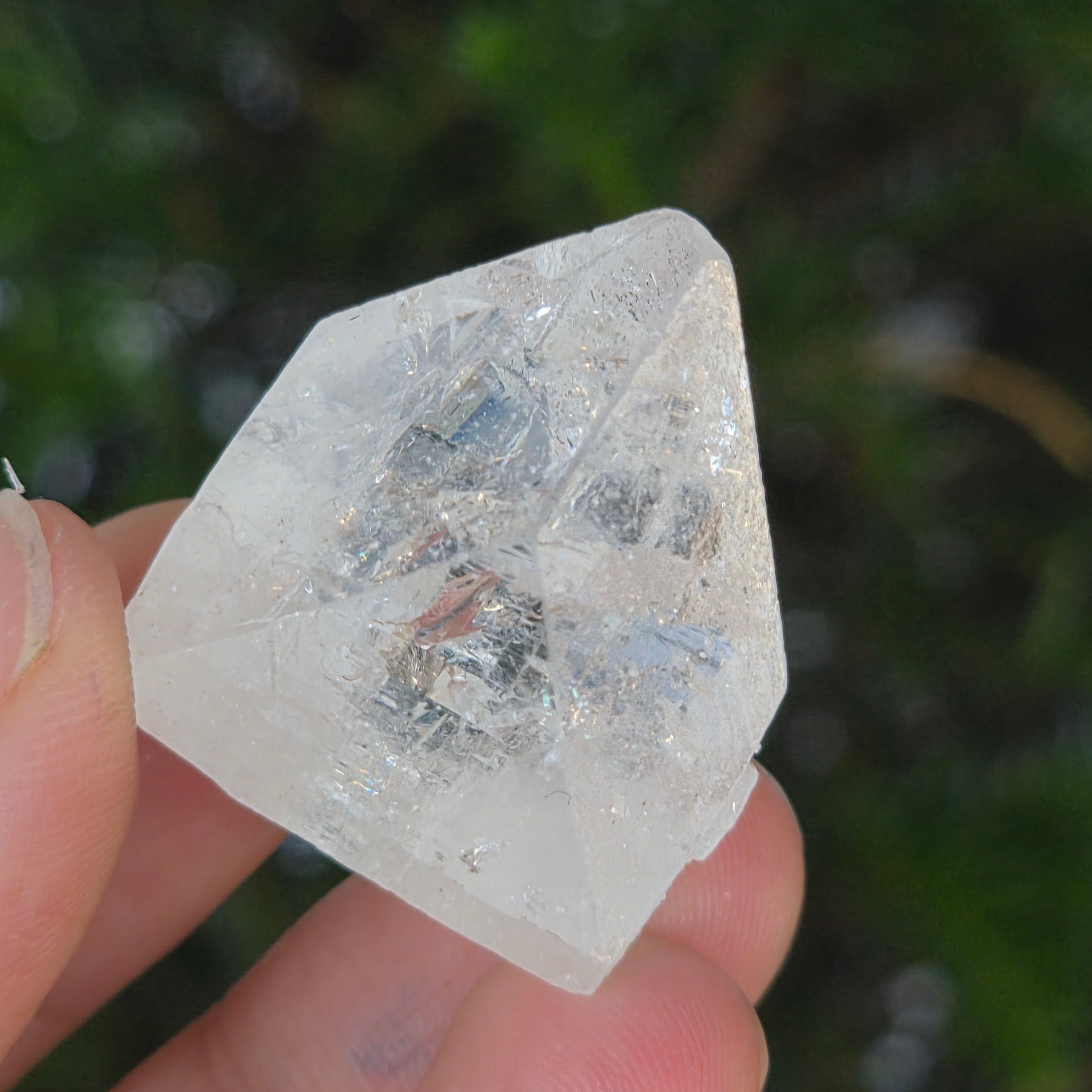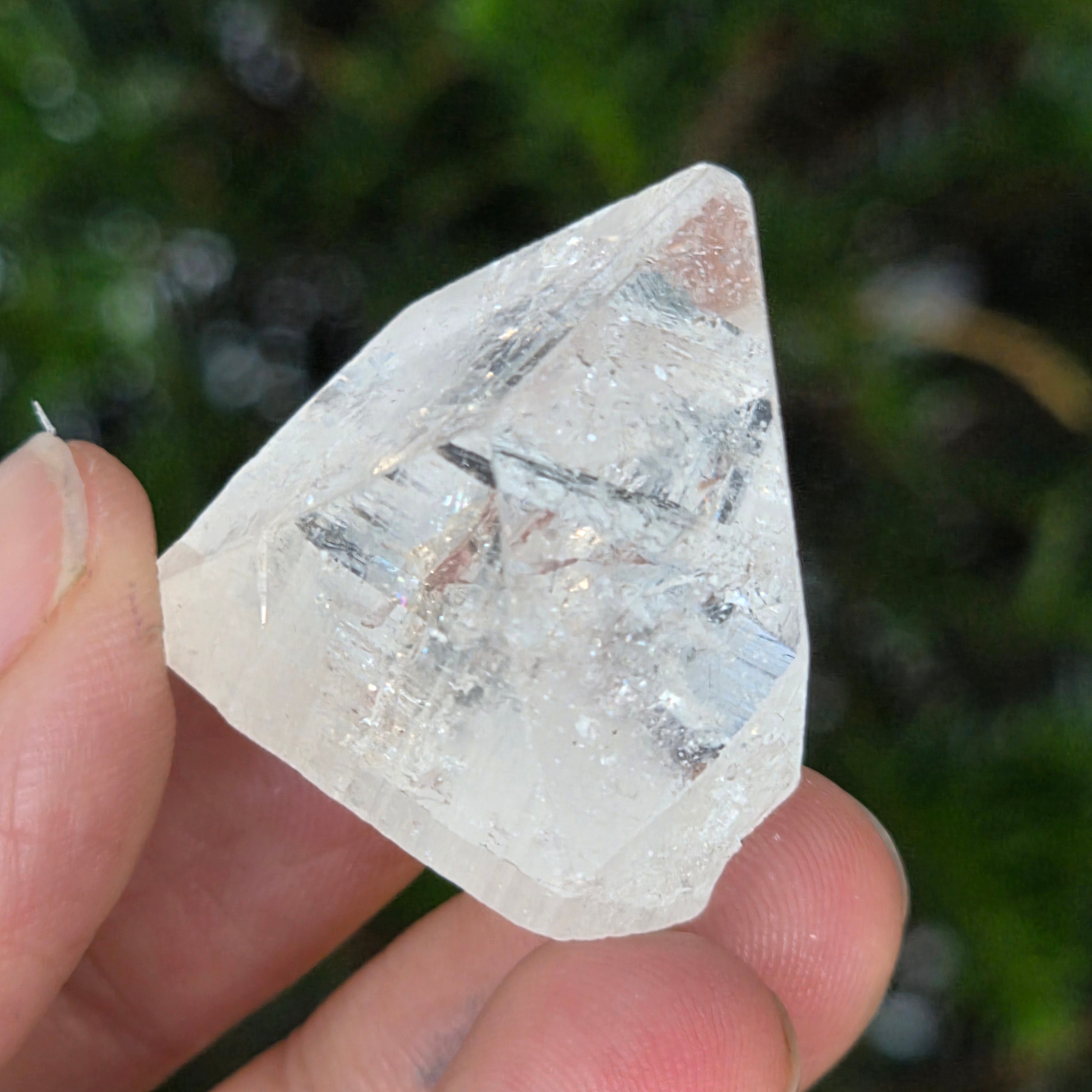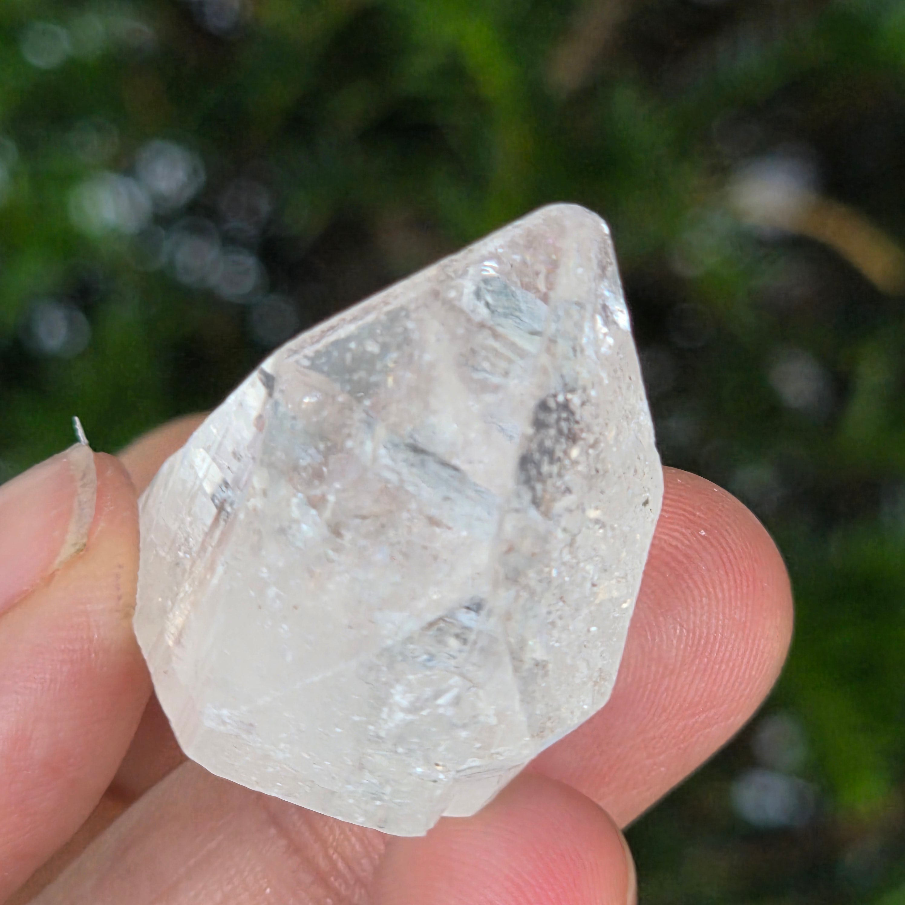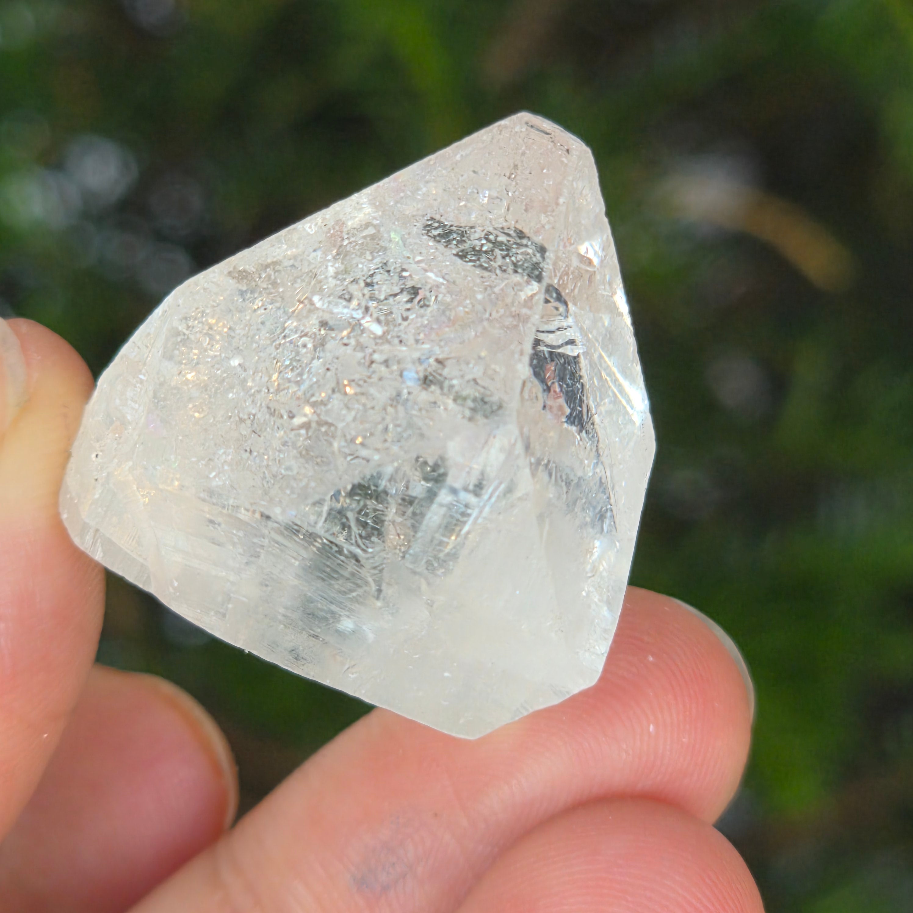 Apophyllite is a mineral of the tectosilicate family, with a main chemical composition of potassium silicate and hydrated calcium. Due to its water content, apophyllite can exhibit remarkable clarity and transparency, and sometimes its surfaces reflect light exceptionally, creating an effect close to mirror.