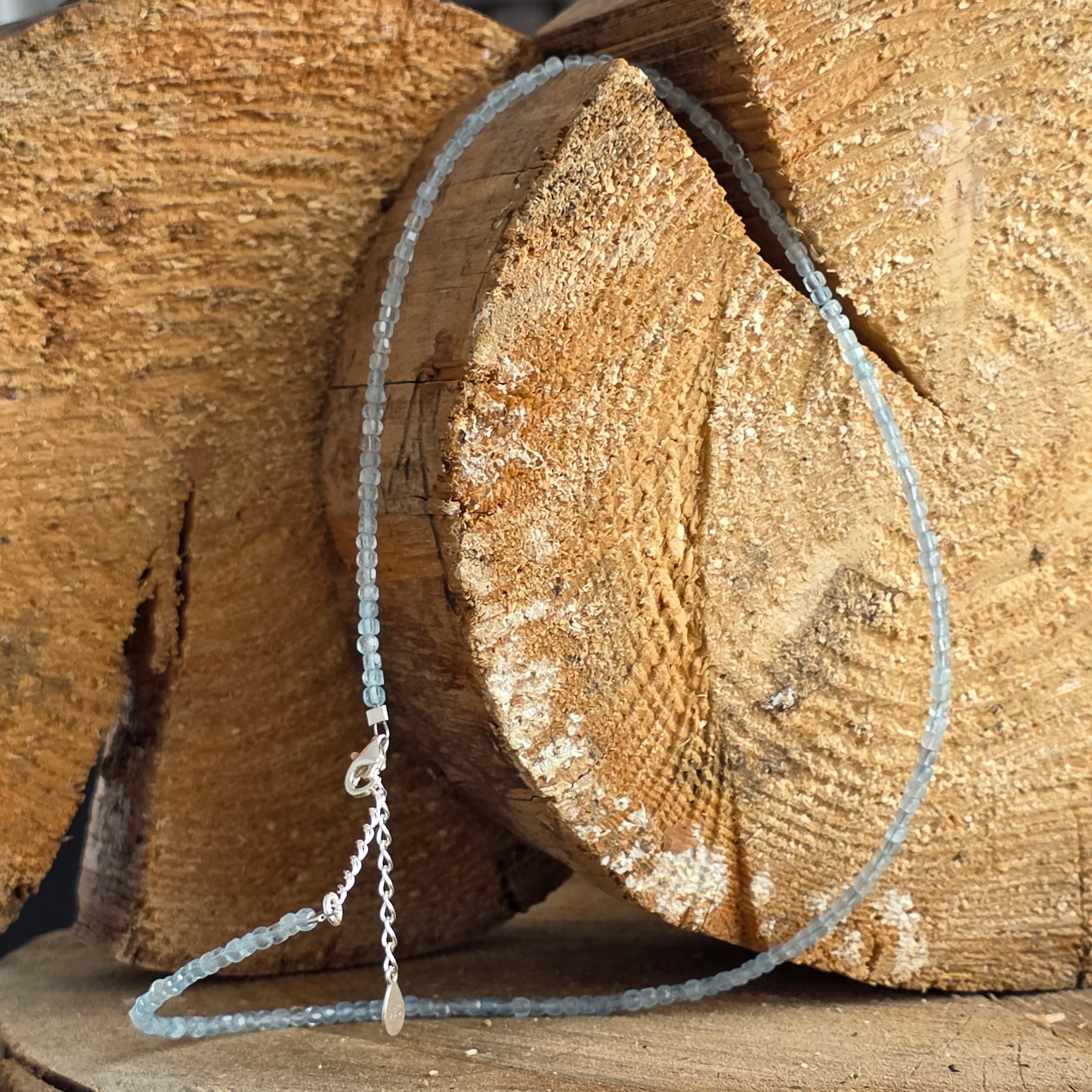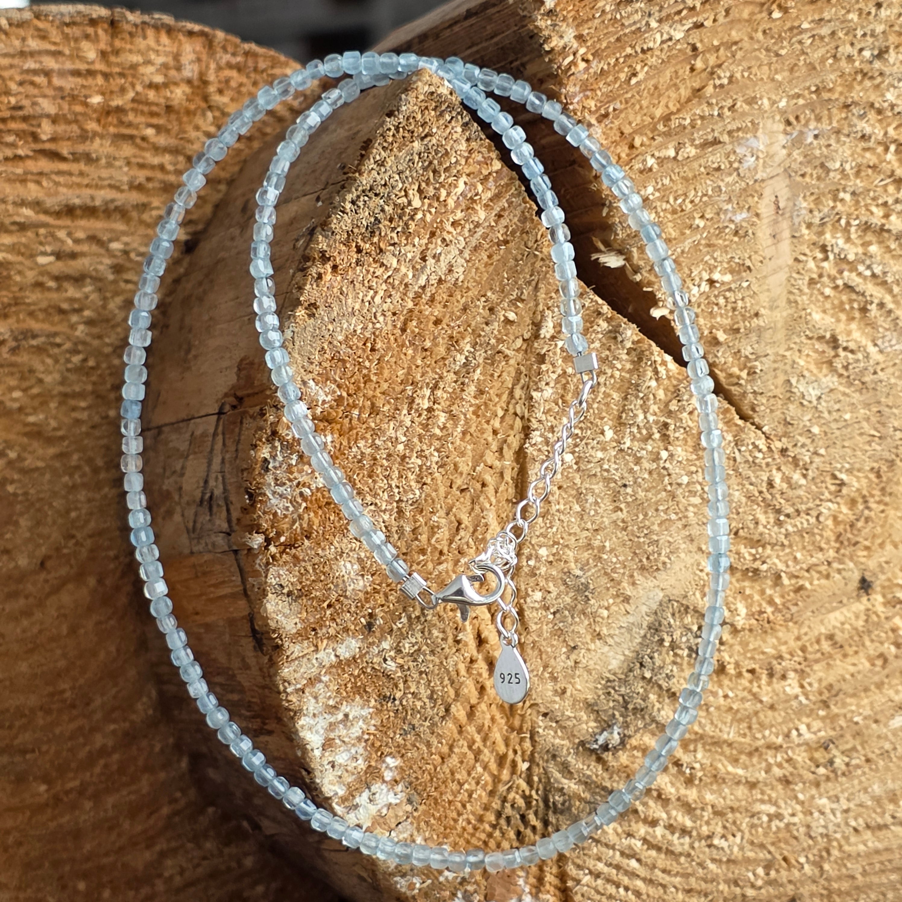 Materials: natural aquamarine cubes 3 mm, 925 silver