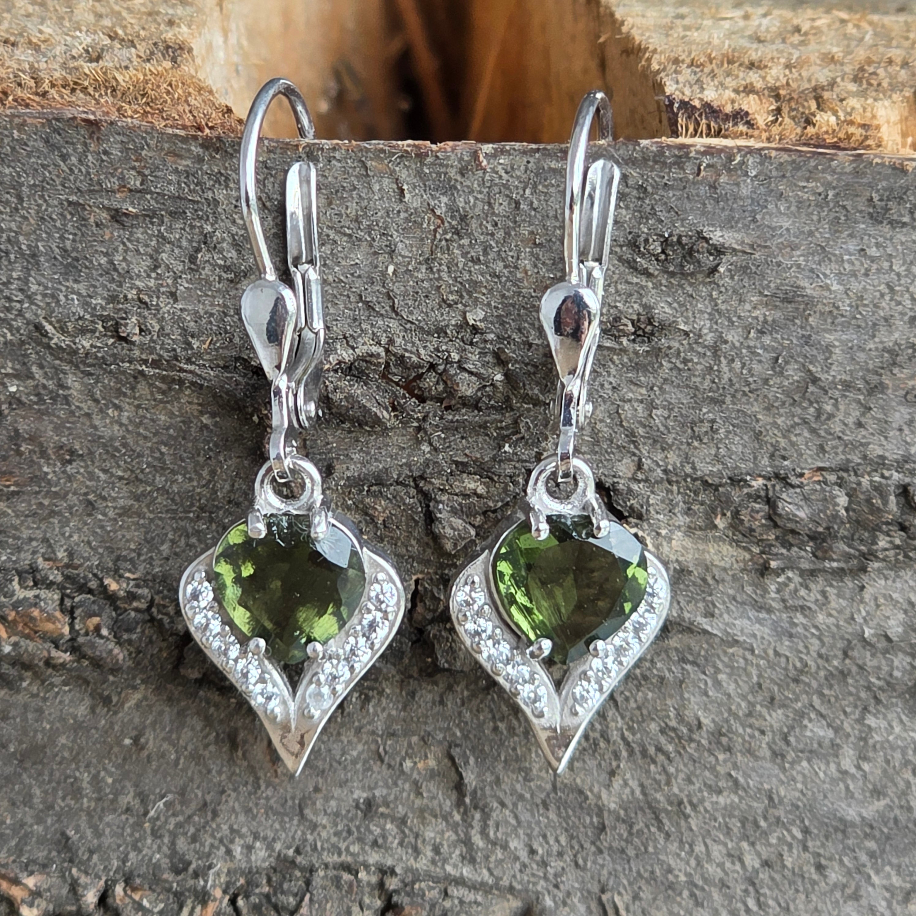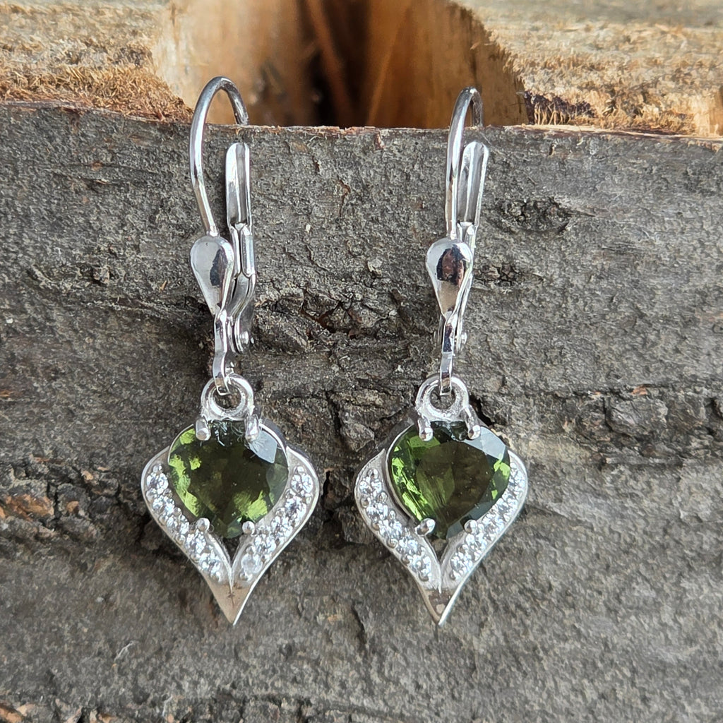 These elegant silver earrings 925 combine the rare beauty of the natural Moldavit, sanded in the form of a heart, with the discreet brilliance of the transparent zircons surrounding it. The "Heart Drop" design adds femininity and grace, turning them into a versatile piece, suitable for both daily and special events.