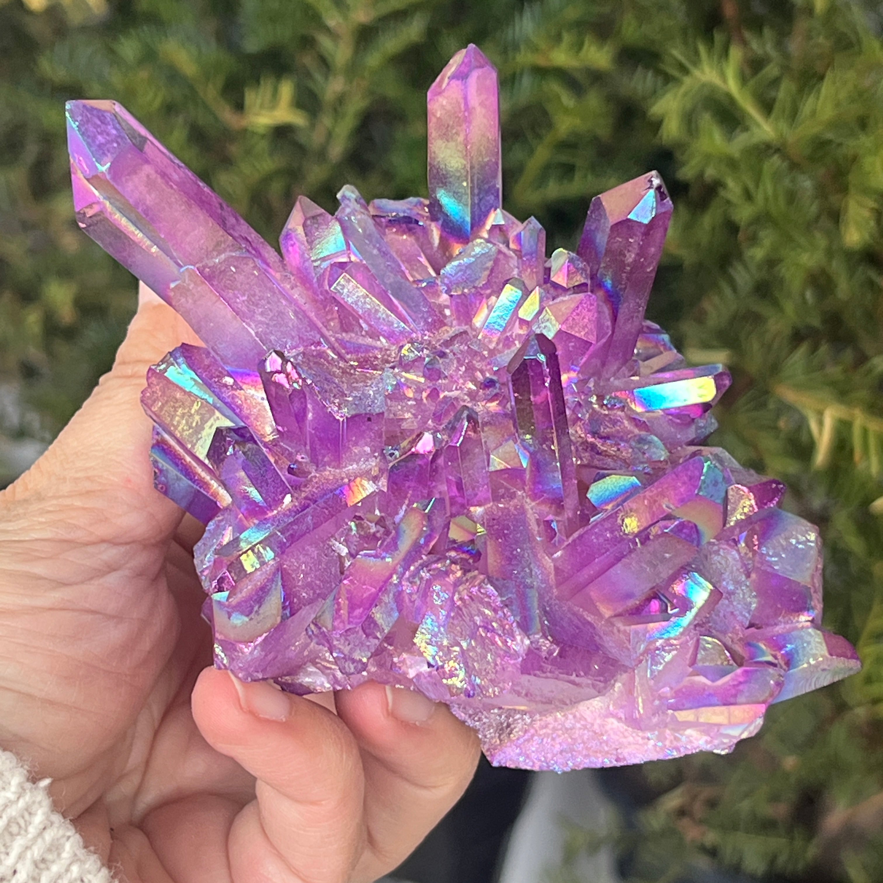 Reviews - Aura Purple Dark colorless quartz cluster | Model 3