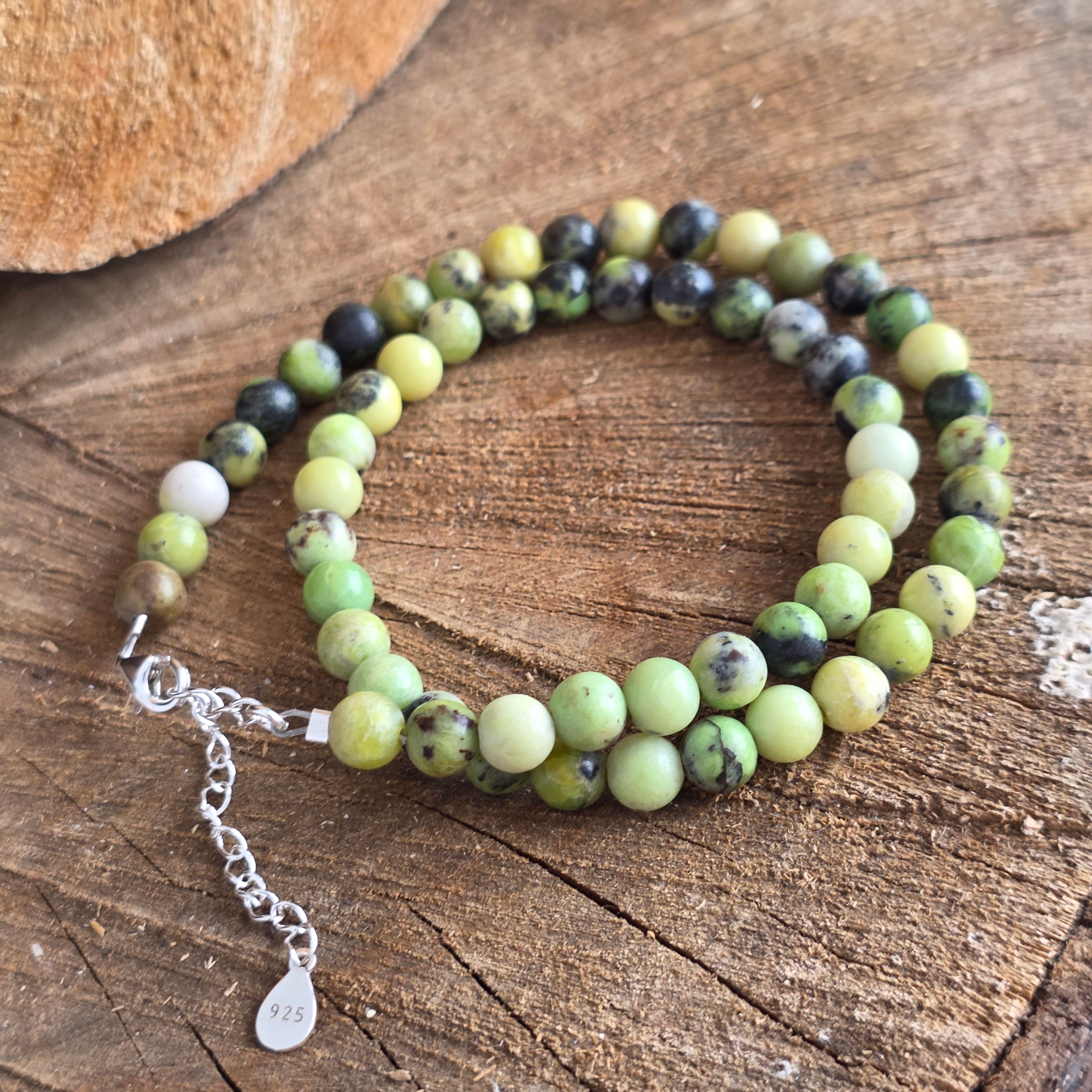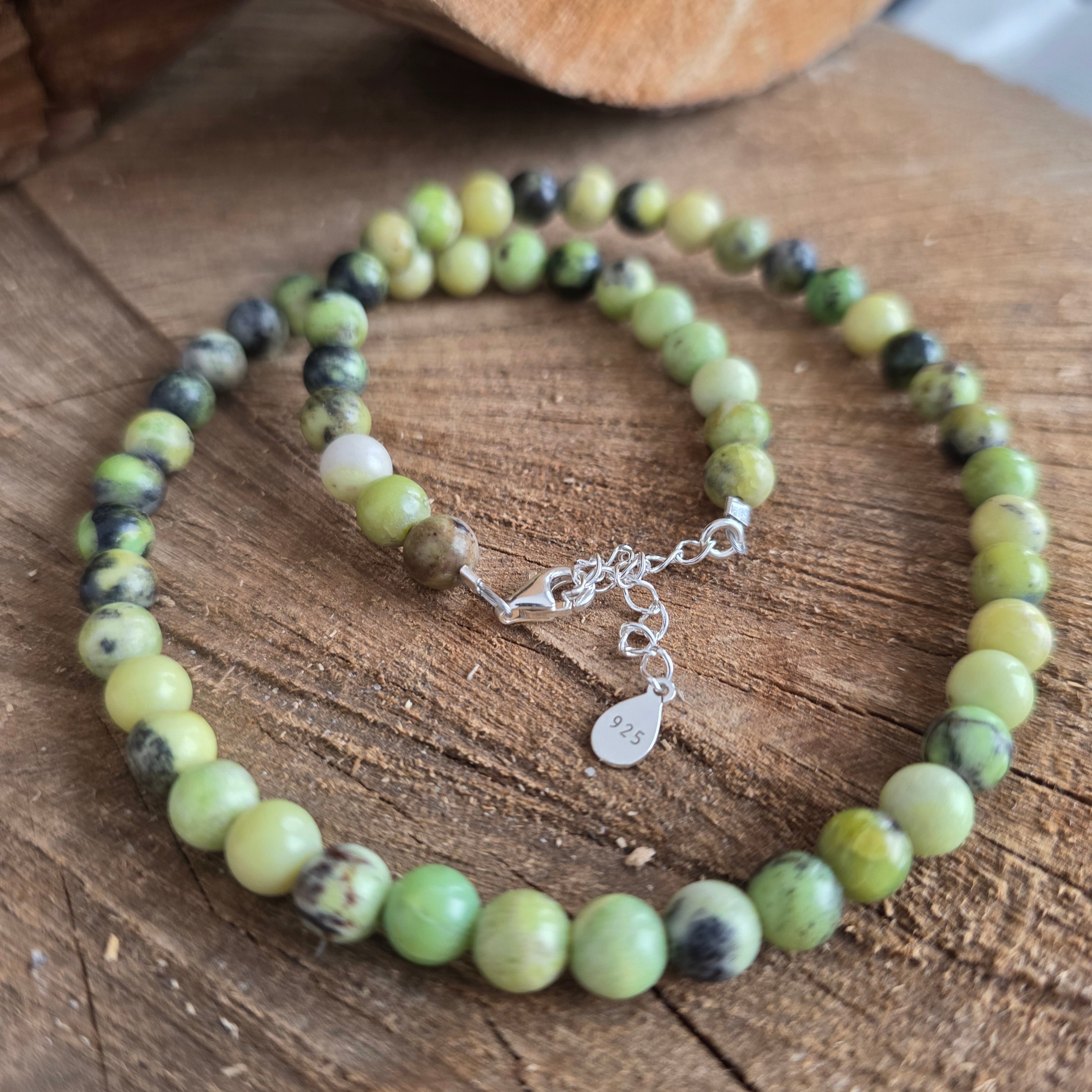 Green jade is associated with the heart chakra – the place of compassion, acceptance, and unconditional love. It brings harmony, luck, and serenity, often worn as a symbol of calm abundance and energetic protection.