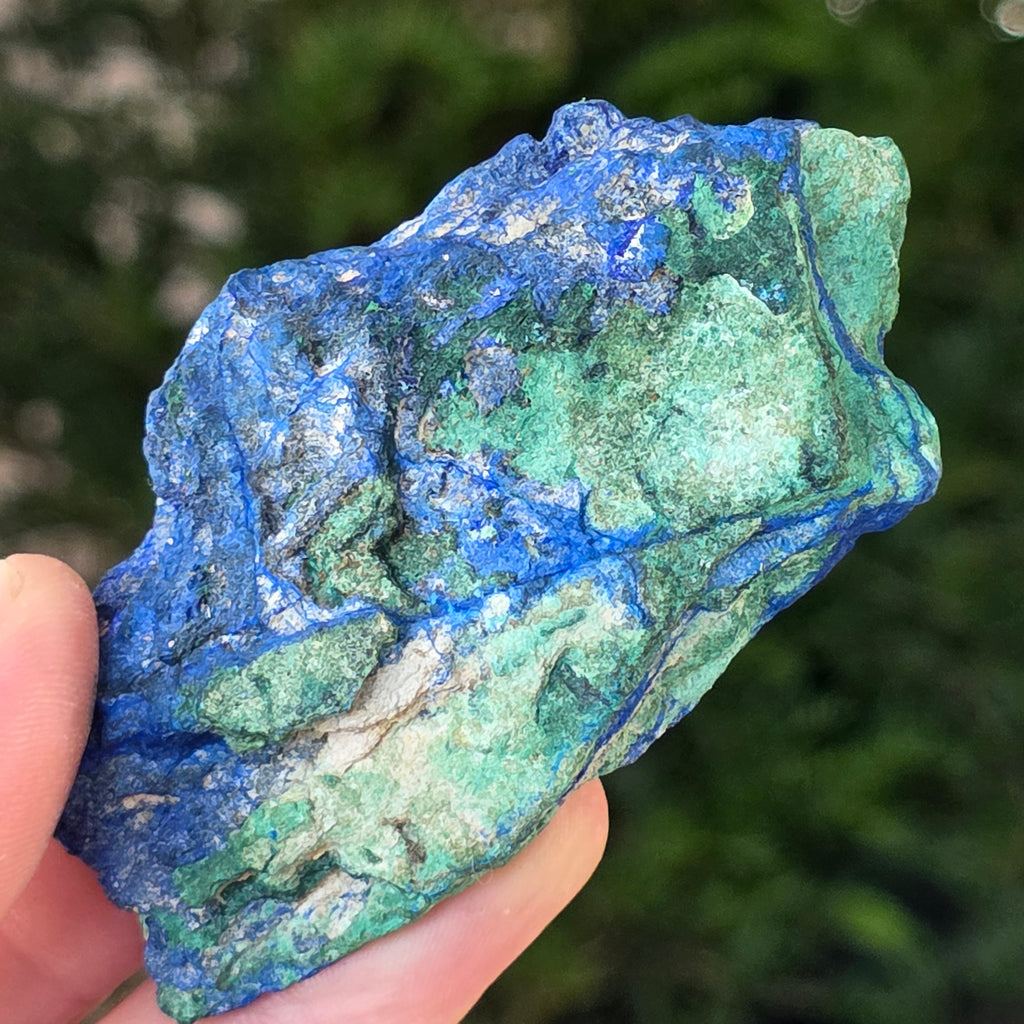Azuritul se formează în principal în zonele de oxidare ale depozitelor de cupru. Procesul de formare implică interacțiunea apei subterane bogate în carbonat cu minereurile de cupru, rezultând în cristalizarea azuritului în fracturile și golurile rocilor. Adesea, azuritul este asociat cu malachitul, o altă minerală de cupru, care are o culoare verde intensă. Cele două minerale se formează în condiții similare și, uneori, se găsesc împreună sub formă de pietre de azurit-malachit.