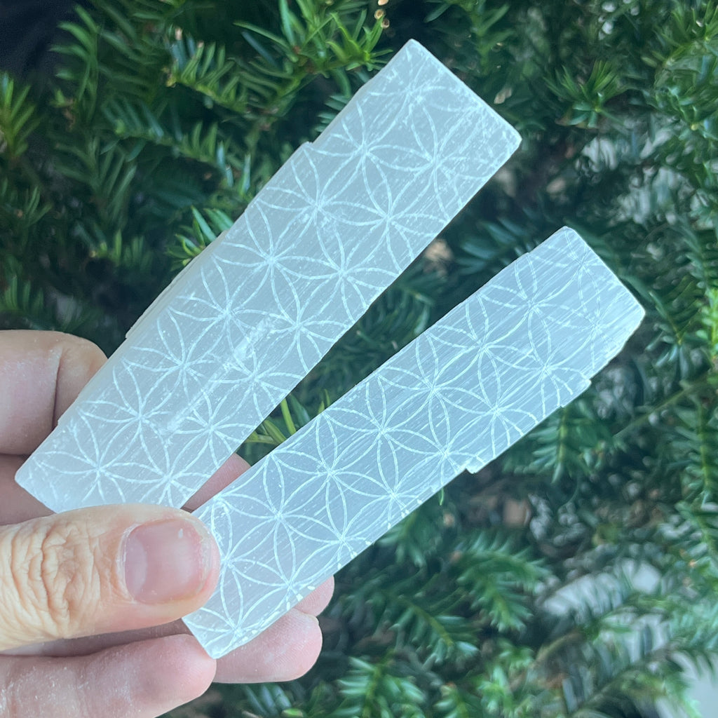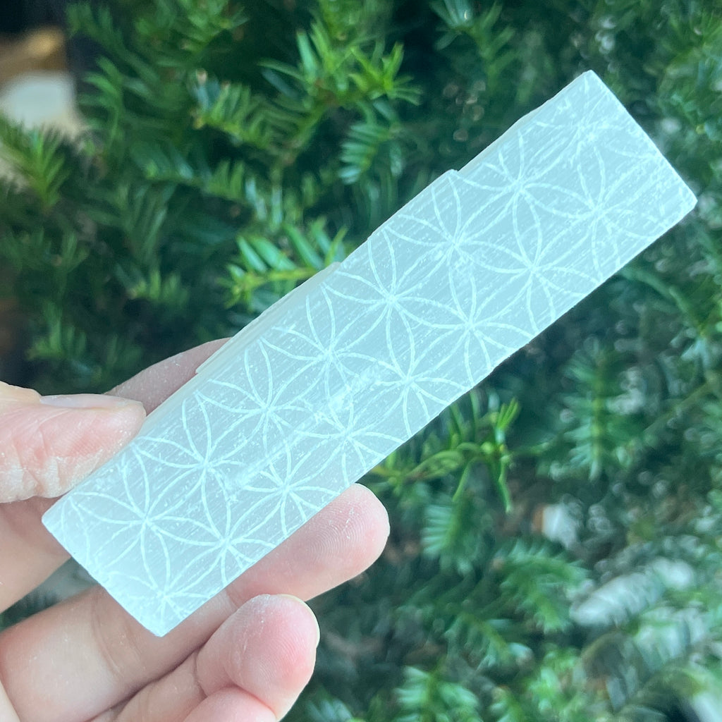 Floarea Vieții este unul dintre cele mai sacre simboluri din geometria universală, reprezentând interconectarea tuturor formelor de viață și energia creației. Gravura sa pe selenit amplifică puterea de curățare și reechilibrare energetică a acestei pietre, transformând fiecare baghetă într-un instrument spiritual unic.
