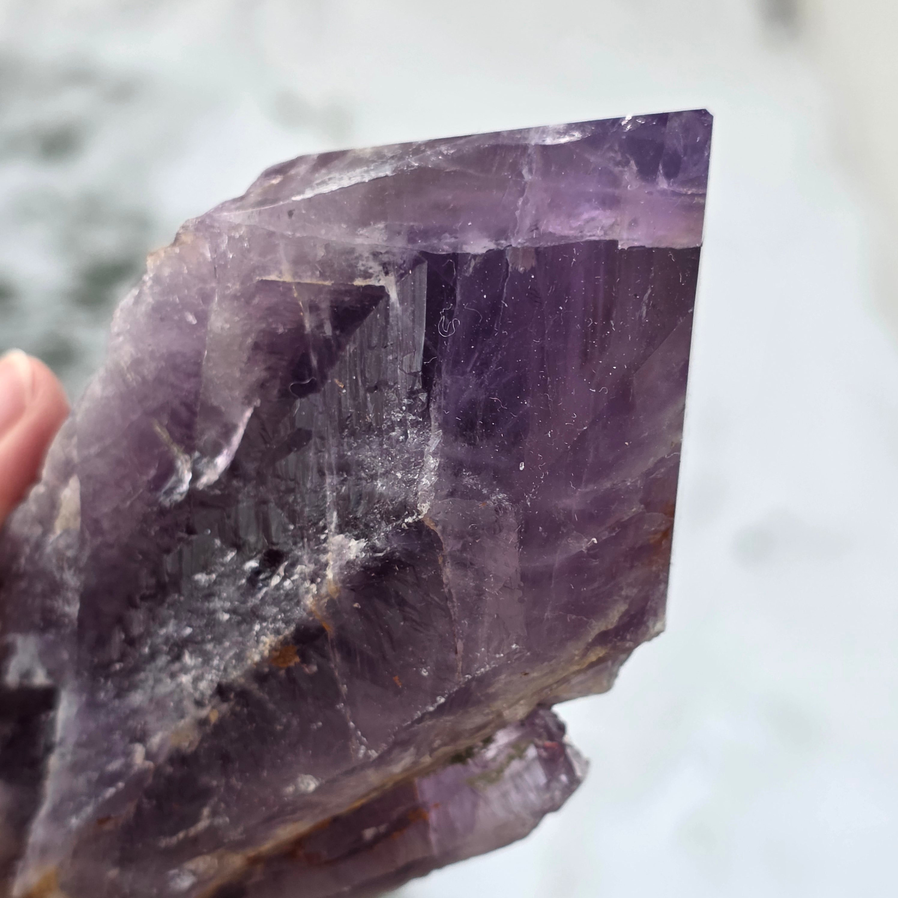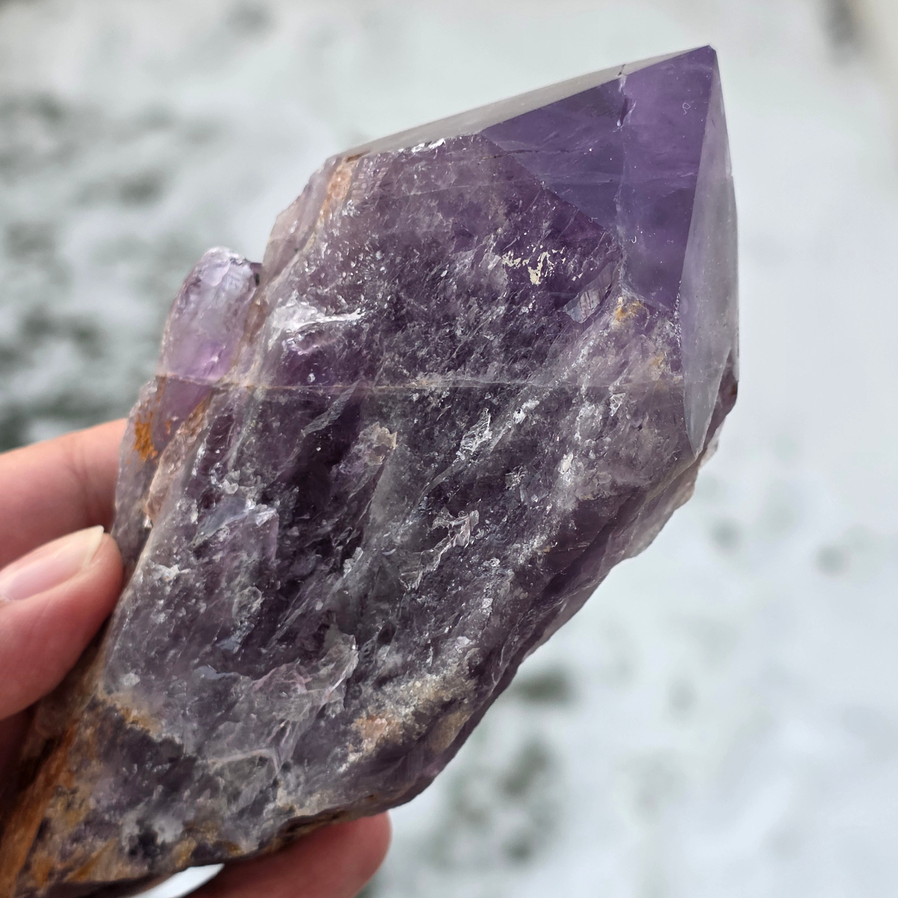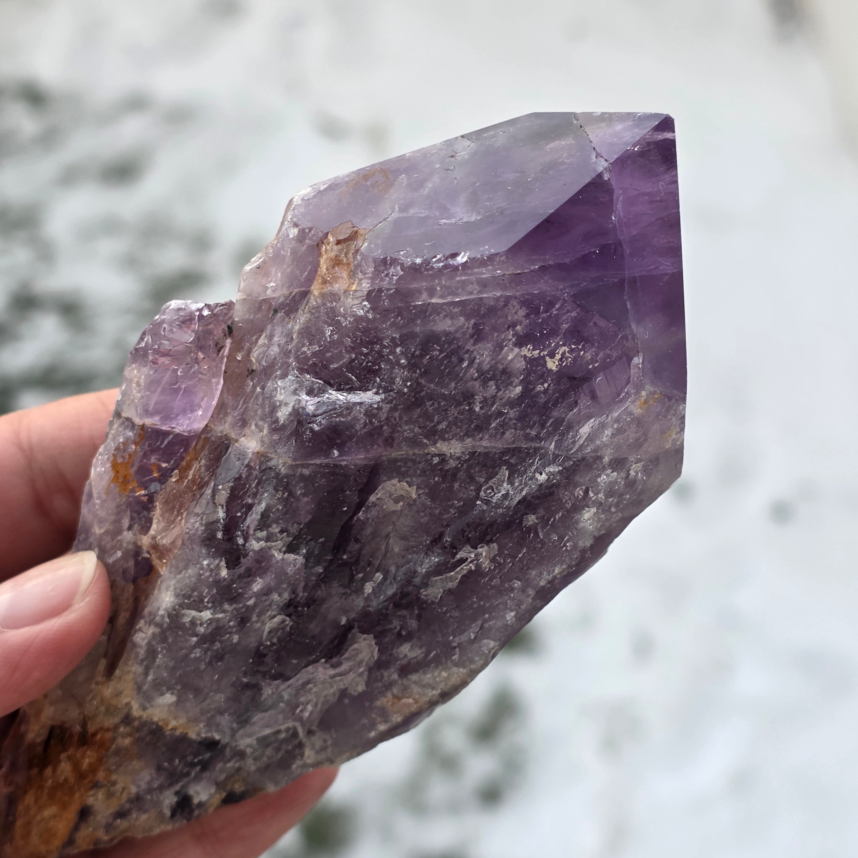Bahia Amethyst, sometimes called "Dragon's Corner", is mined from the Bahia region of Brazil. Each crystal is a unique natural specimen with a well-defined crystalline shape and features keys or protrusions along its entire length. These crystals are not detached from a larger group, but are formed individually, one by one.