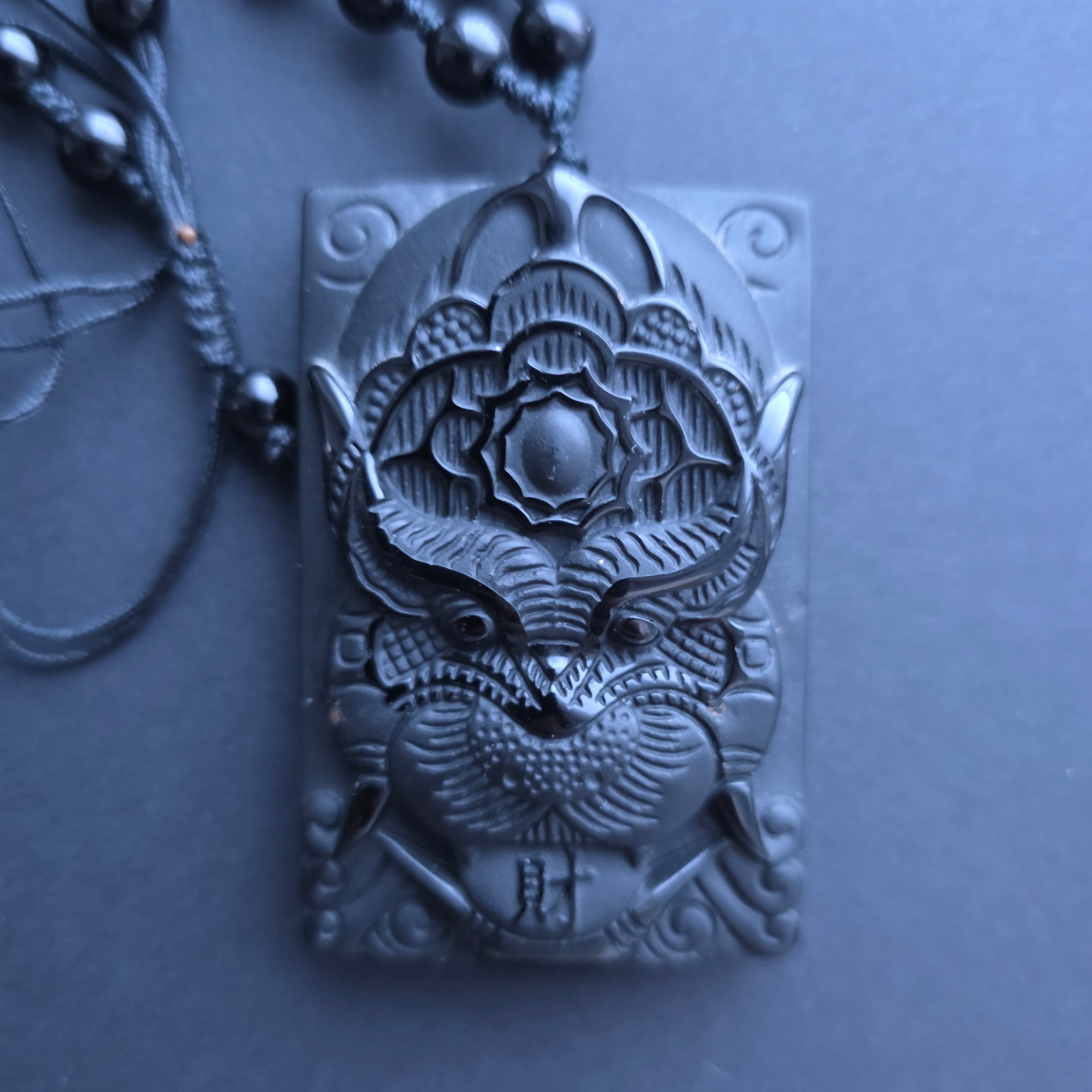 Reviews- Black obsidian amulet necklace | Dragon