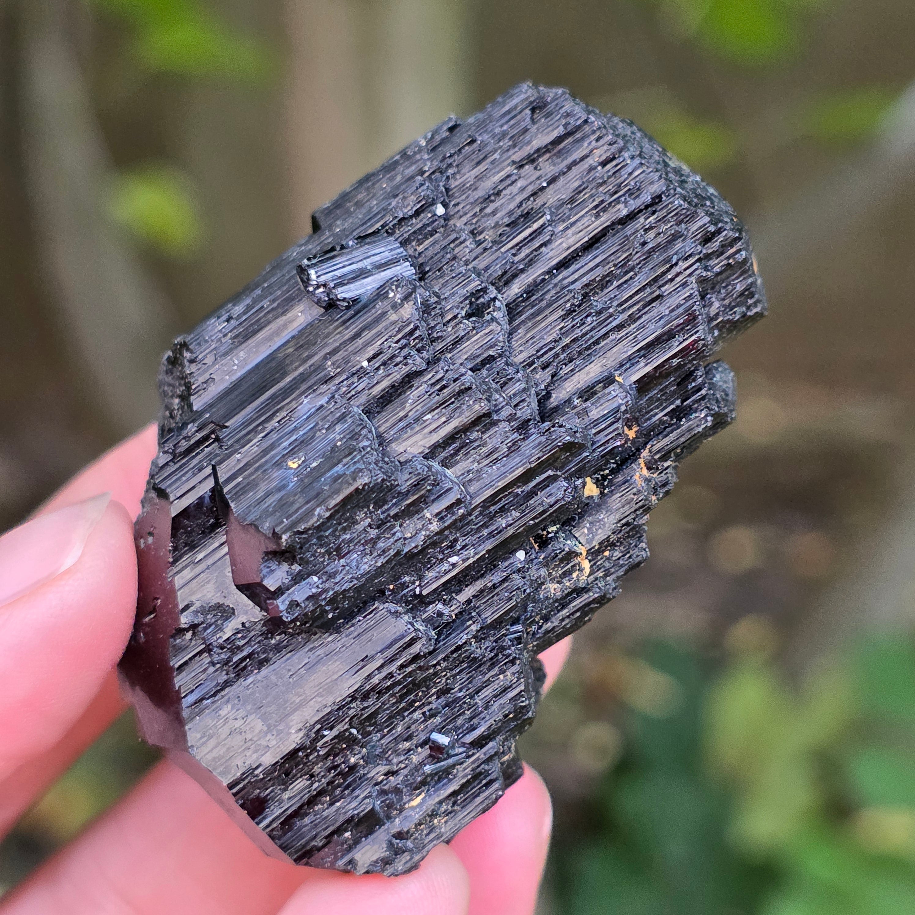 Black tourmaline, also known as Schorl, is made up of a complex mixture of borosilica and is found in a variety of crystalline forms. It is a very hard mineral and has a great resistance to scratches and wear.