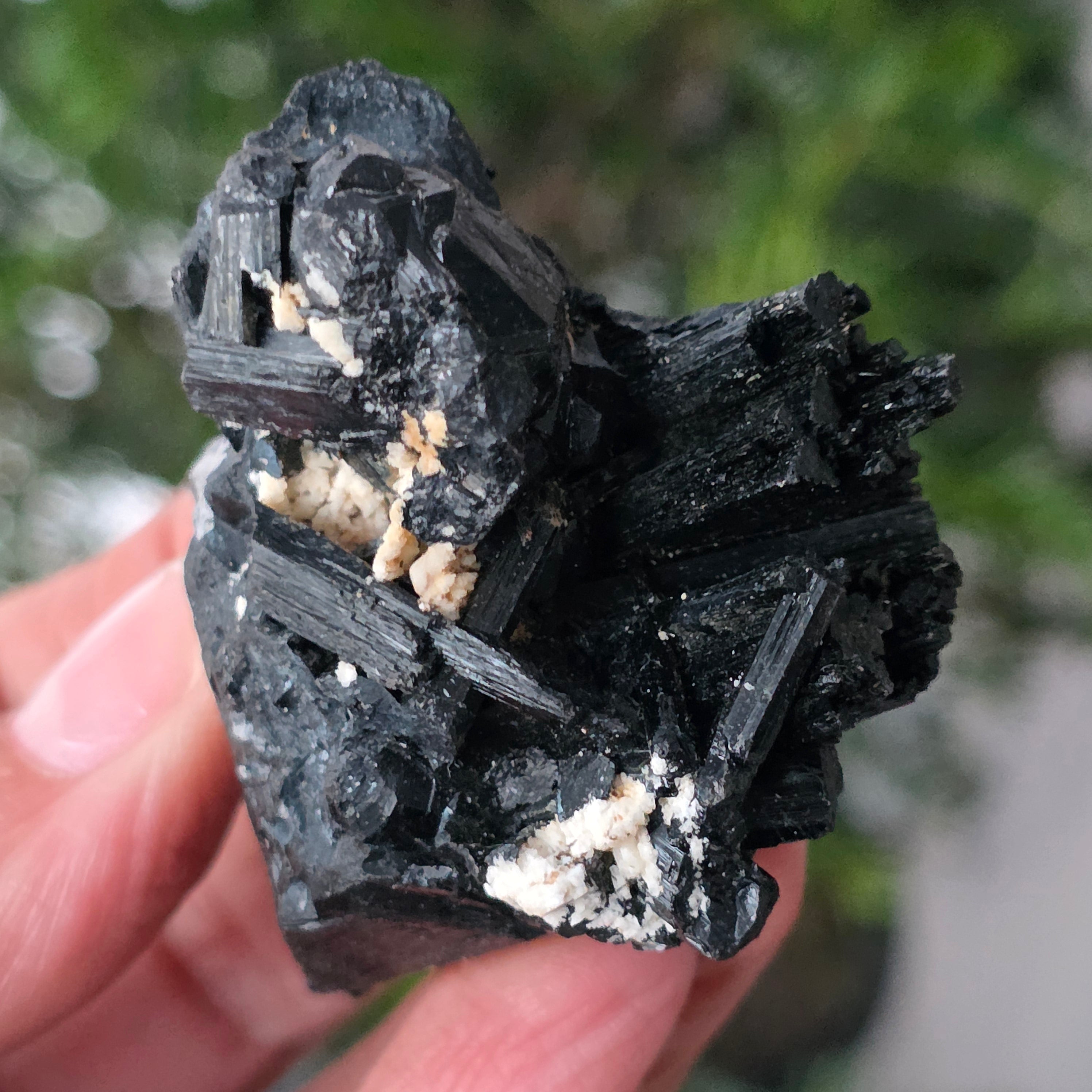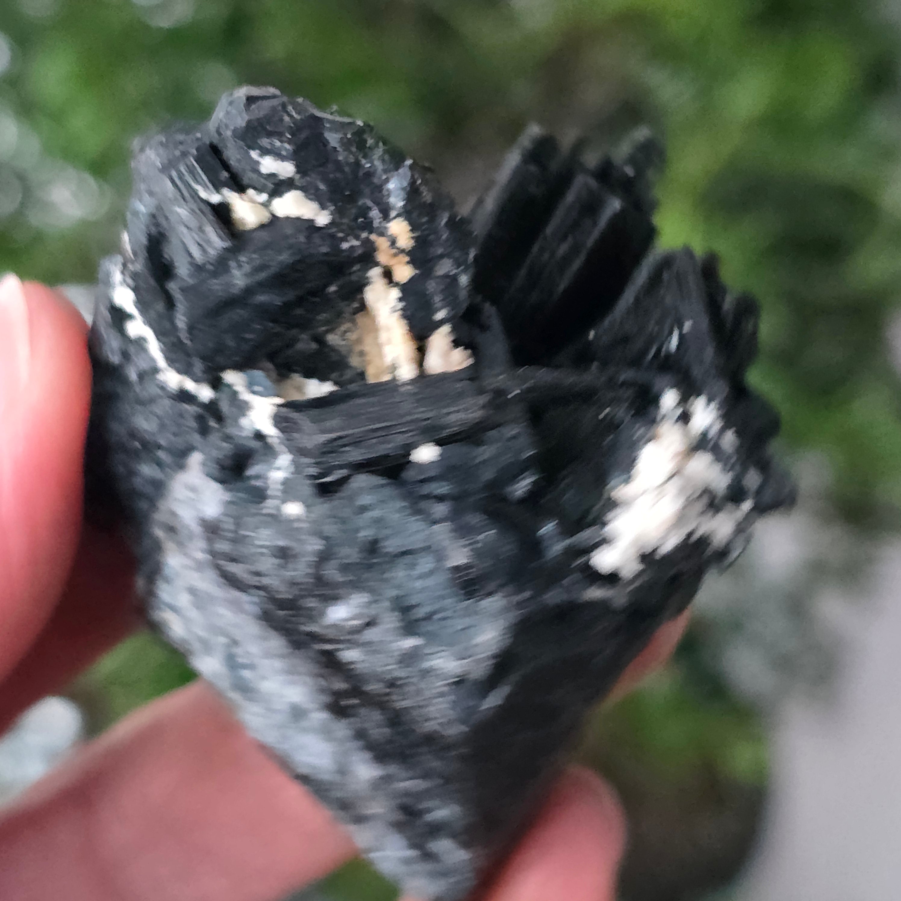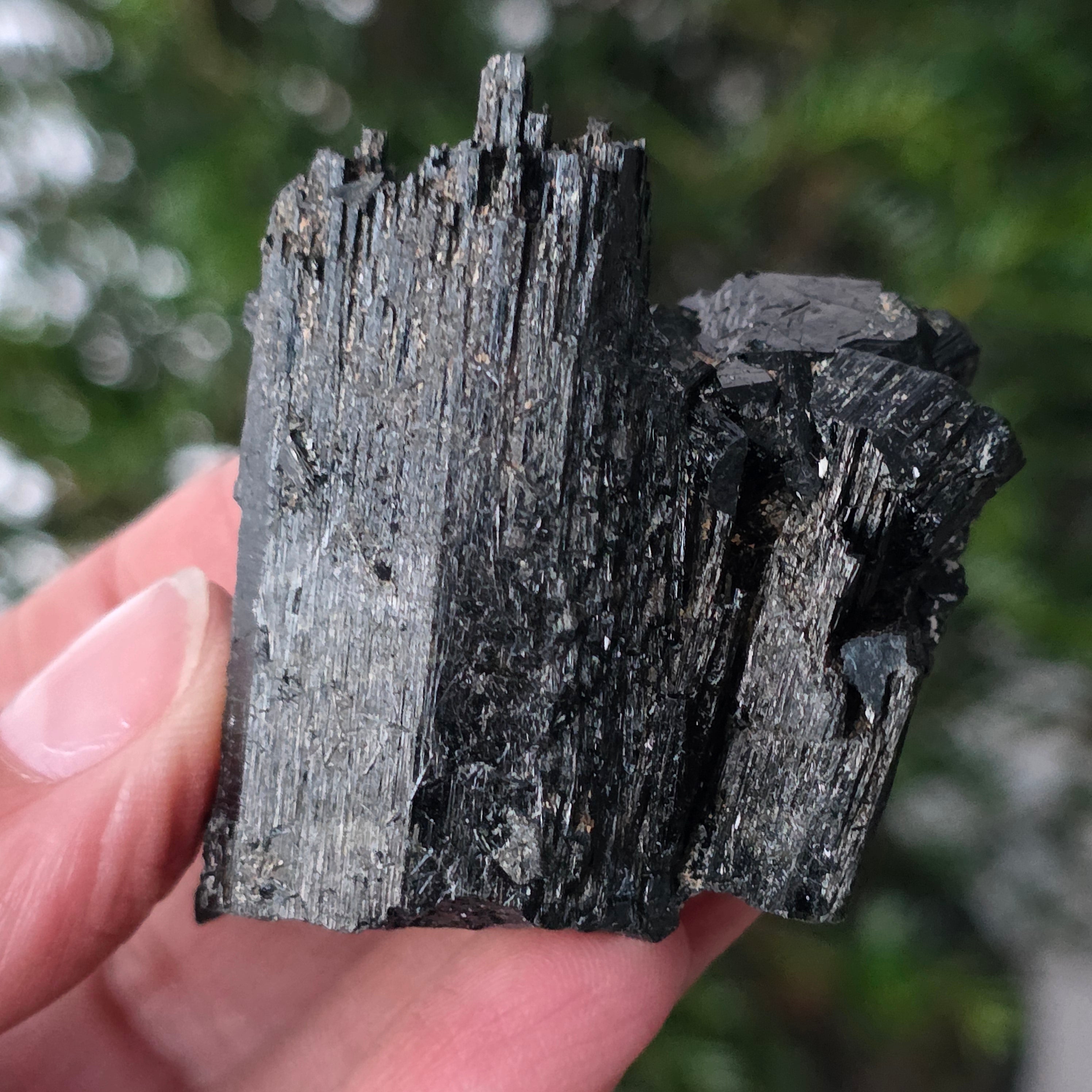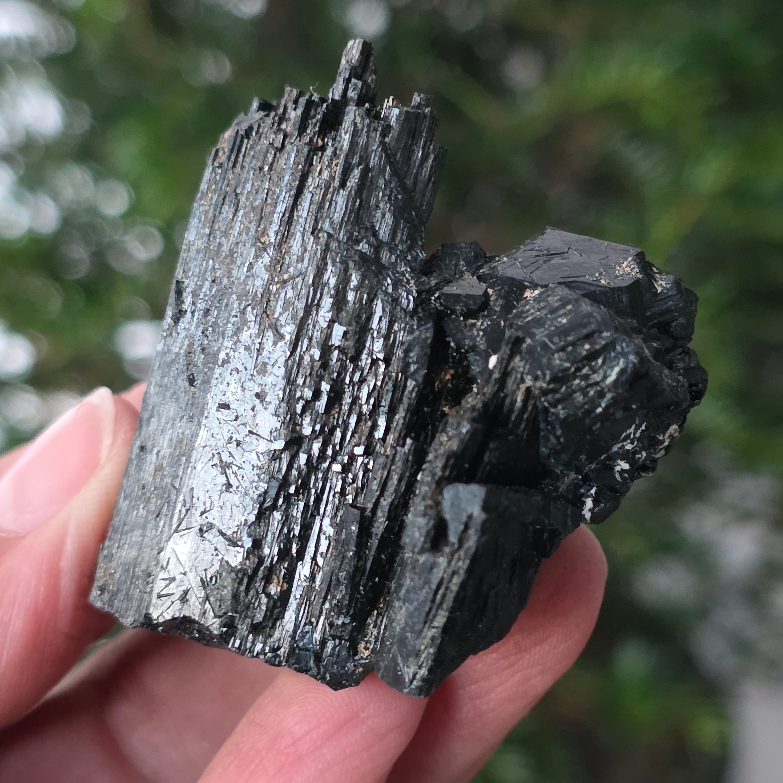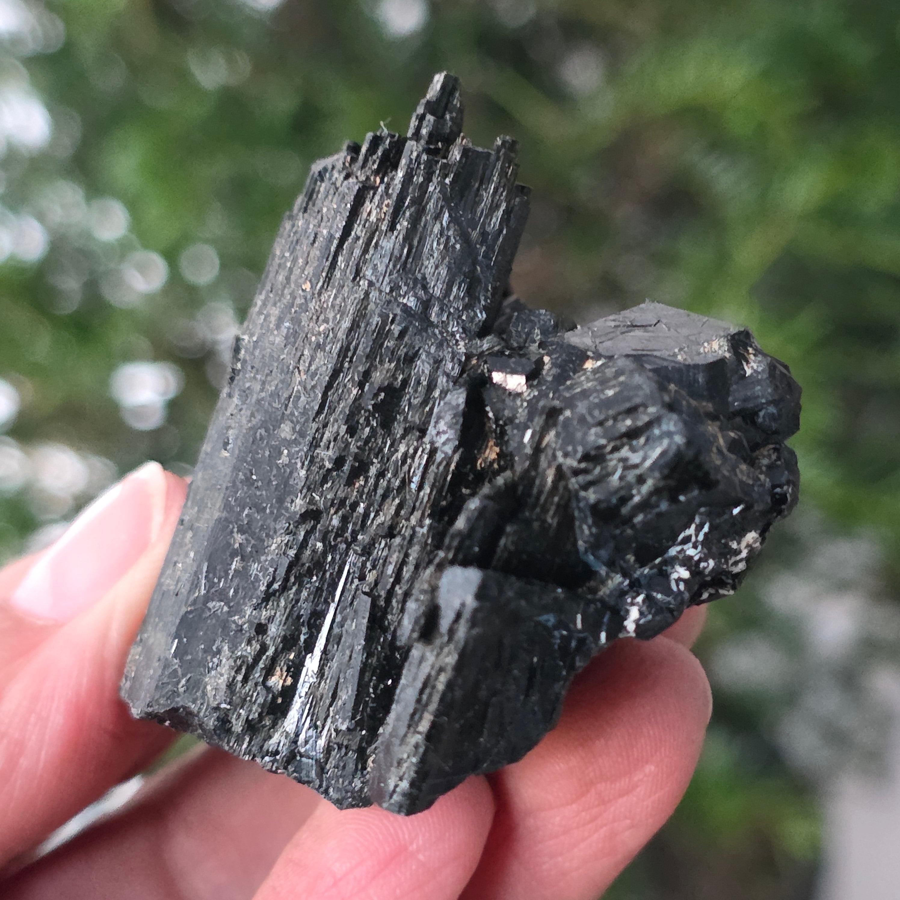 Black tourmaline, also known as schorl, is made up of a complex mixture of borosilicates and is found in a variety of crystalline forms. It is a very hard mineral and has great resistance to scratches and wear.