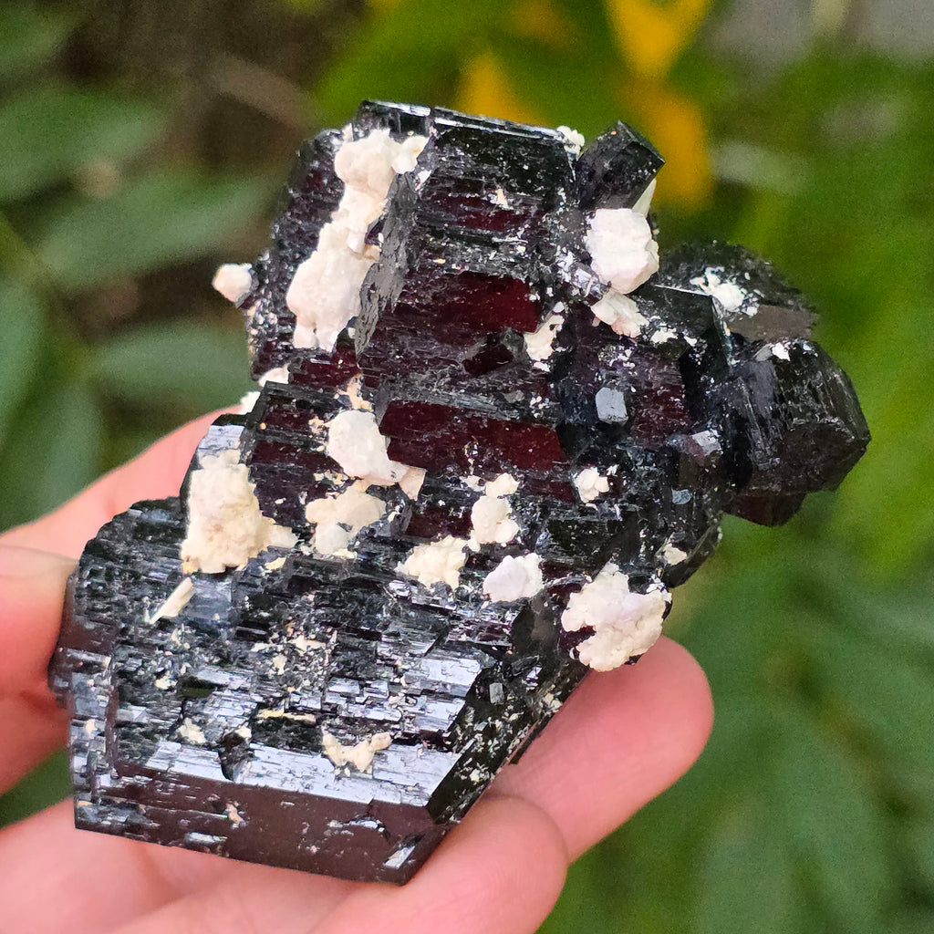 Black tourmaline, also known as Schorl, is made up of a complex mixture of borosilica and is found in a variety of crystalline forms. It is a very hard mineral and has a great resistance to scratches and wear.