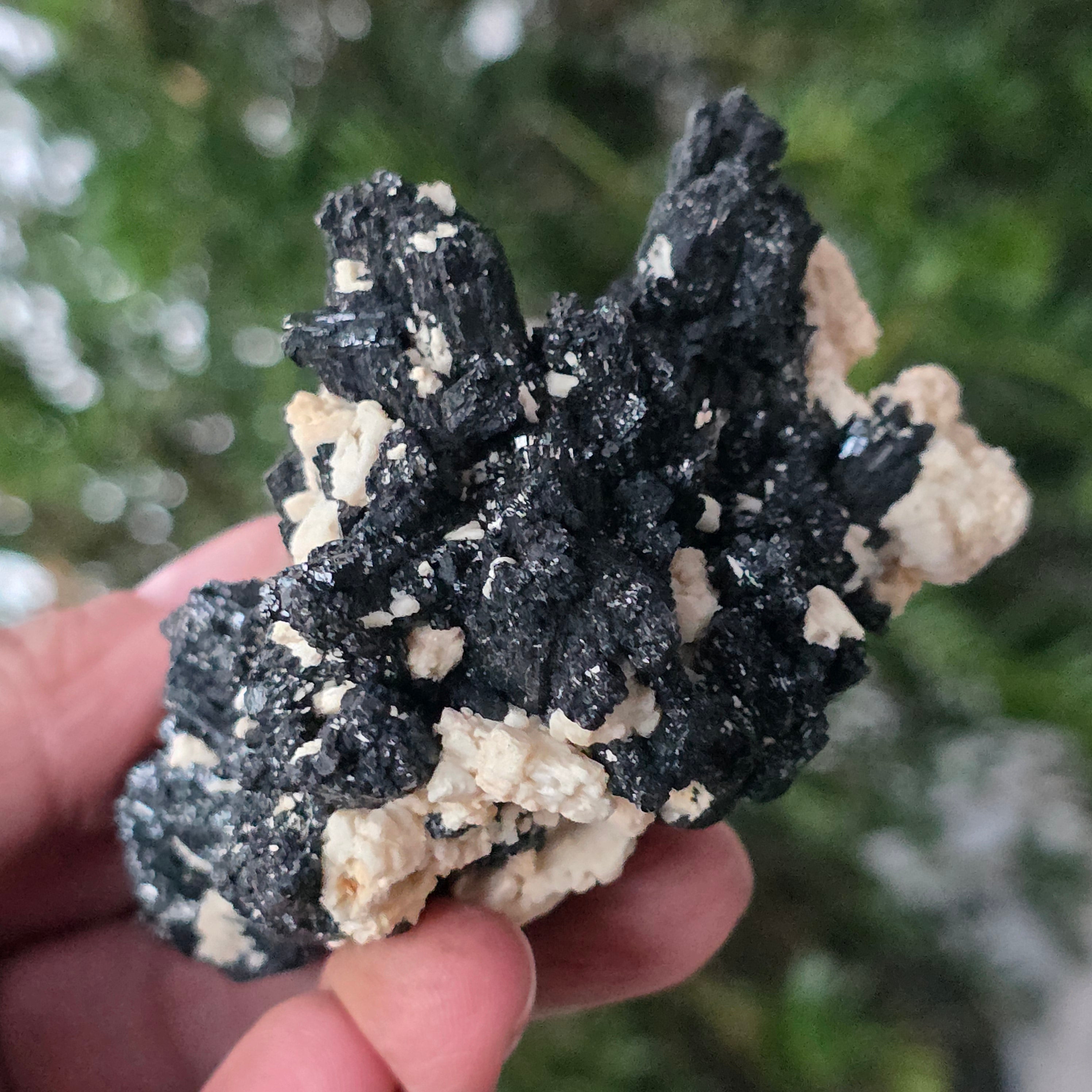 Black tourmaline, also known as schorl, is made up of a complex mixture of borosilicates and is found in a variety of crystalline forms. It is a very hard mineral and has a high resistance to scratches and wear.