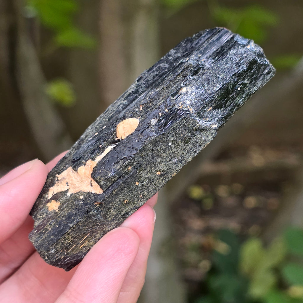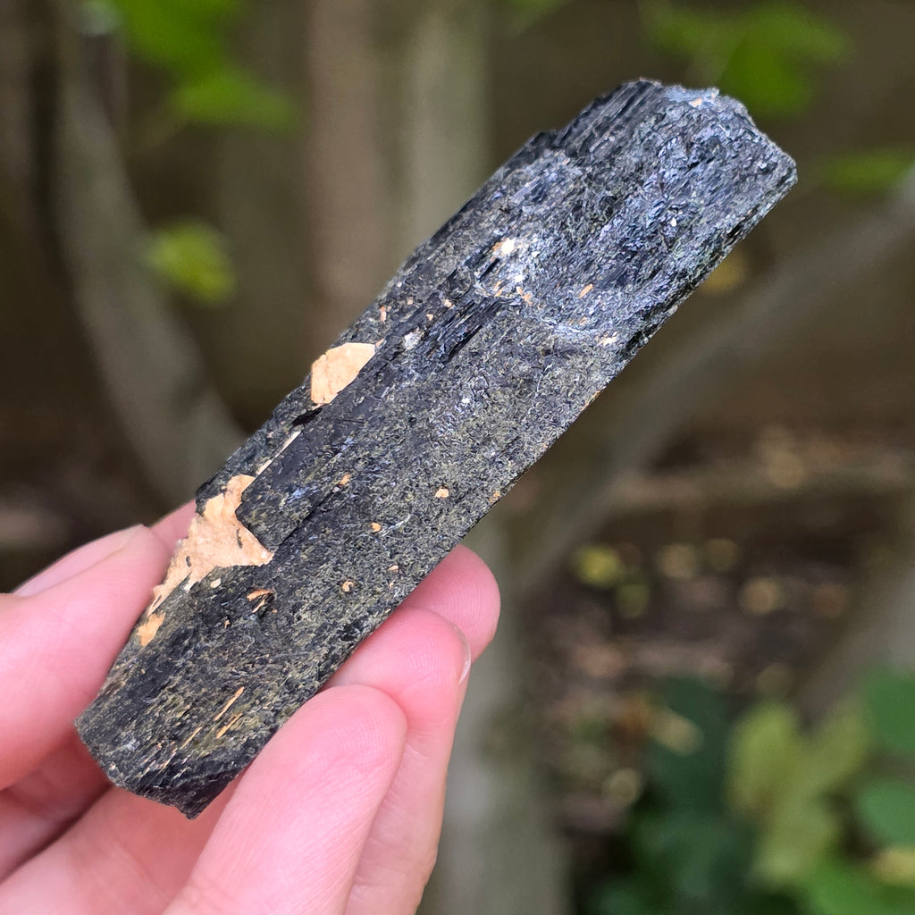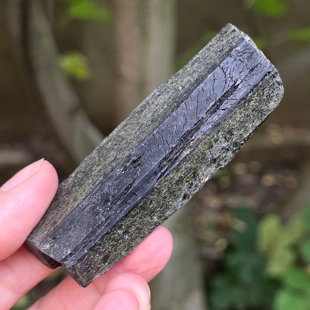 Black tourmaline, also known as Schorl, is made up of a complex mixture of borosilica and is found in a variety of crystalline forms. It is a very hard mineral and has a great resistance to scratches and wear.