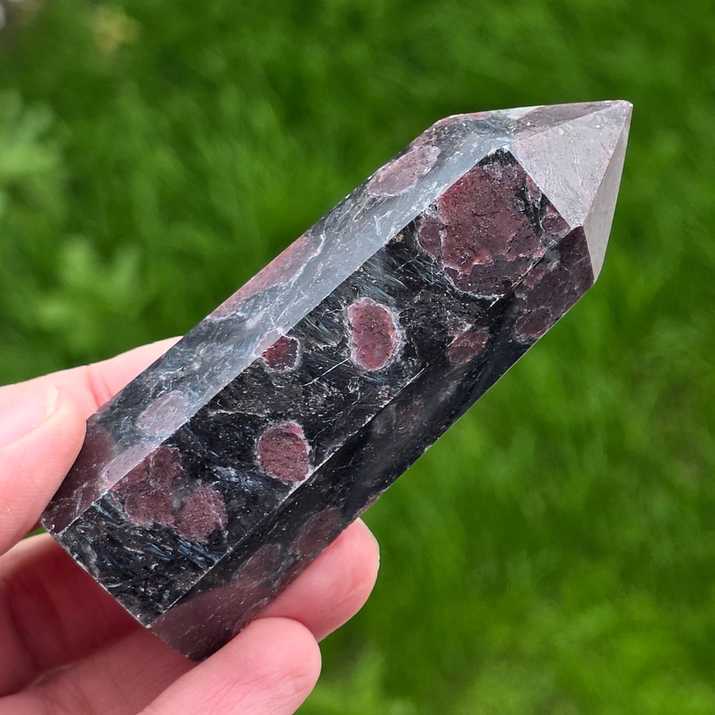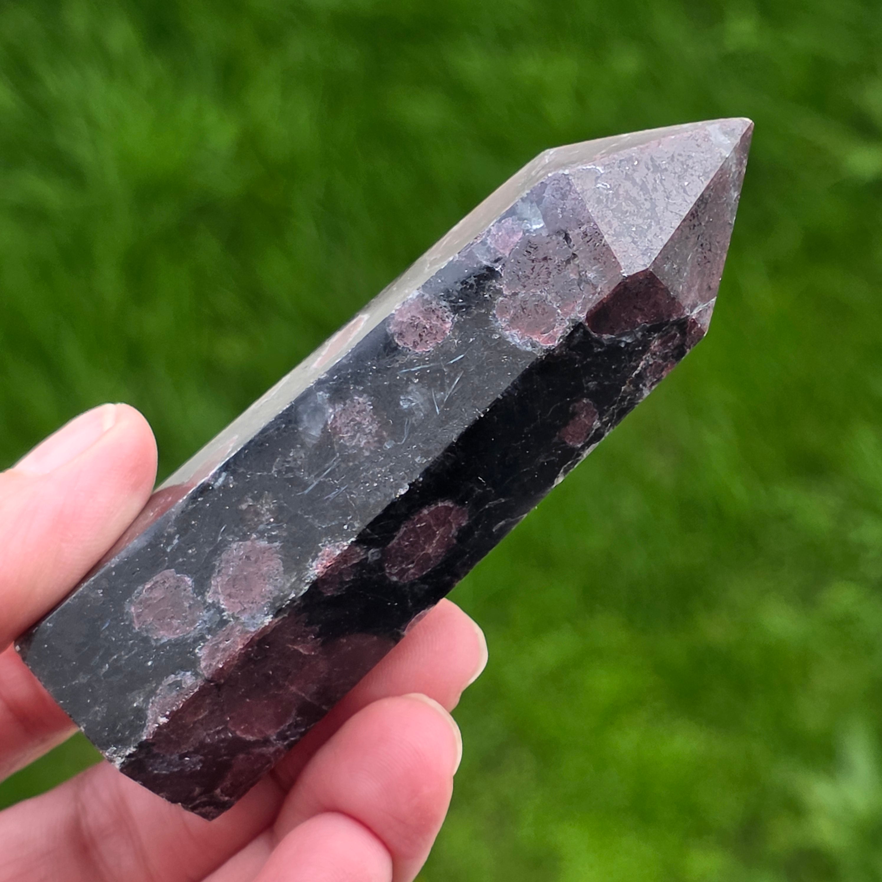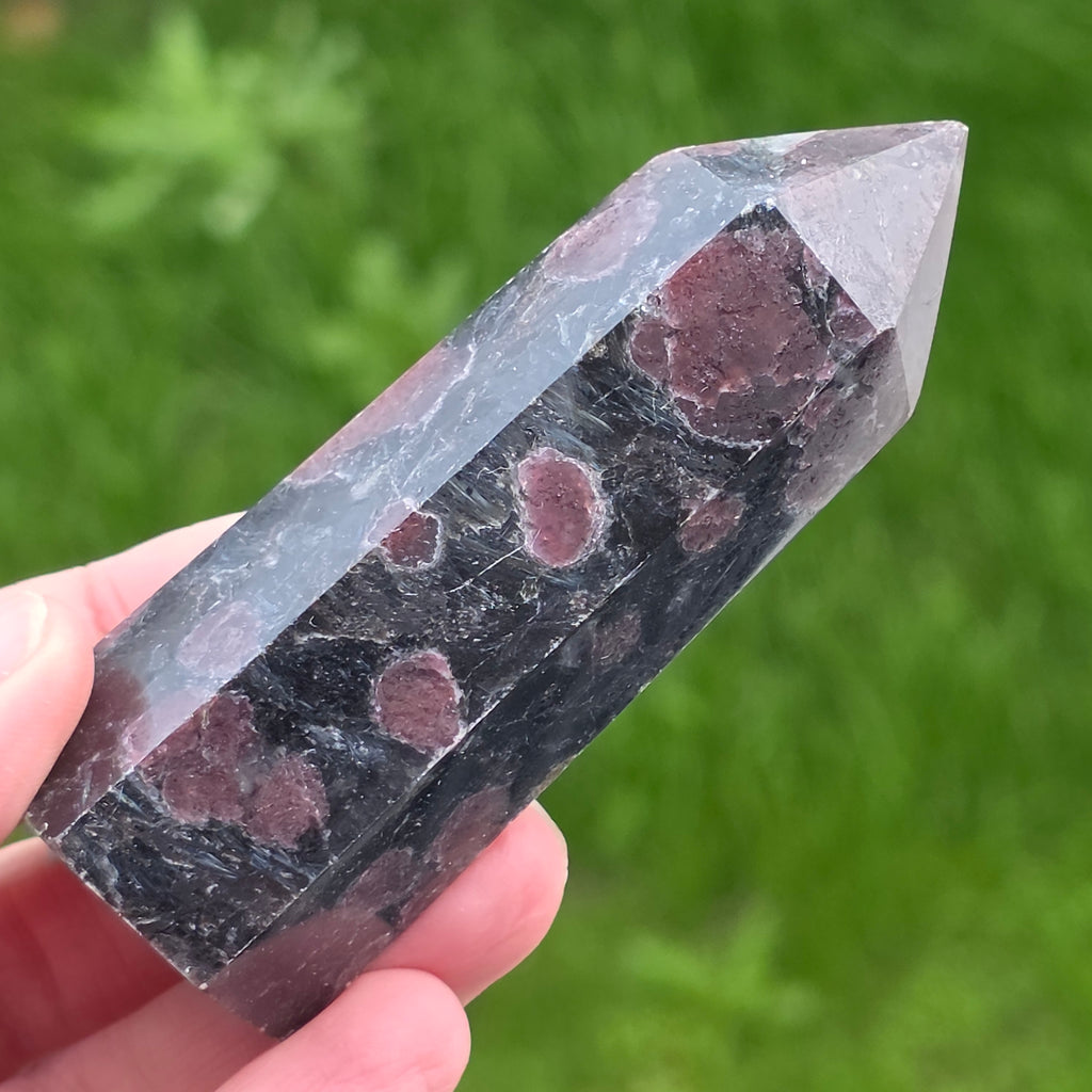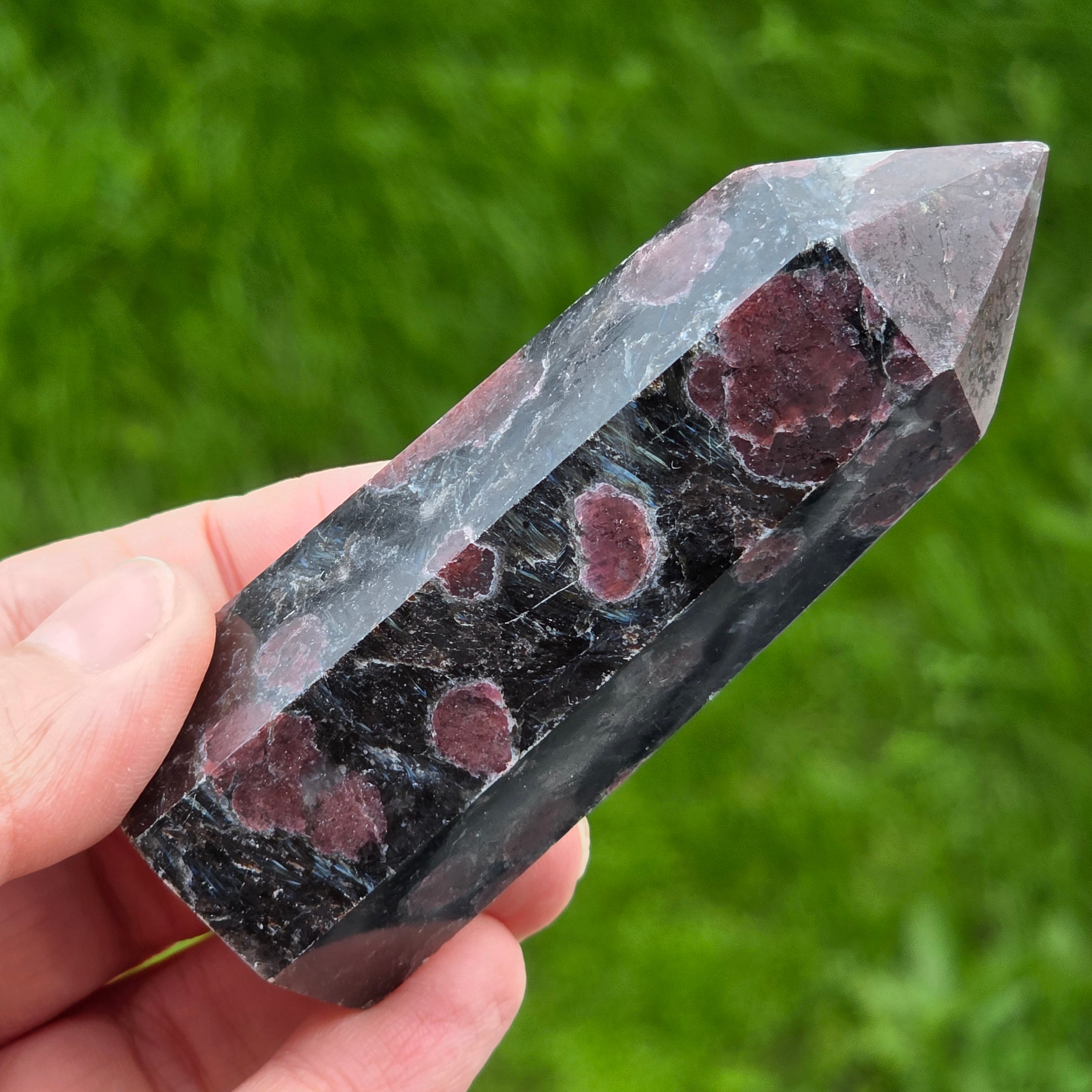 Black Tourmaline Obelisk with Garnet Model 21, Size: 15.7*5.2*4.2cm