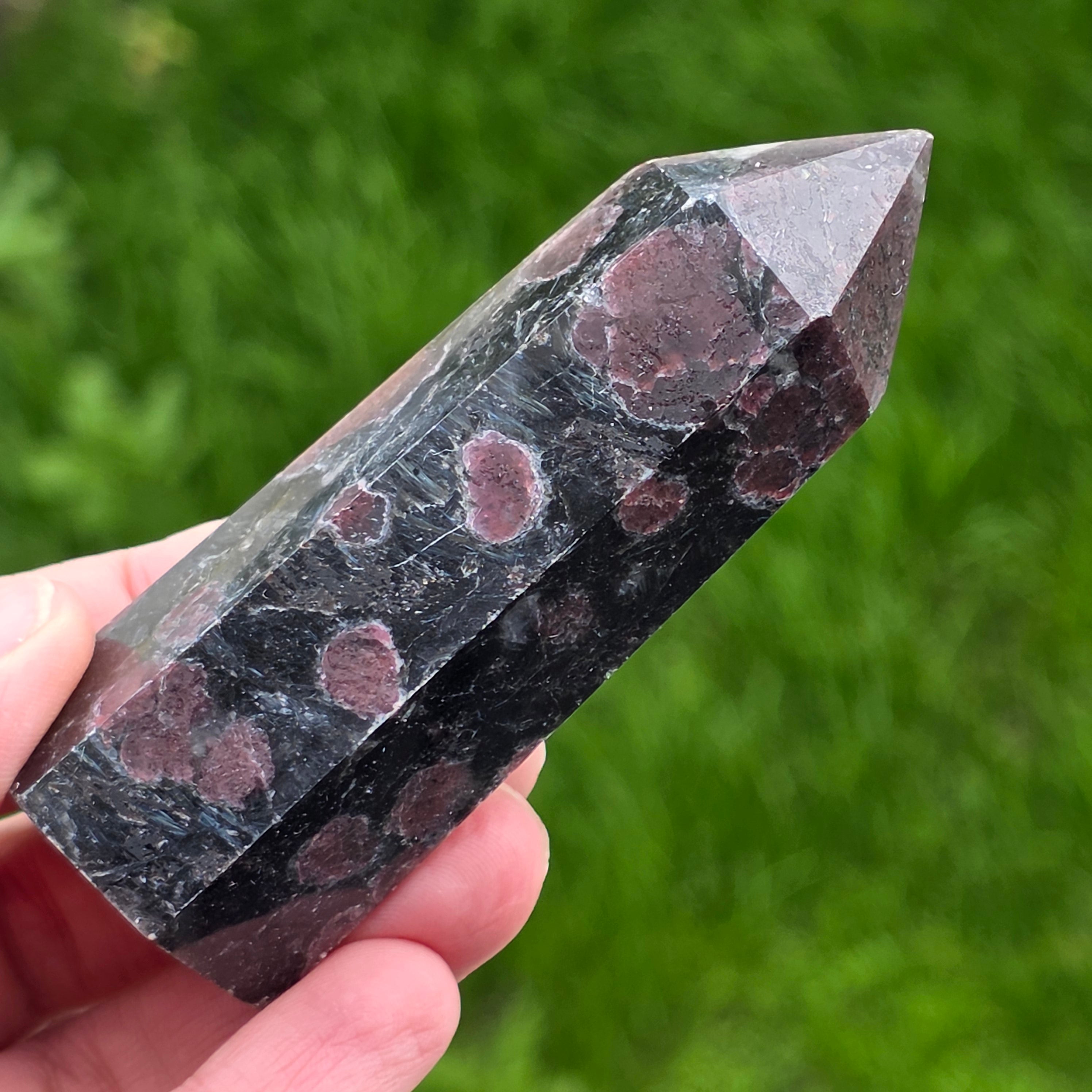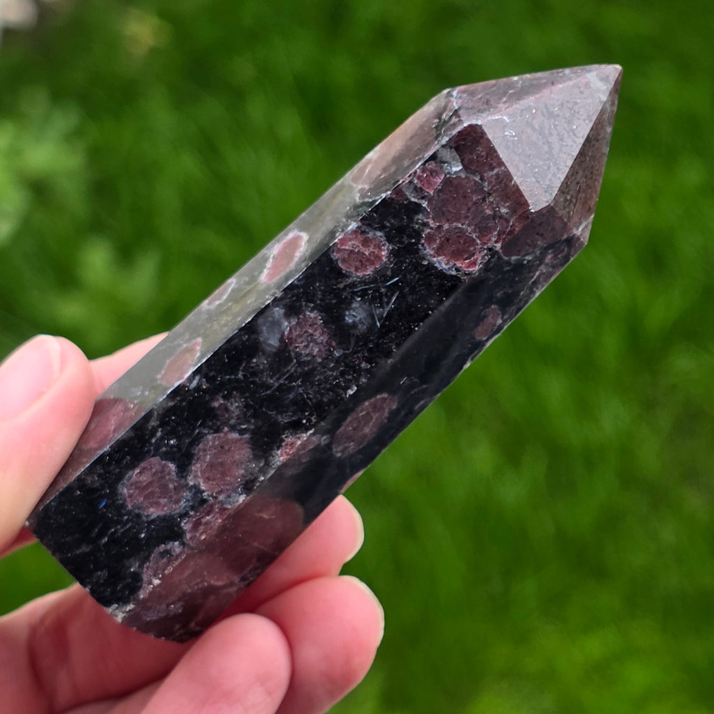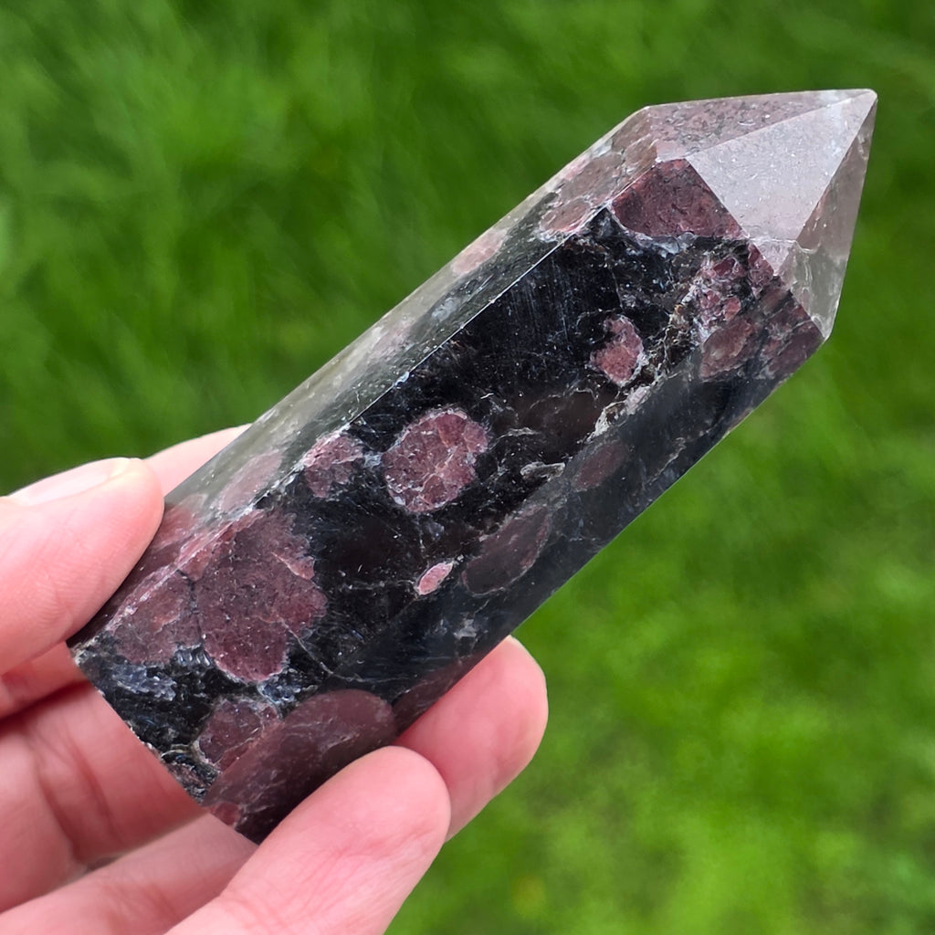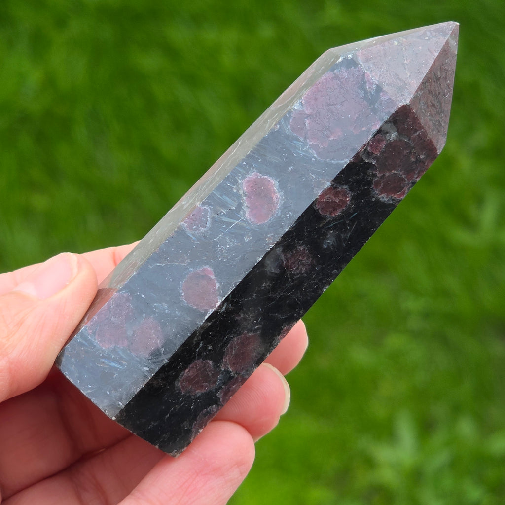 Black Tourmaline Obelisk with Garnet Model 21, Size: 15.7*5.2*4.2cm