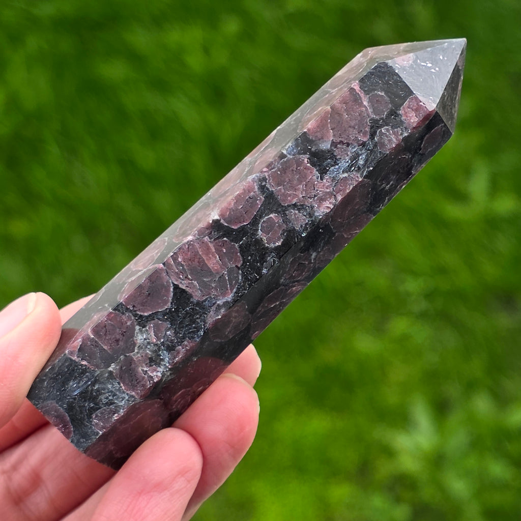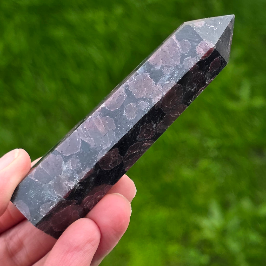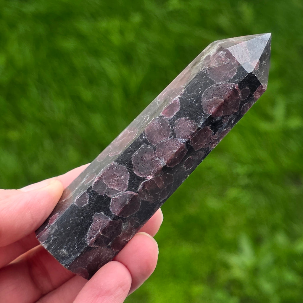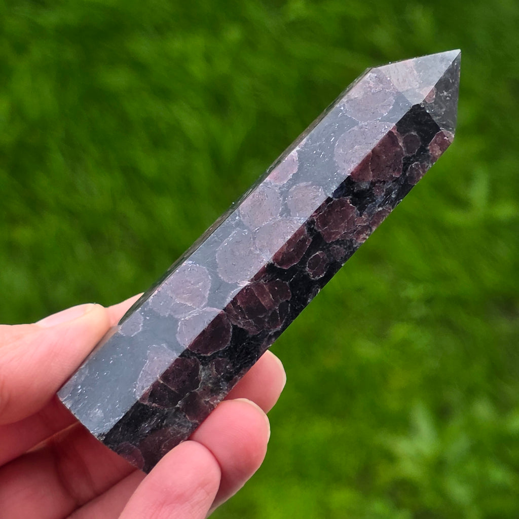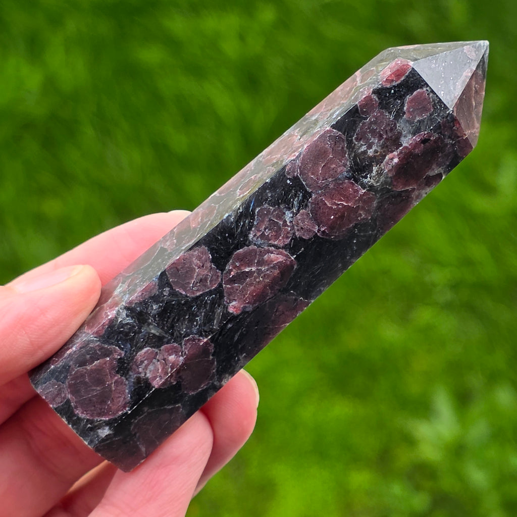 Black Tourmaline Obelisk with Garnet Model 22, Size: 15.5*5.2*4.4cm