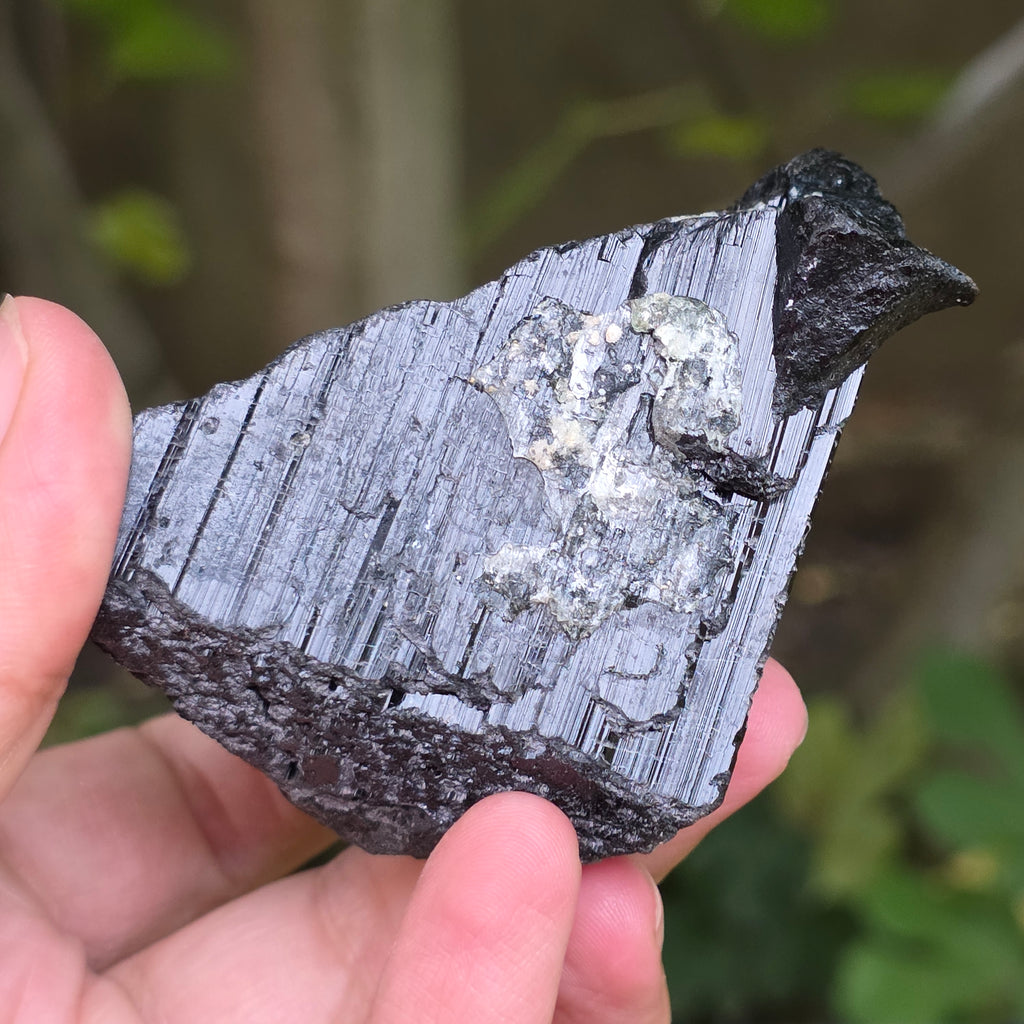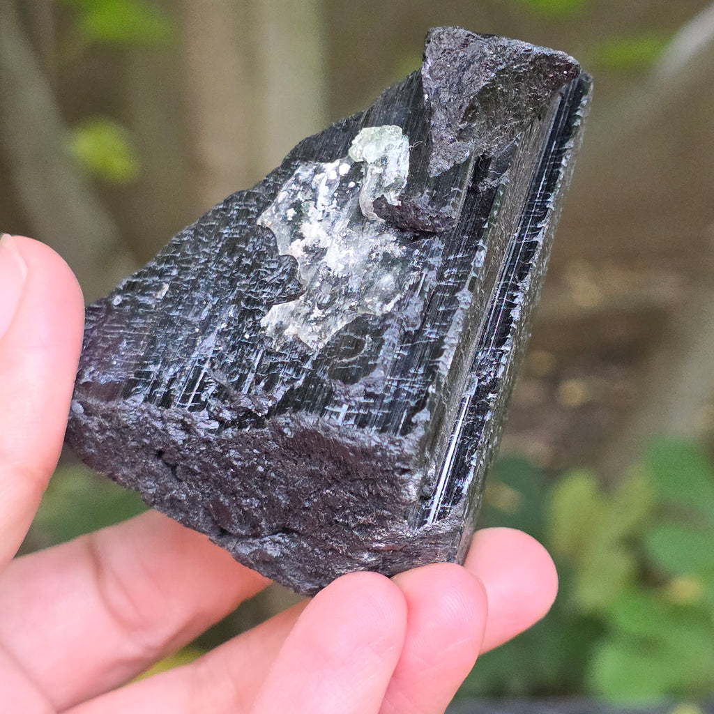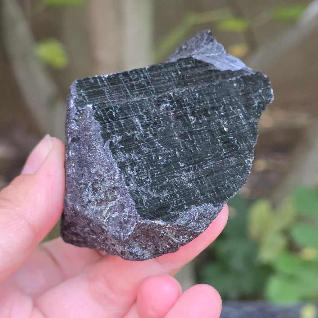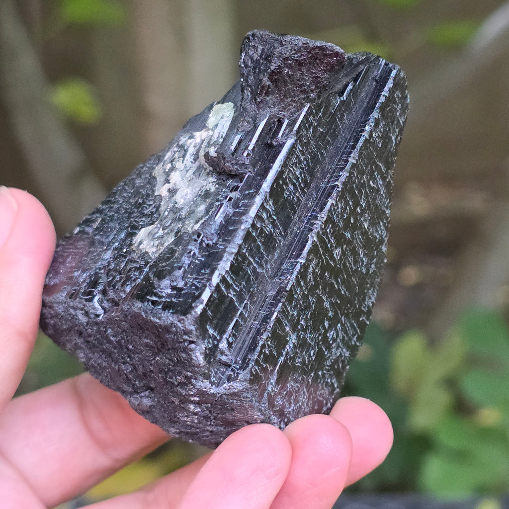 Black tourmaline, also known as Schorl, is made up of a complex mixture of borosilica and is found in a variety of crystalline forms. It is a very hard mineral and has a great resistance to scratches and wear.