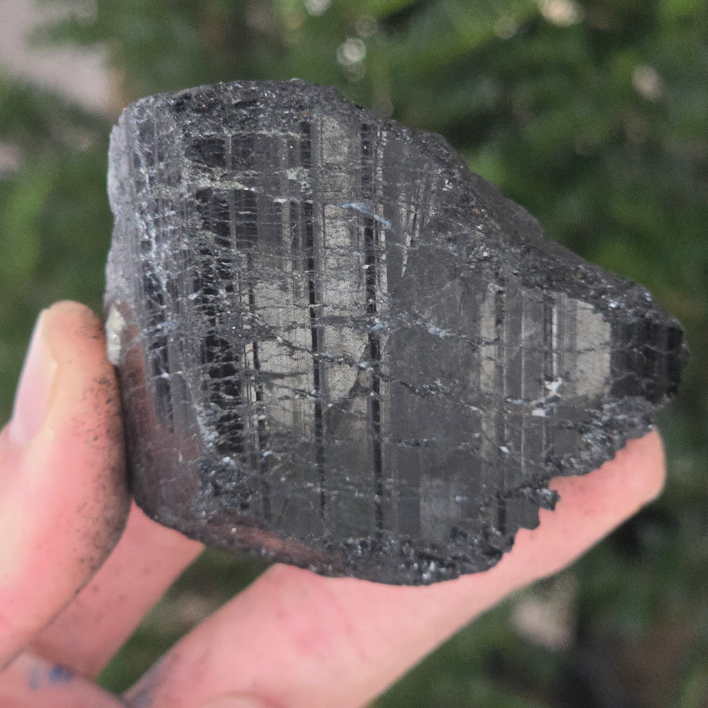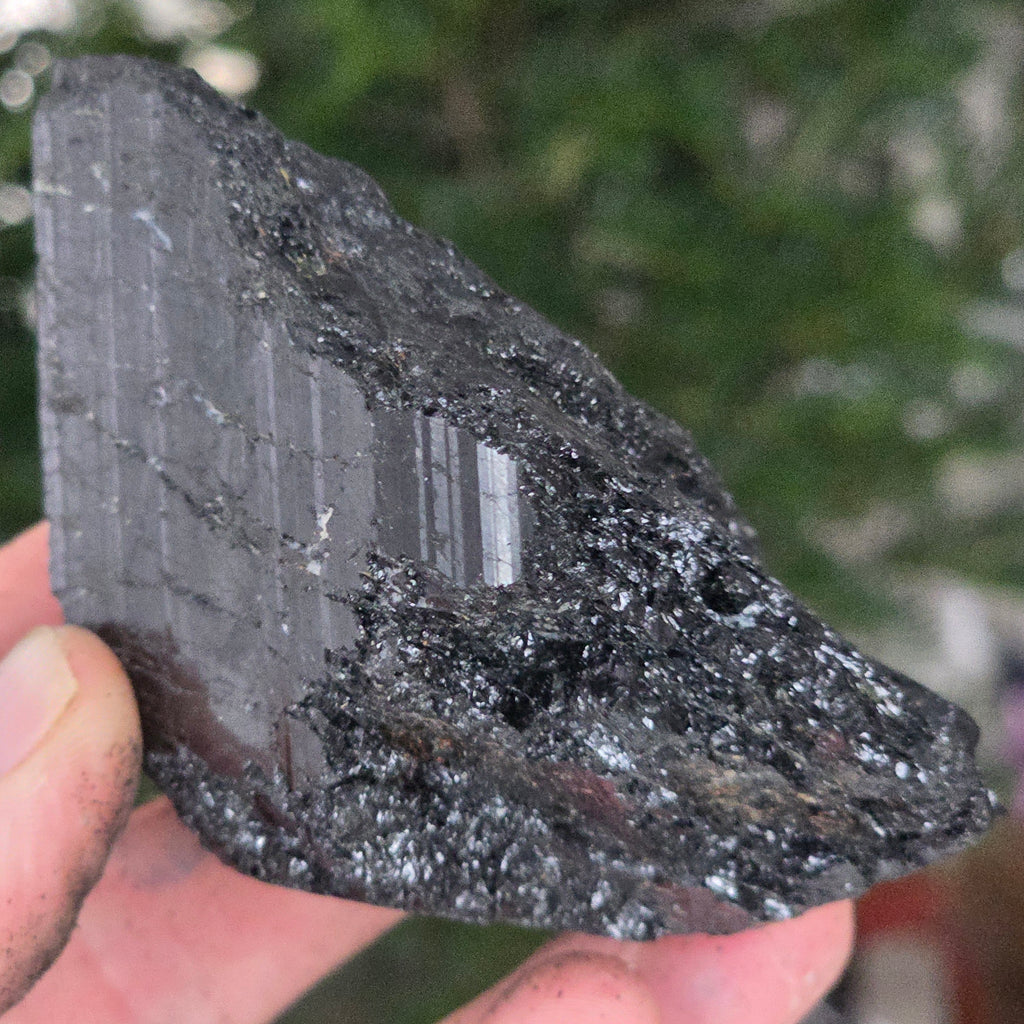 Black tourmaline, also known as Schorl, is made up of a complex mixture of borosilica and is found in a variety of crystalline forms. It is a very hard mineral and has a great resistance to scratches and wear.