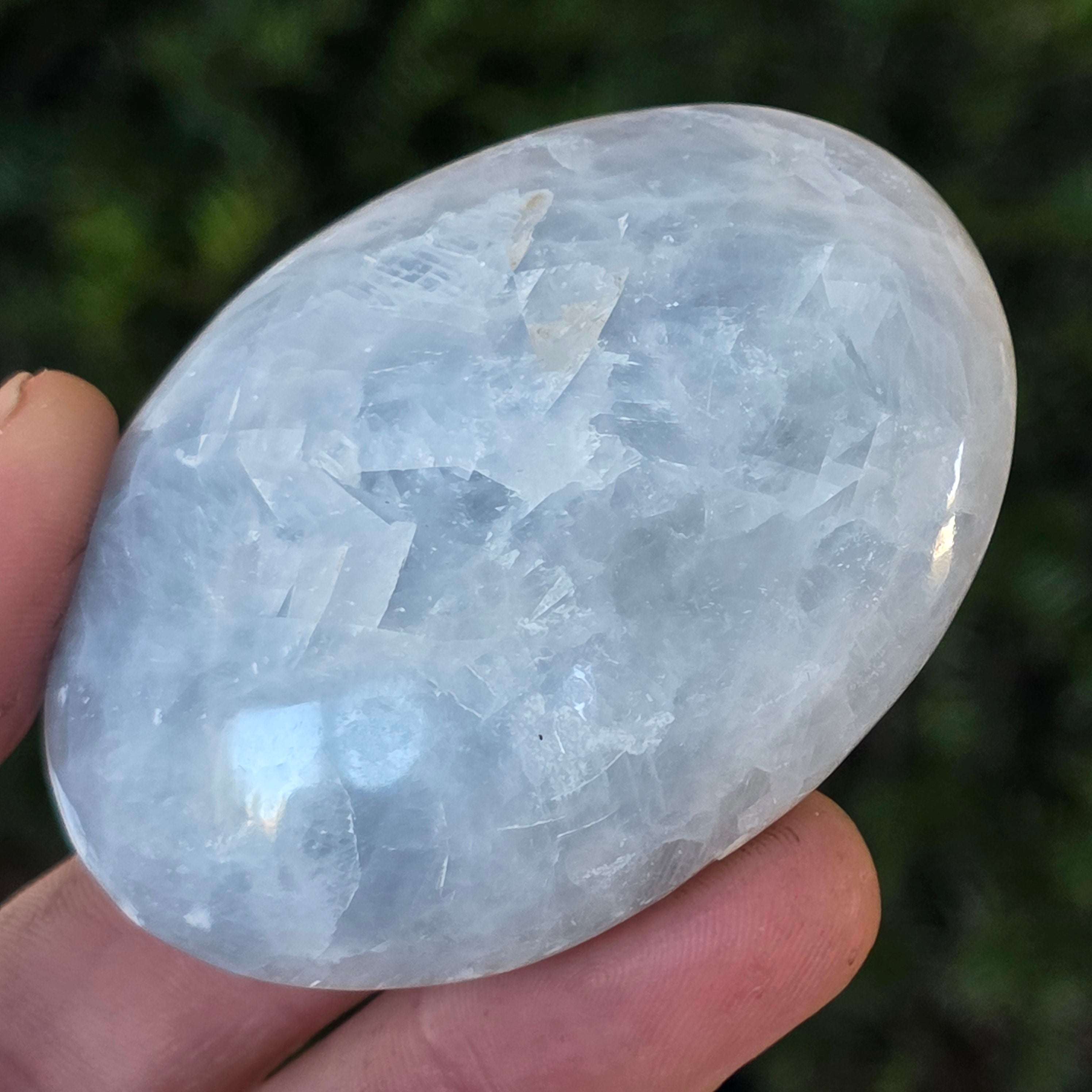 Blue caclite, also known as alabaster, is a semi-precious stone with strong metaphysical properties.