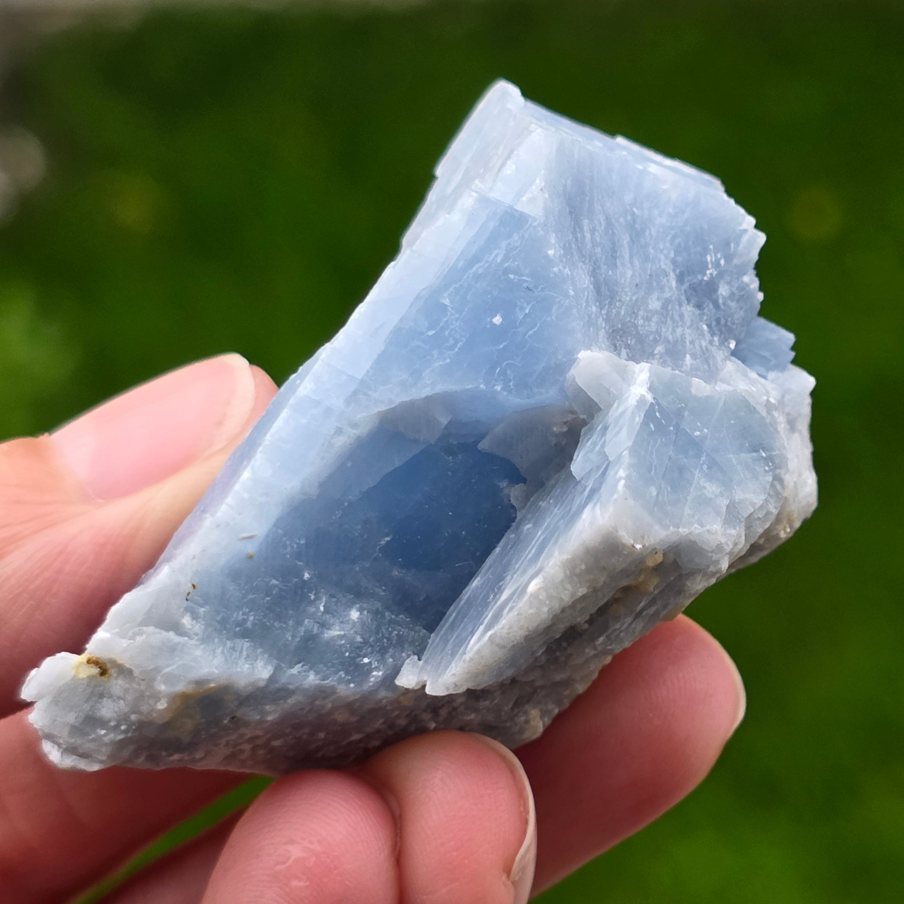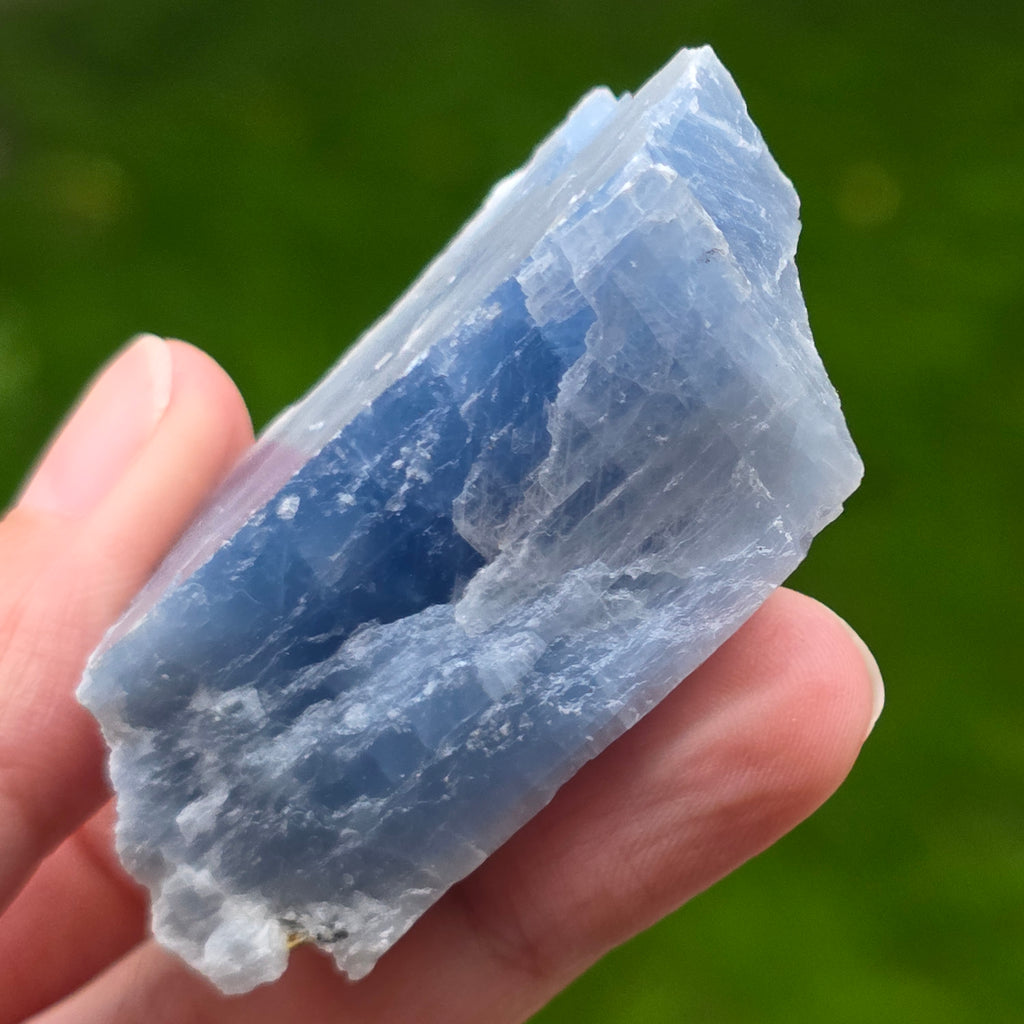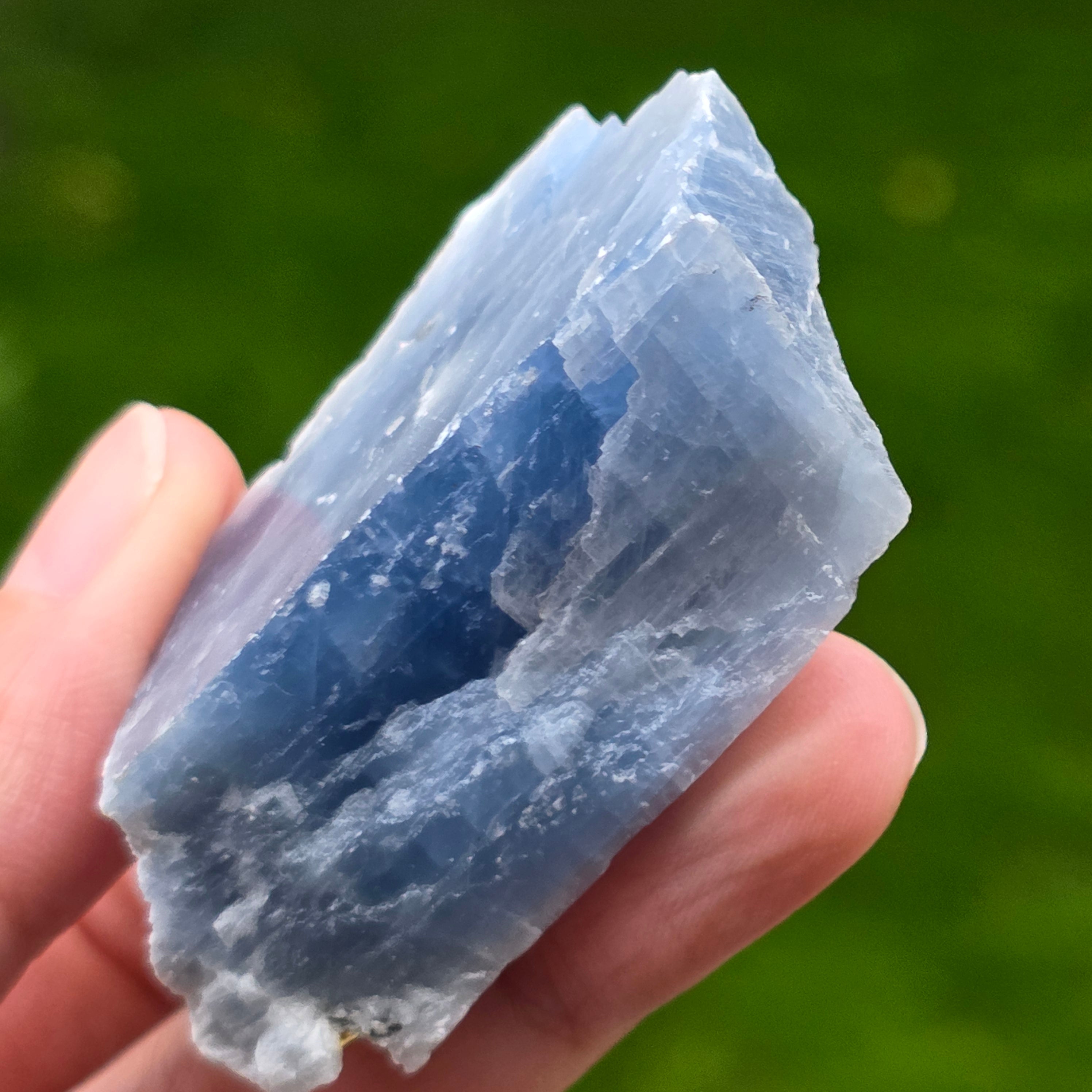 Blue caclite, also known as alabaster, is a semi-precious stone with strong metaphysical properties.
