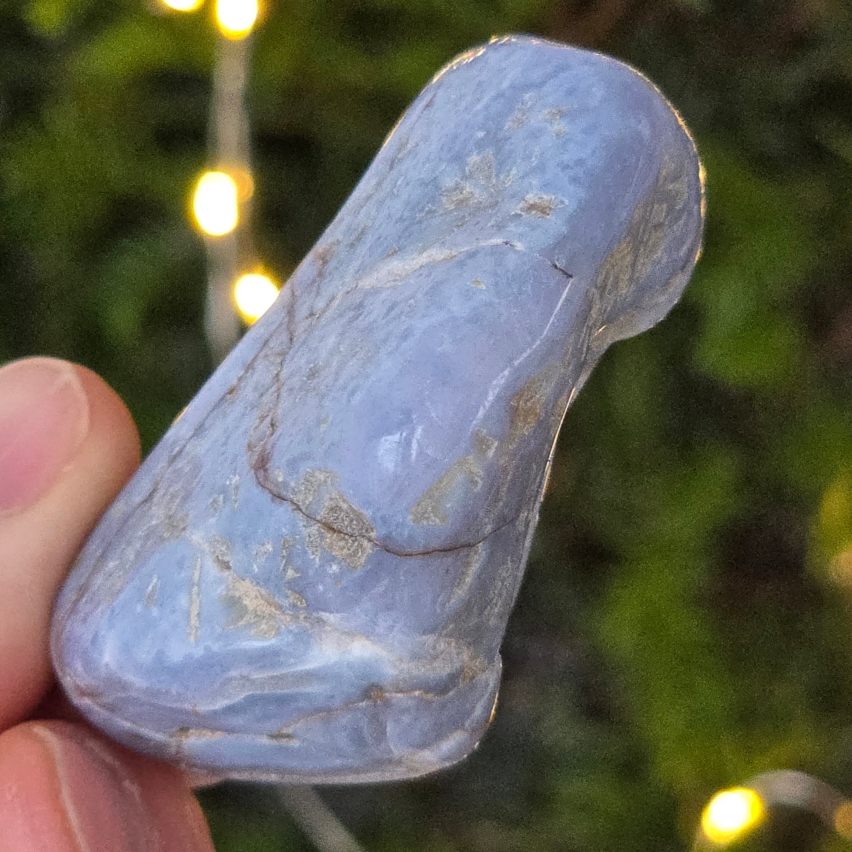 Blue chalcedony is generally associated with communication, self-expression, and truth, and it can help stimulate authentic communication.