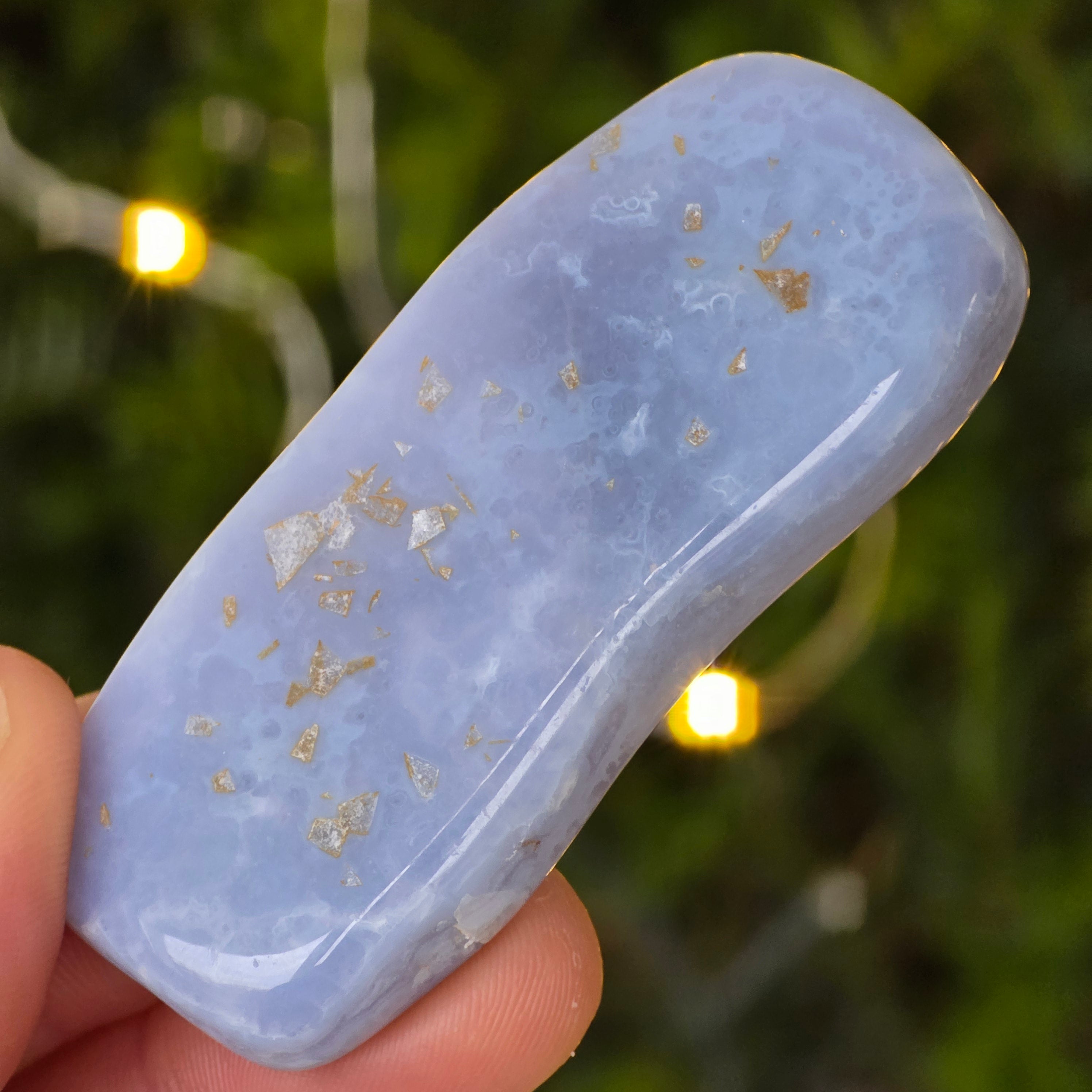 Blue chalcedony is generally associated with communication, self-expression, and truth, and it can help stimulate authentic communication.