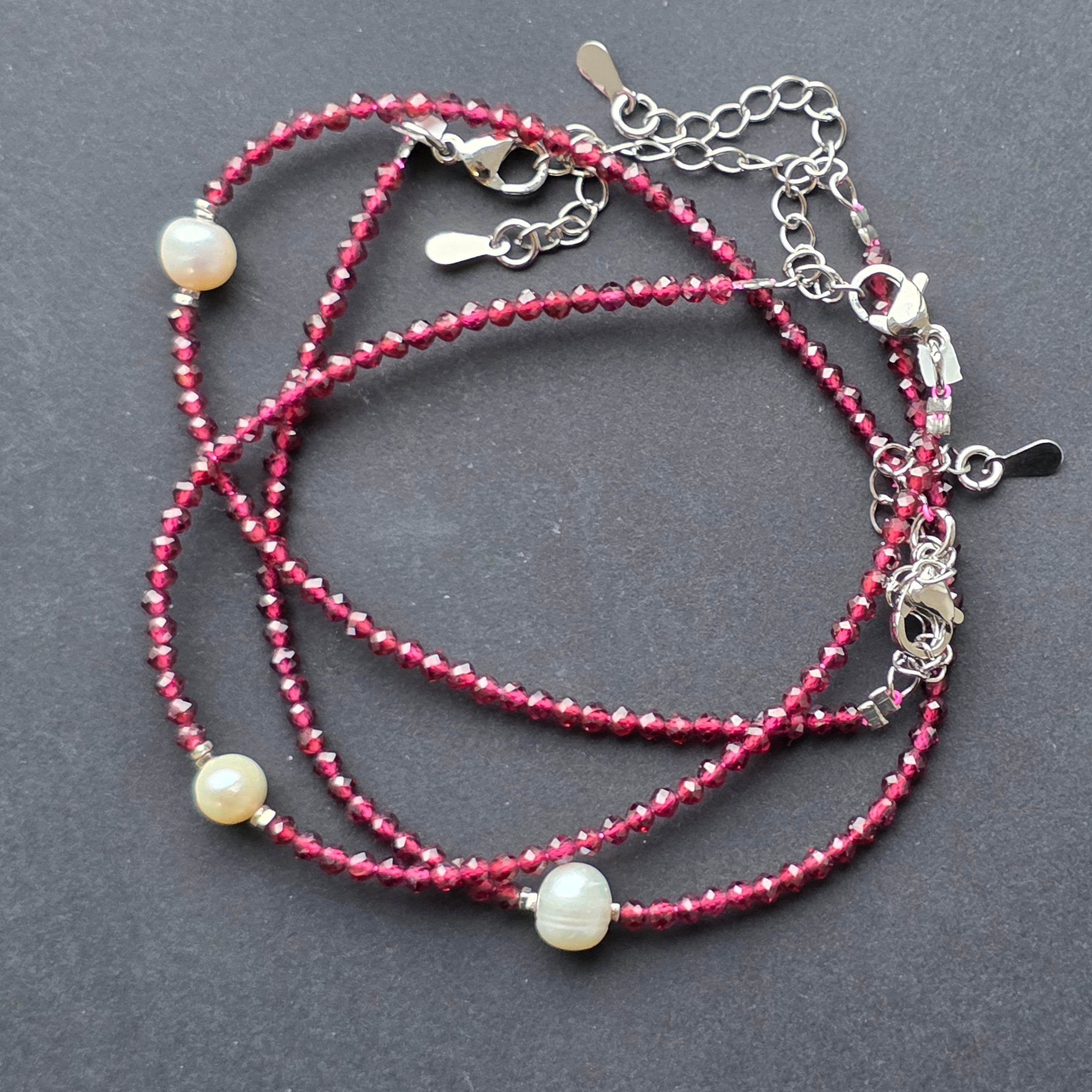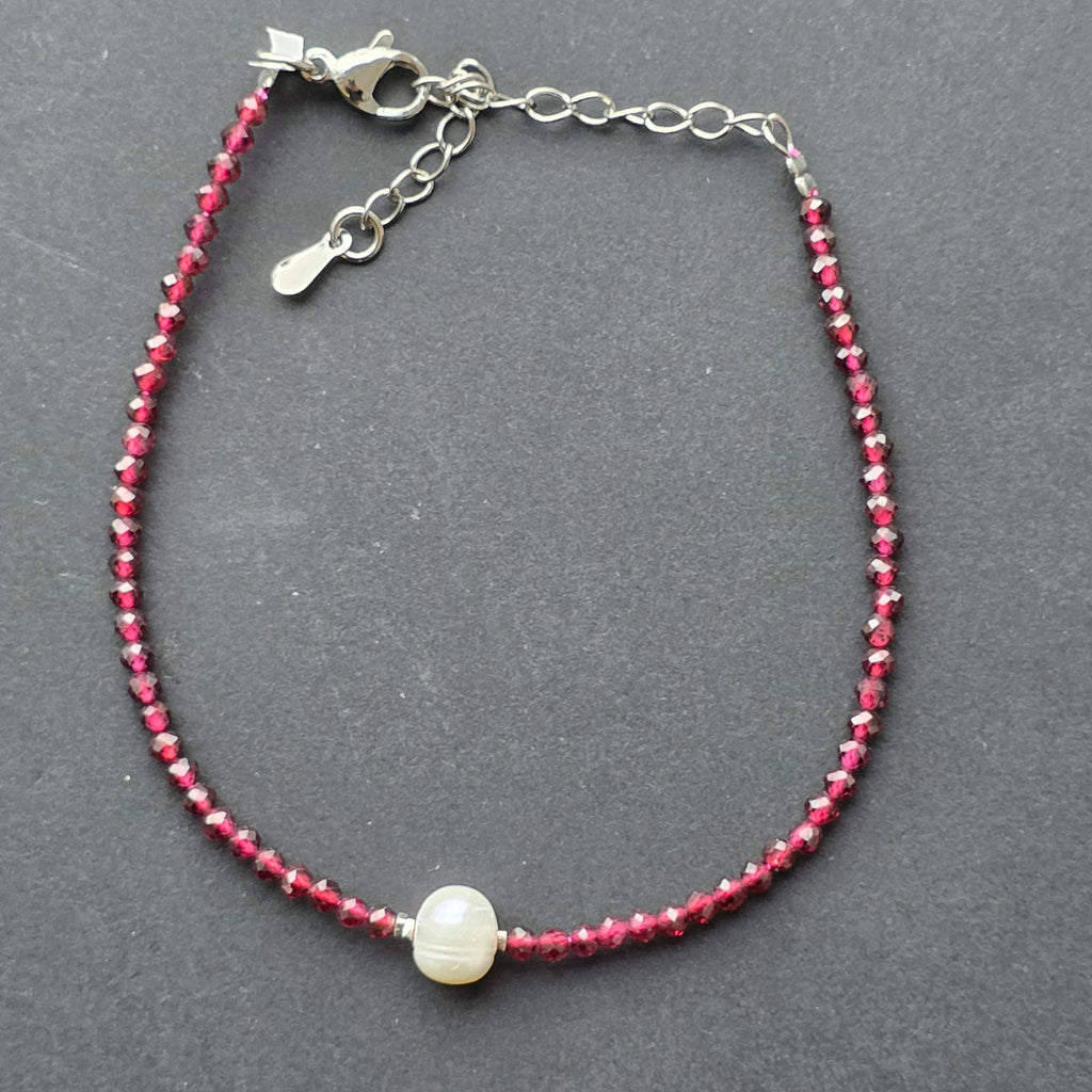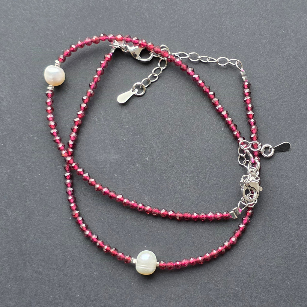 • Pietre: granat natural fațetat 2–2,5 mm + perlă