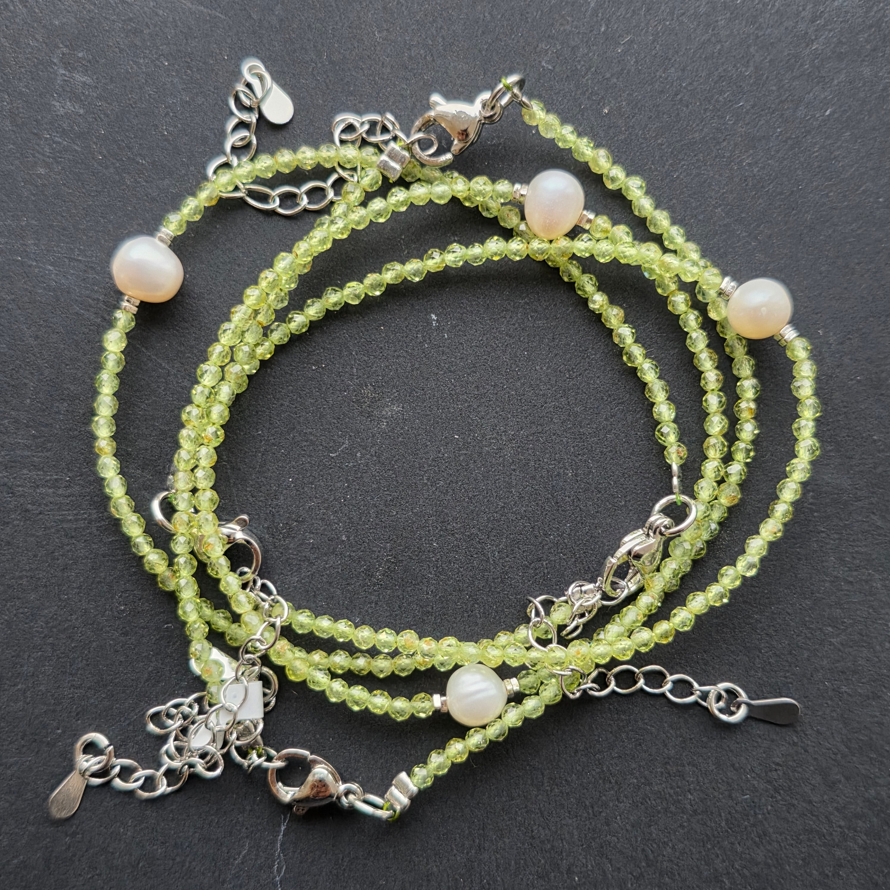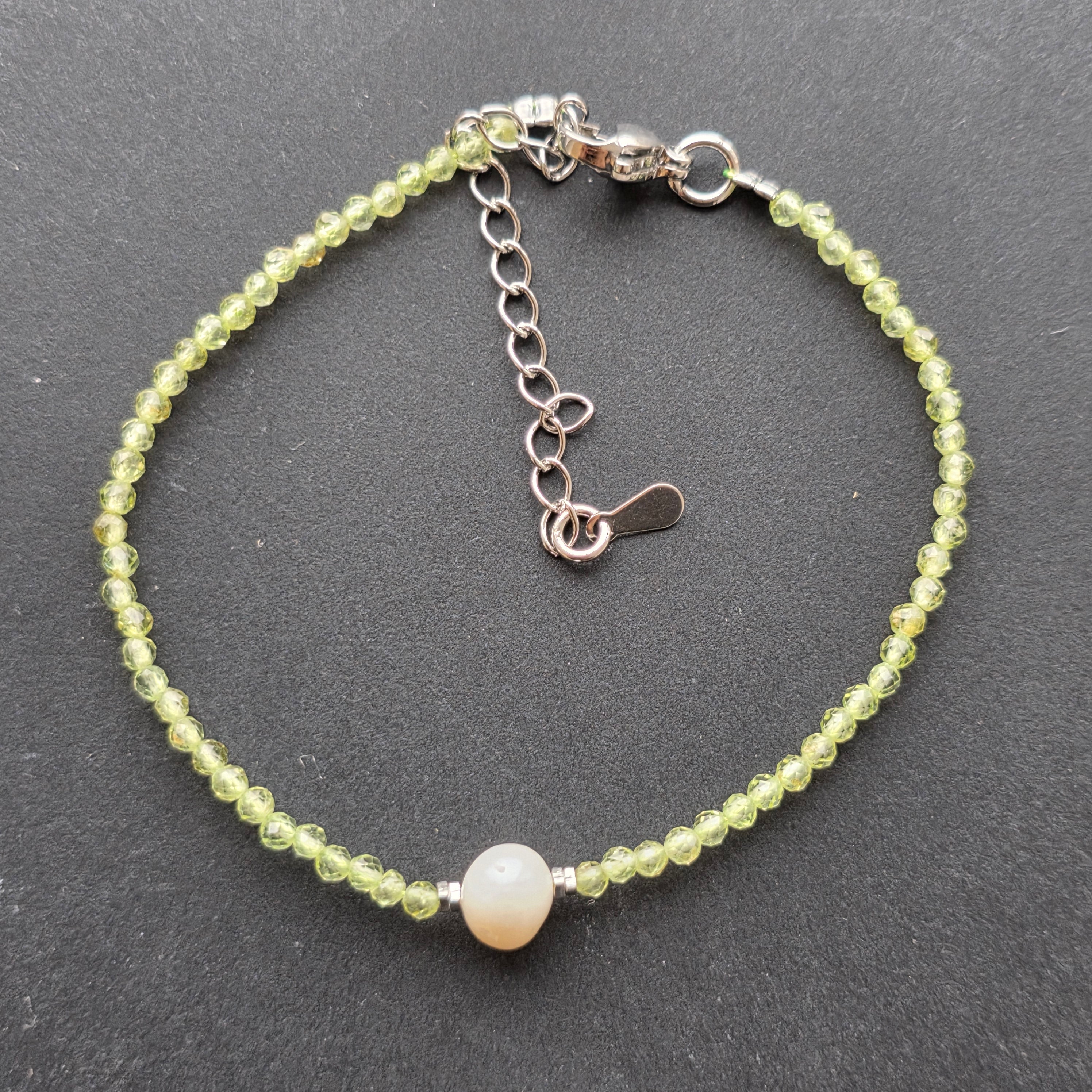 Pietre: peridot natural fațetat 2 mm + perlă naturală