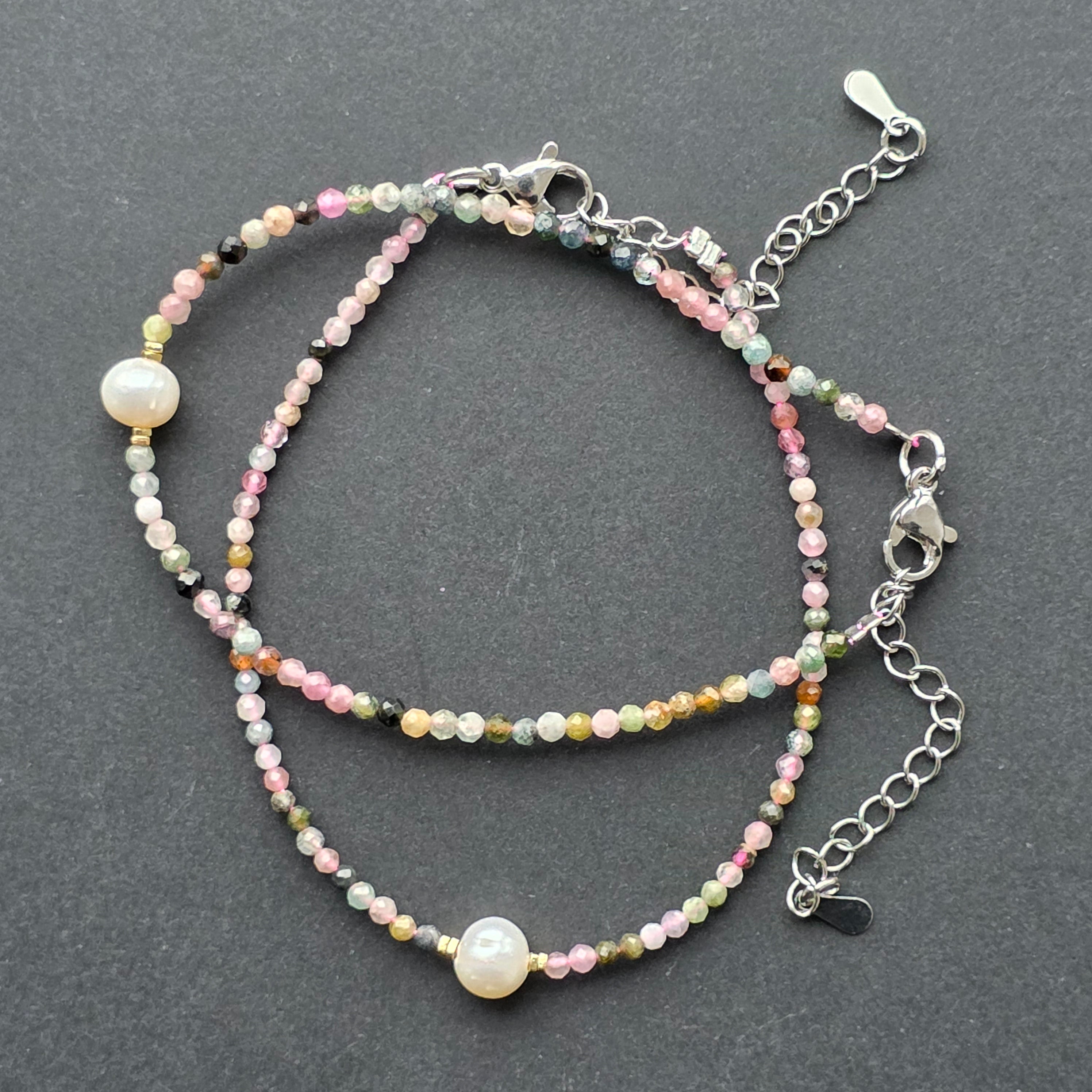 Description - Brățară reglabila fatetata turmalina mix 2 mm | Pearl