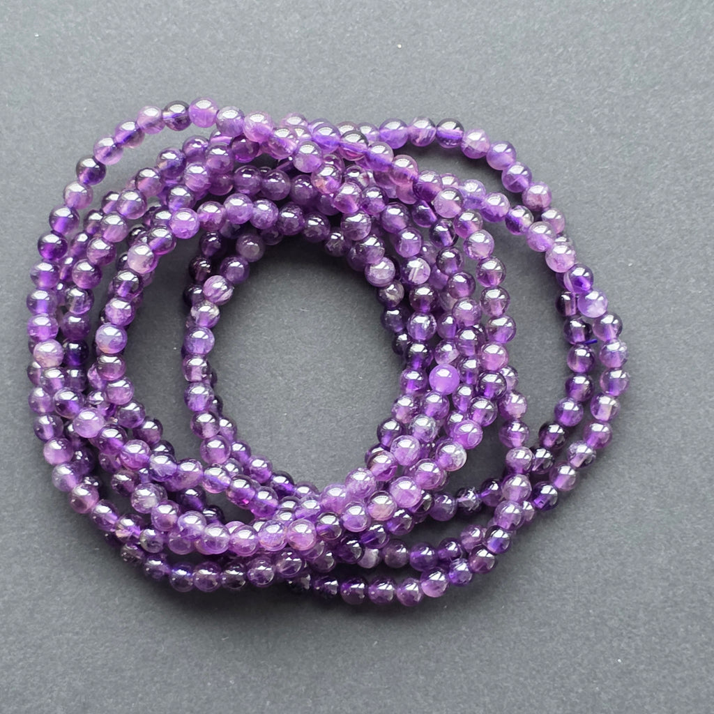 Brățara din ametist aduce la încheietură rafinamentul clasic al uneia dintre cele mai iubite pietre semiprețioase. Mărgelele mici și perfect rotunjite creează un șir delicat de nuanțe mov, într-un gradient natural care amintește de cerul serii sau de intensitatea unei flori de lavandă atinse de lumină.